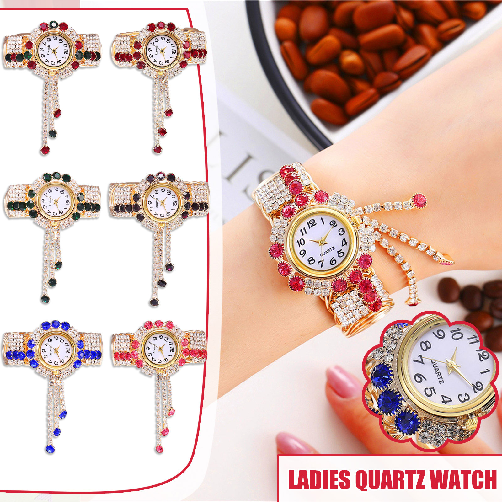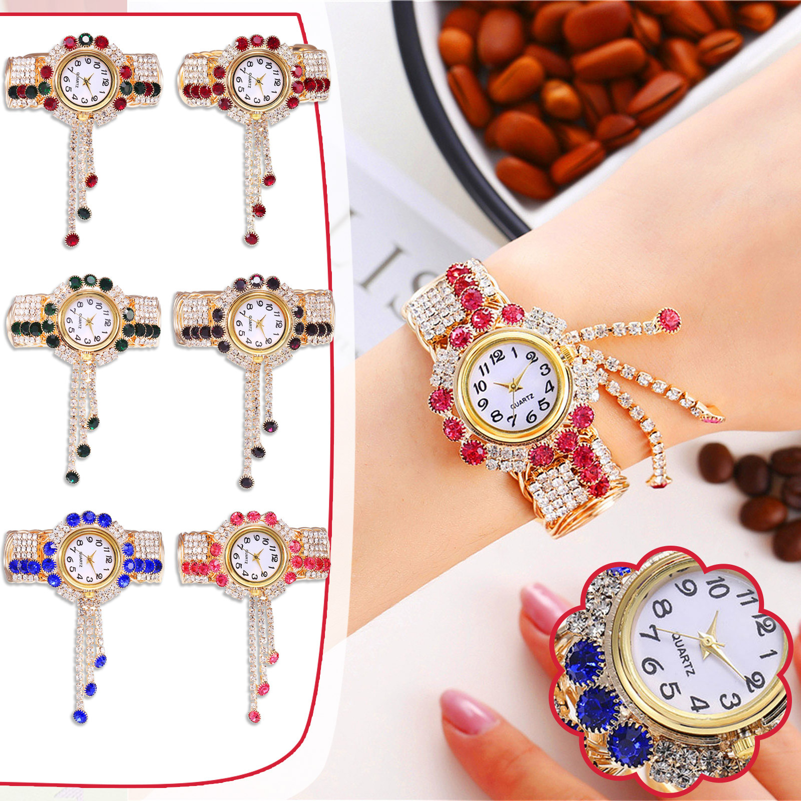 Браслет с принтом из бисера, браслет из ювелирного сплава, модные кварцевые эластичные наручные часы для девушек, часы для женщин