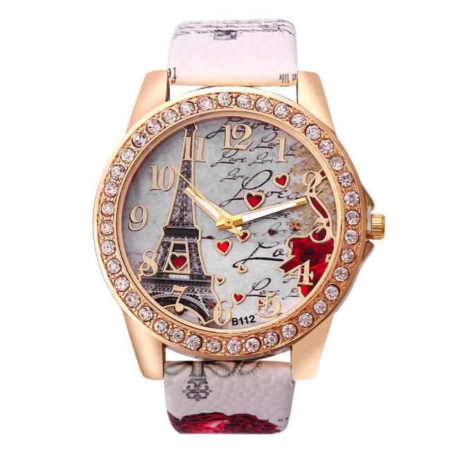 Кожаный ремешок с изображением башни, аналоговые кварцевые наручные часы Vogue