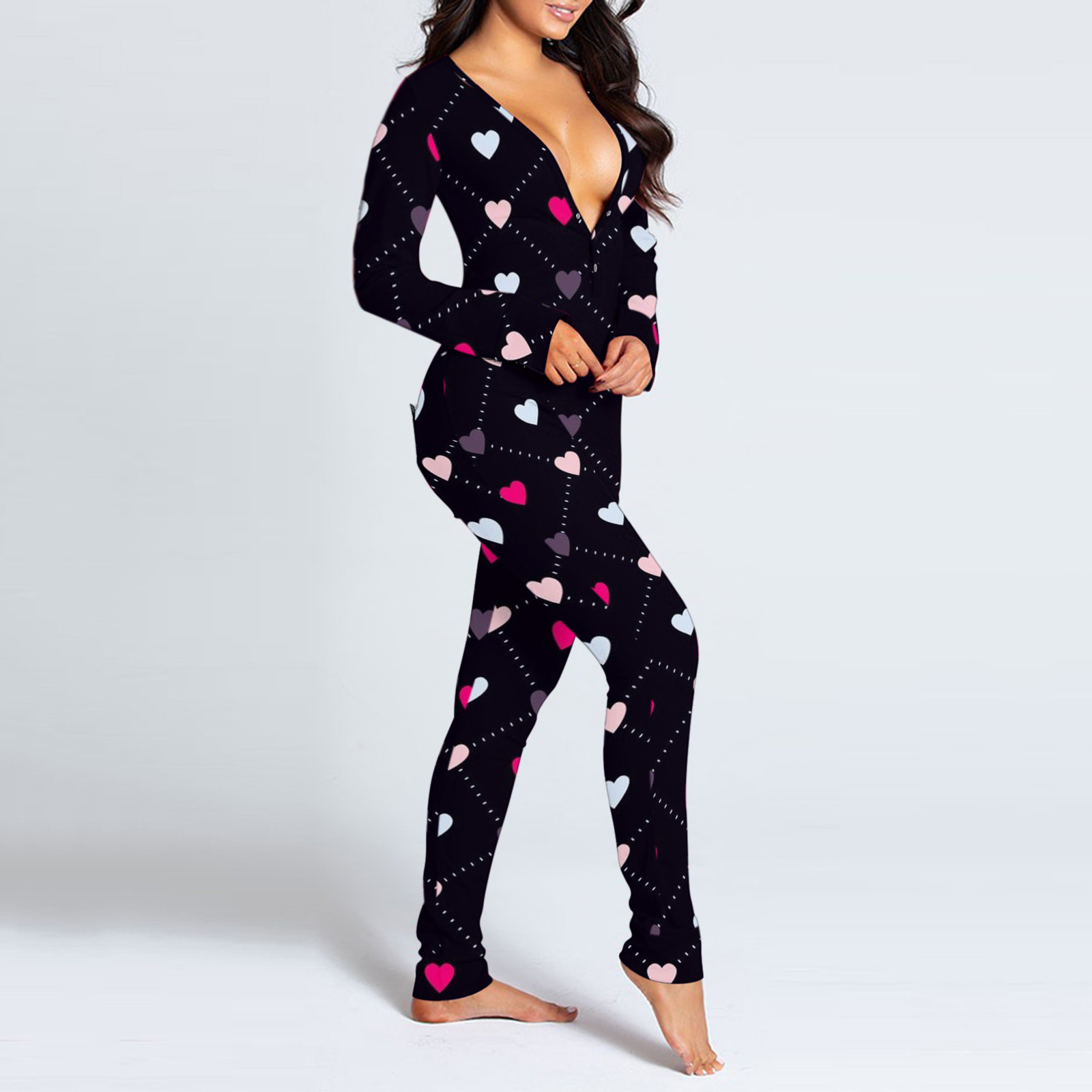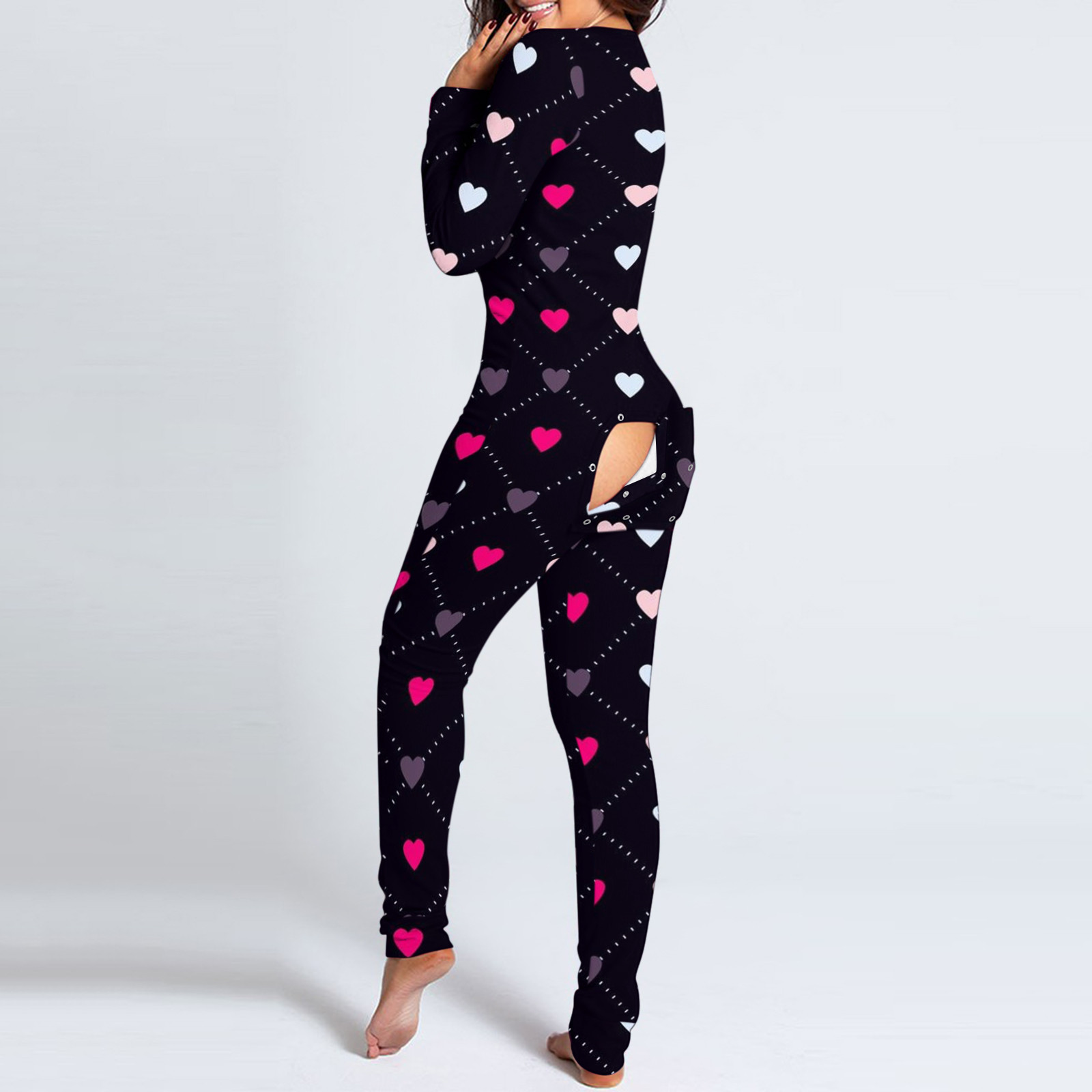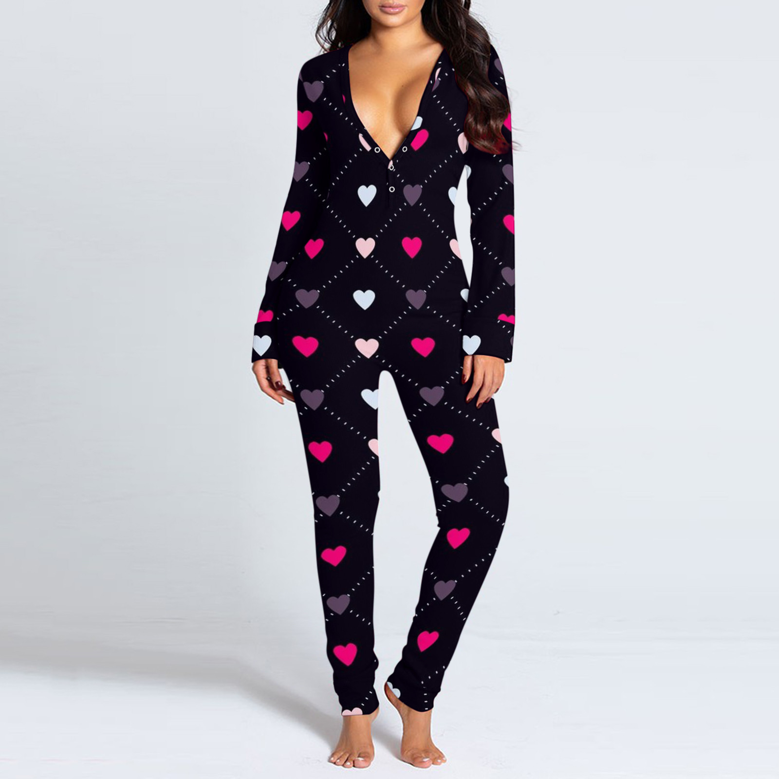 Women's Button-Down Print Functional Buttoned Flap Adults Jumpsuit