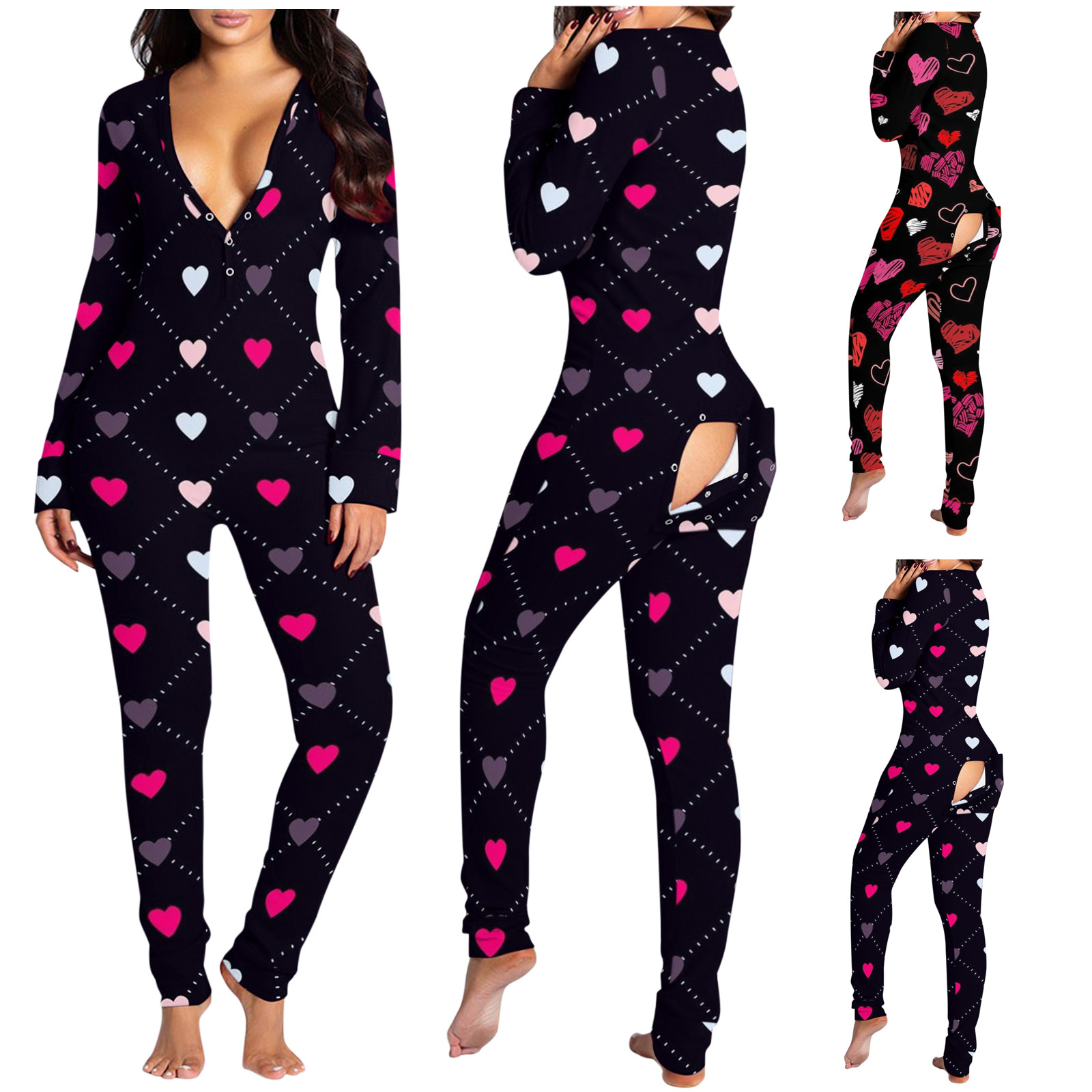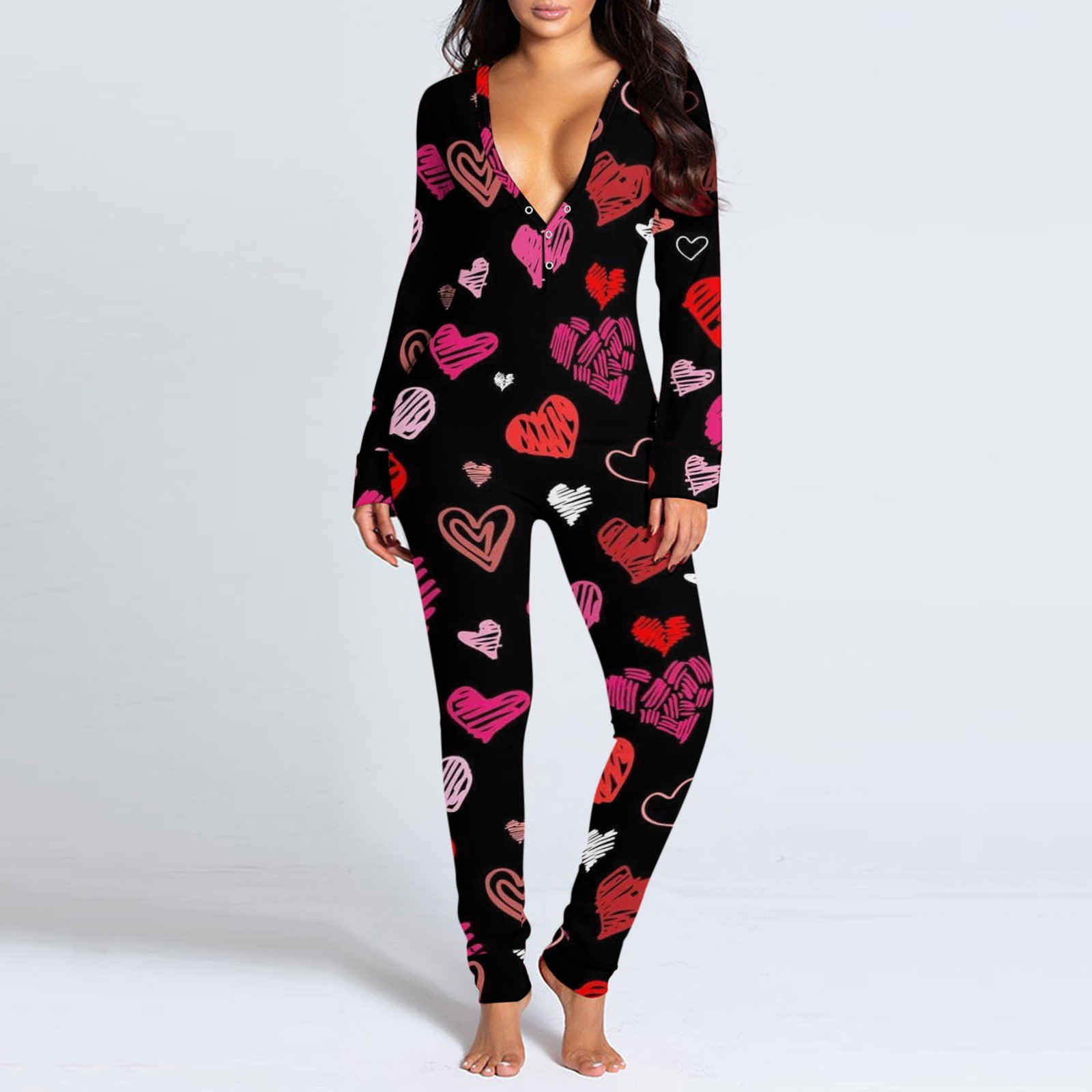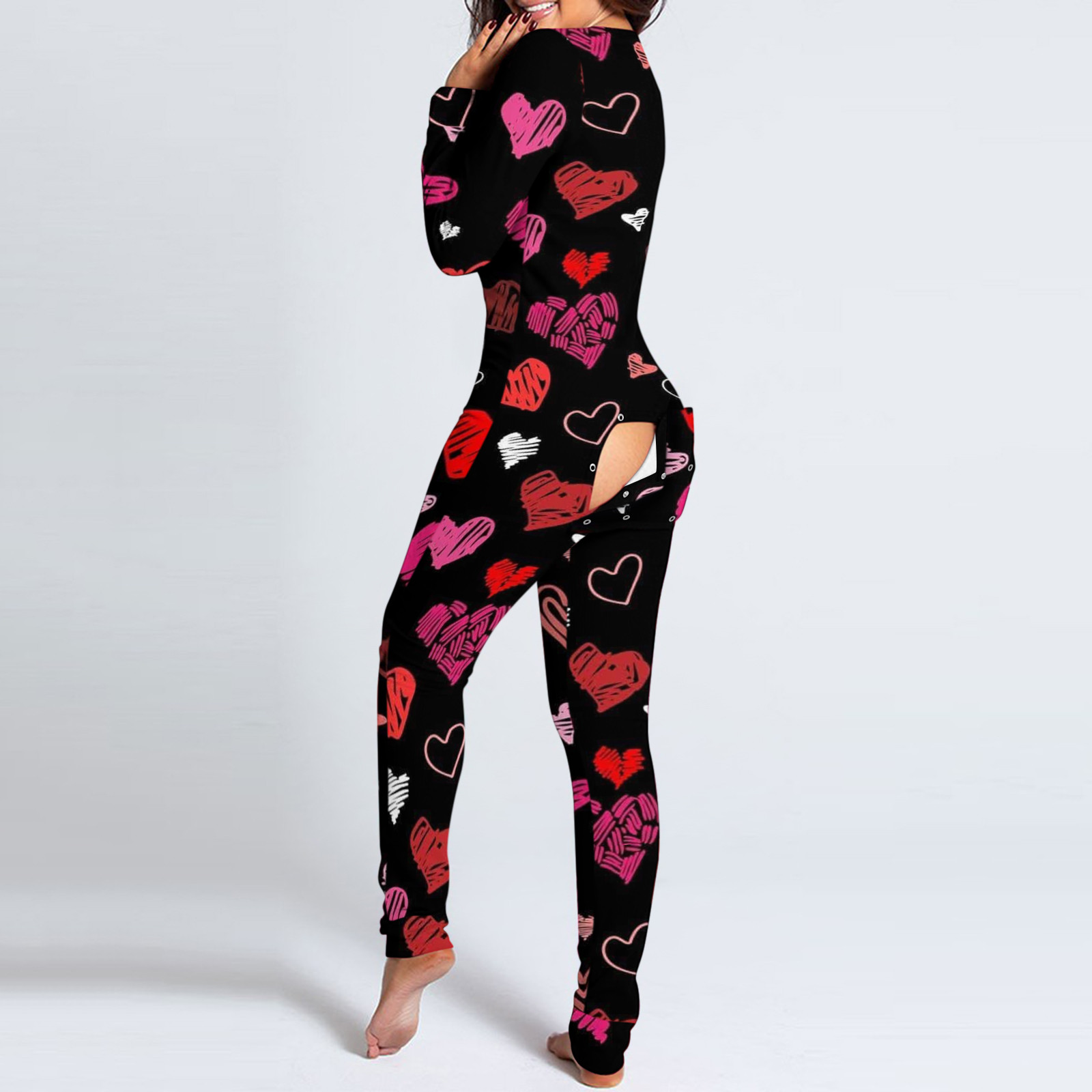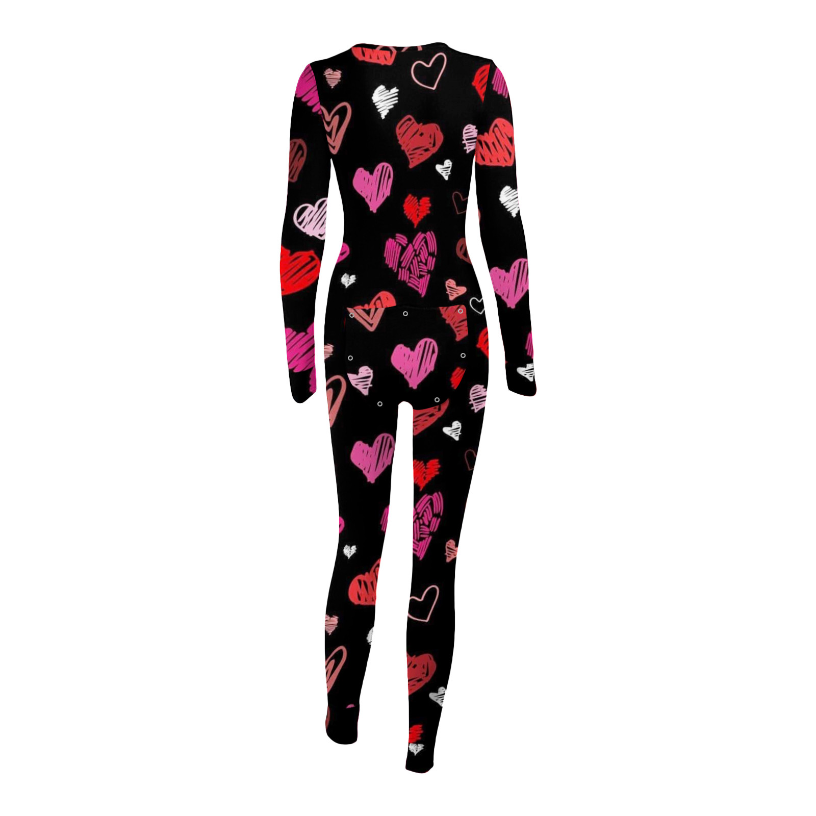 Women's Button-Down Print Functional Buttoned Flap Adults Jumpsuit