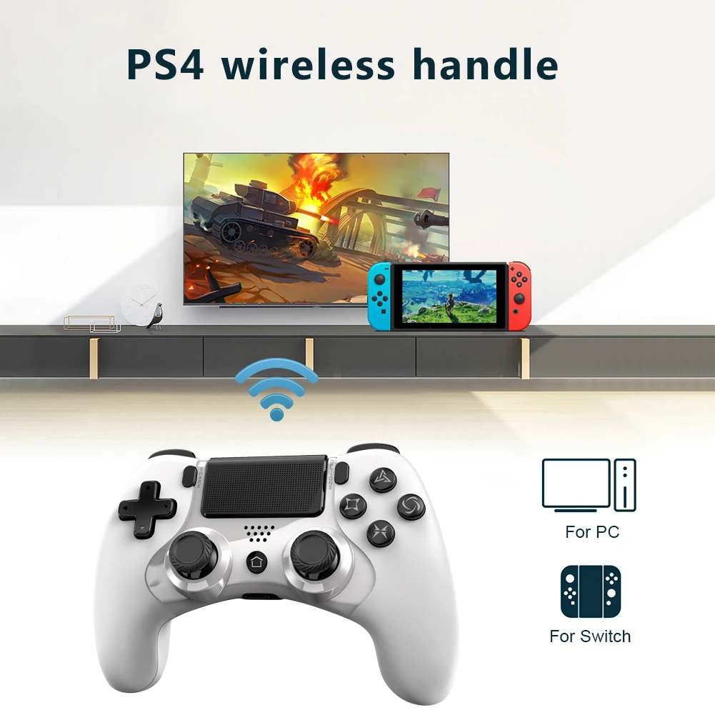 STK-4006 Беспроводной игровой контроллер для PS4/PS4 Pro/PS4 Slimo консоли Bluetooth совместимым 6 оси Сенсор вибрации геймпады Поддержка наушники <;br/> Особенности :<; br/> Поддержка для PS4/PS4 Pro/PS4 Slimo<;br/> Беспроводной соединения <;br/>6-axis Сенсор <;br/> 3,5 мм для наушников <;br/> Функция тач скрина <;br/> Встроенный подойдет как для повседневной носки, так динамик <;br/> Параметры :<; br/> Цвет: белый/черный (опционально)<;br/> Емкость аккумулятора: 600 мАч <;br/> Совместимость: подходит для игровой консоли PS4, для Android мобильный телефон/TV/media box/iOS 13,0 <;br/> Вес продукта: около 200 г <;br/> Размер продукта: 160x105x5 8 мм/6.3x4.13x2.28in<;br/> Размер упаковки: 175x115x7 2 мм/6.89x4.53x2.83in<;br/> Примечание:<;br/> из-за различных эффектов монитора и светильник, фактический цвет изделия может отличаться от того, что светильник показан на фотографиях. Спасибо!<;br/> допускается отклонение в 1-2 см из-за ручного измерения. <;br/>1 X контроллер <;br/>1 X кабель для зарядки данных <;br/>1 X руководство пользователя на английском языке