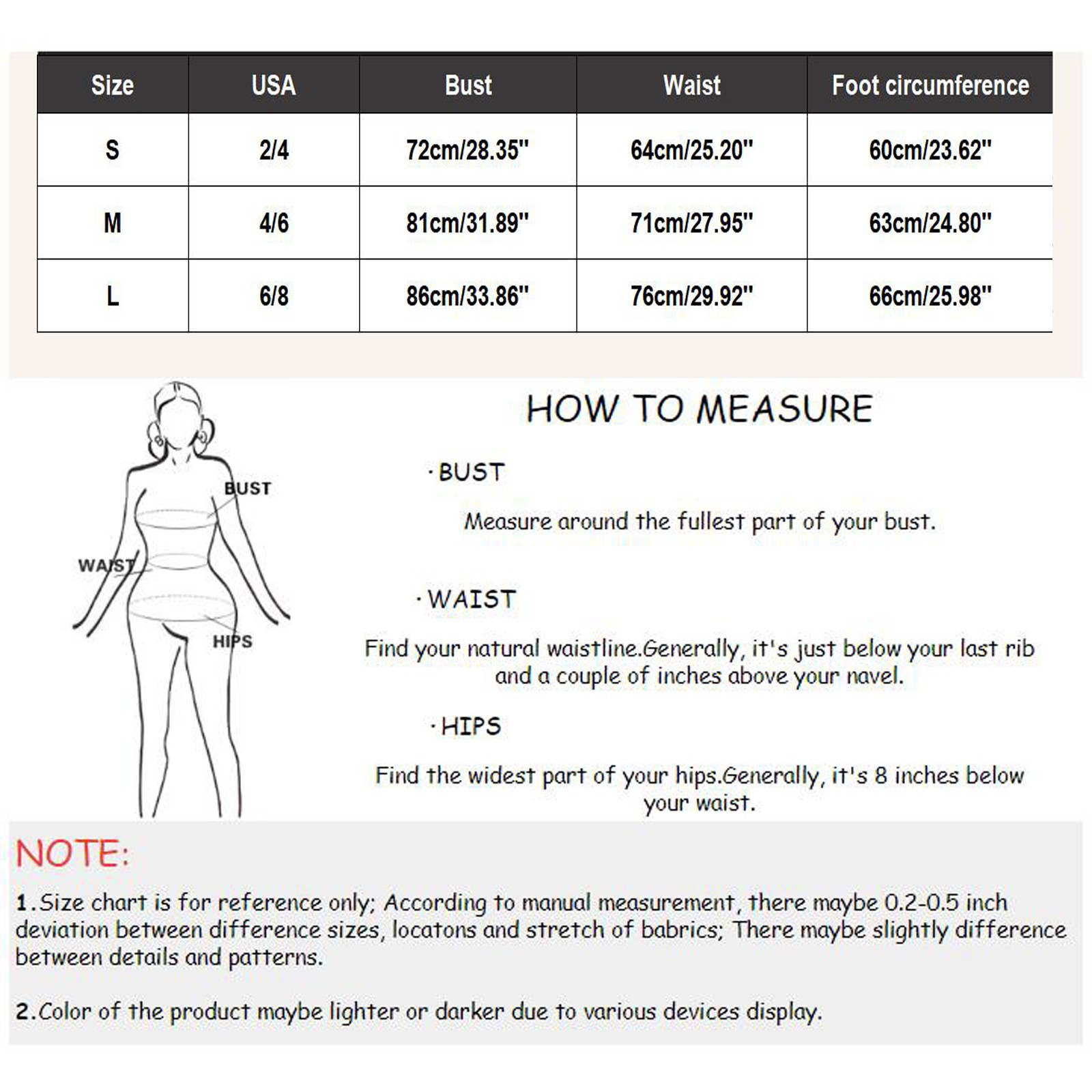 1. SИзеМожет быть погрешность 1-2 см/1 дюйм из-за ручного измерения.
