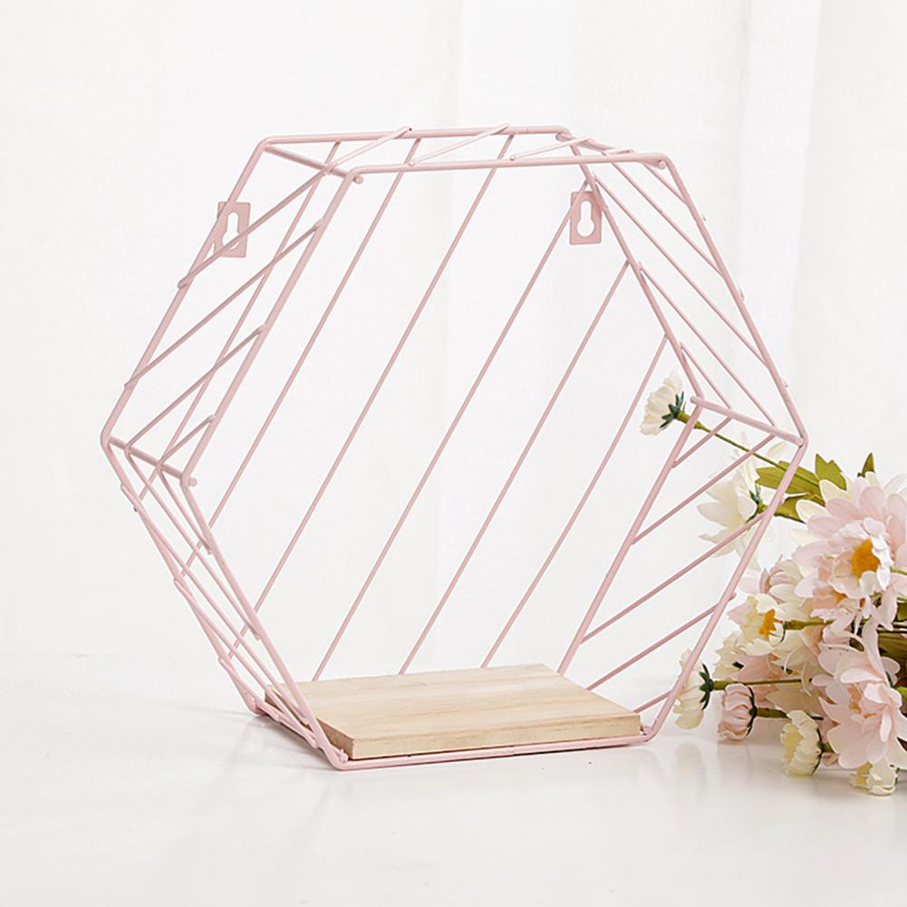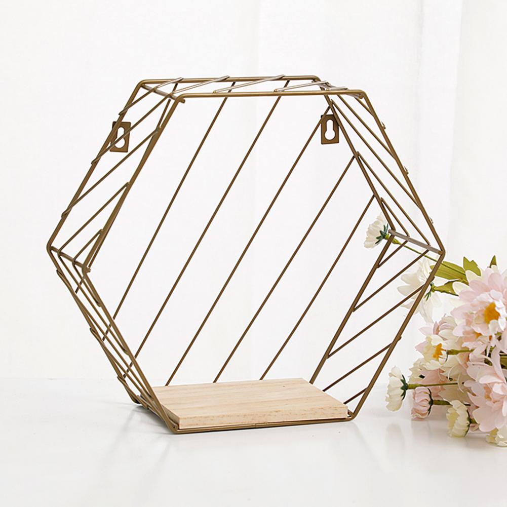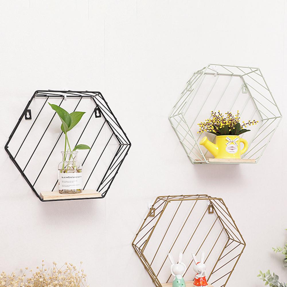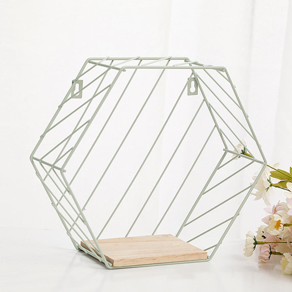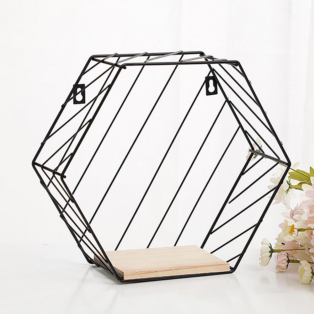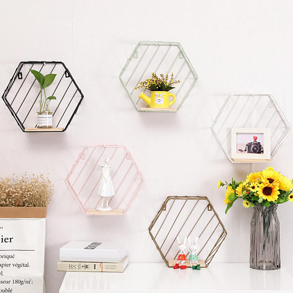 Полка для хранения в скандинавском стиле со съемной решеткой, настенная шестиугольная полка для украшения дома
