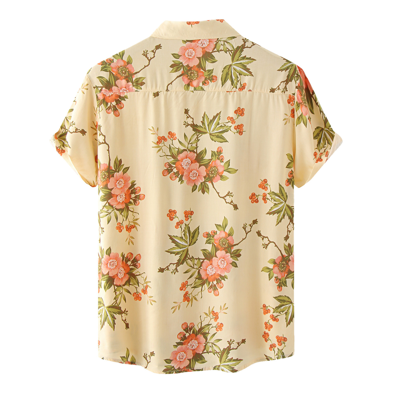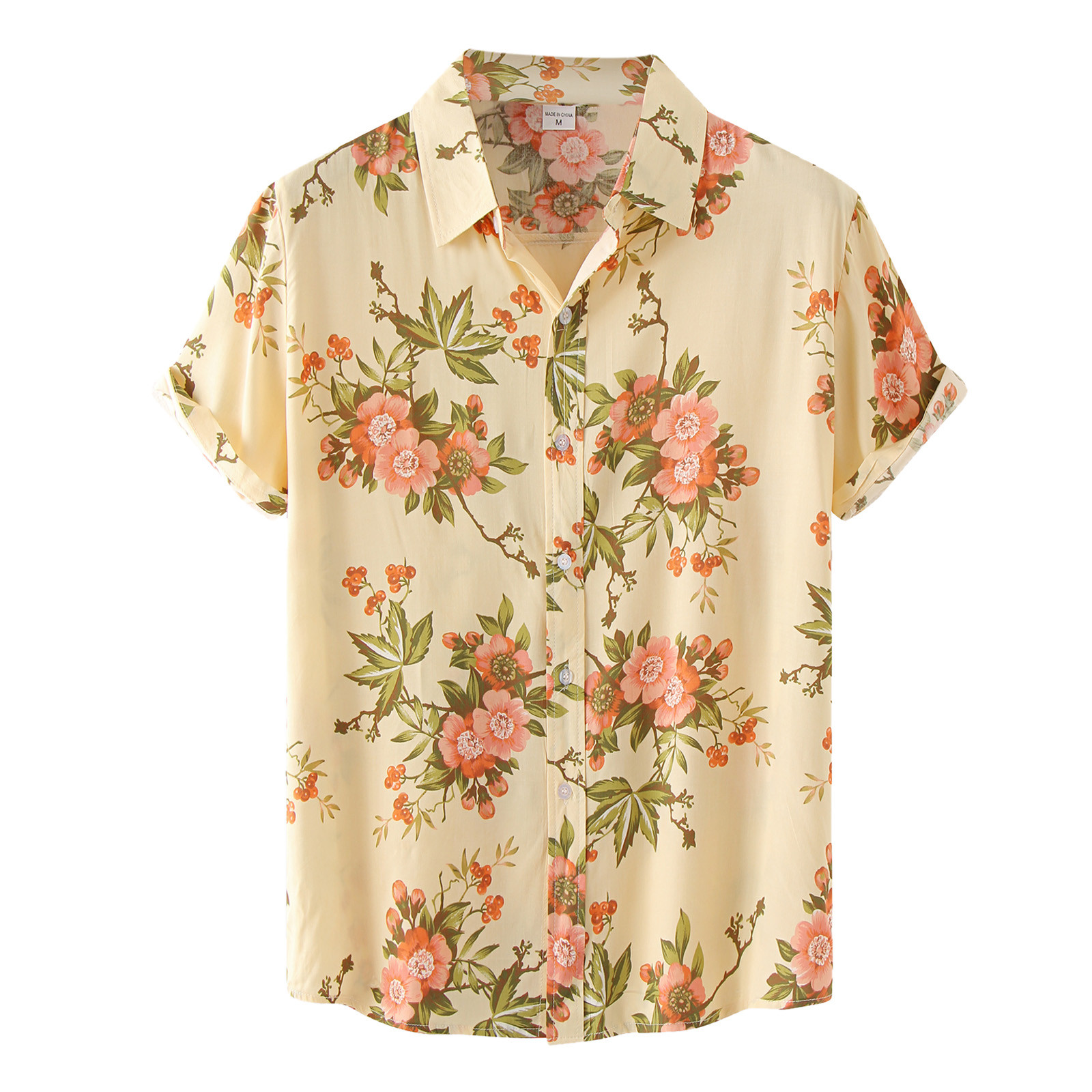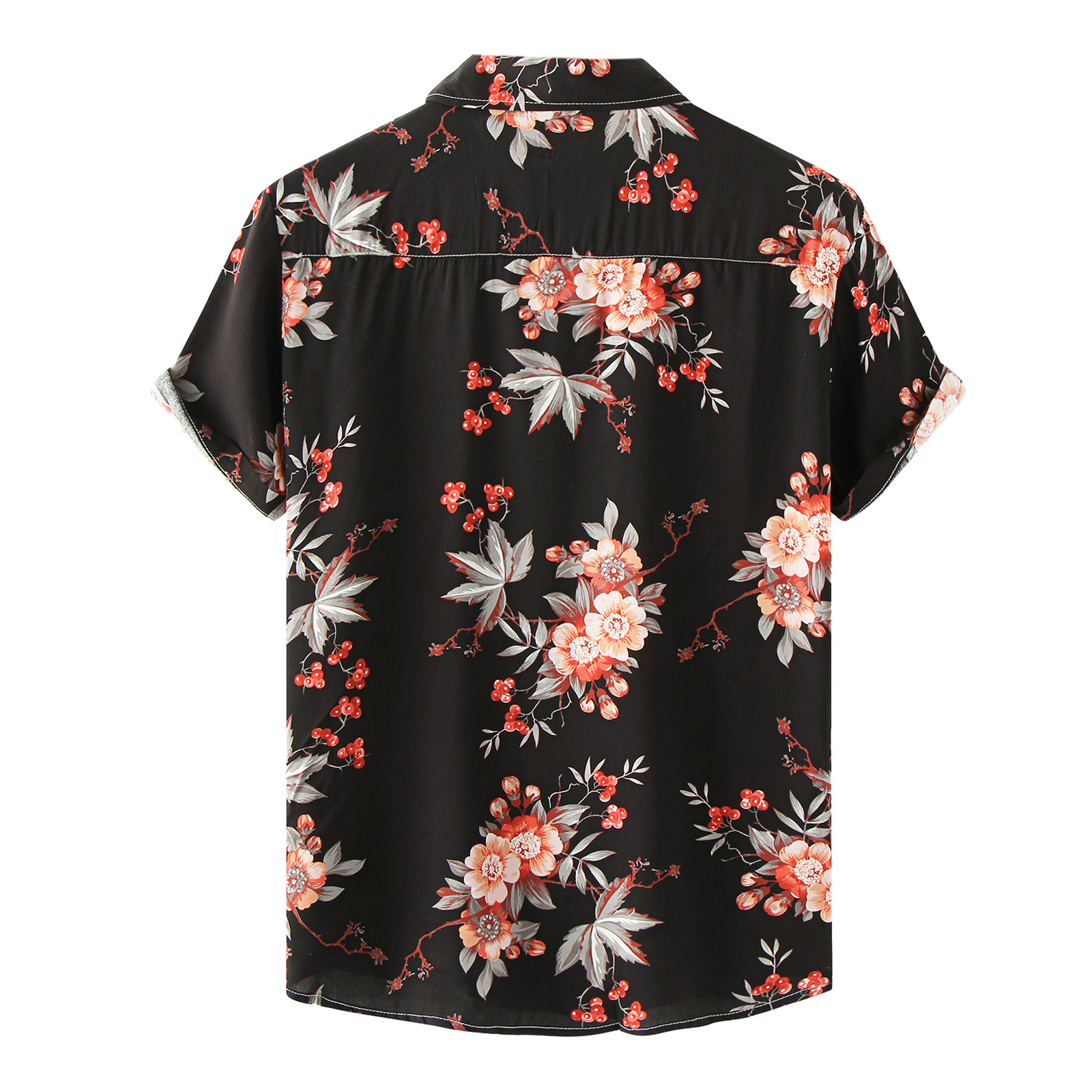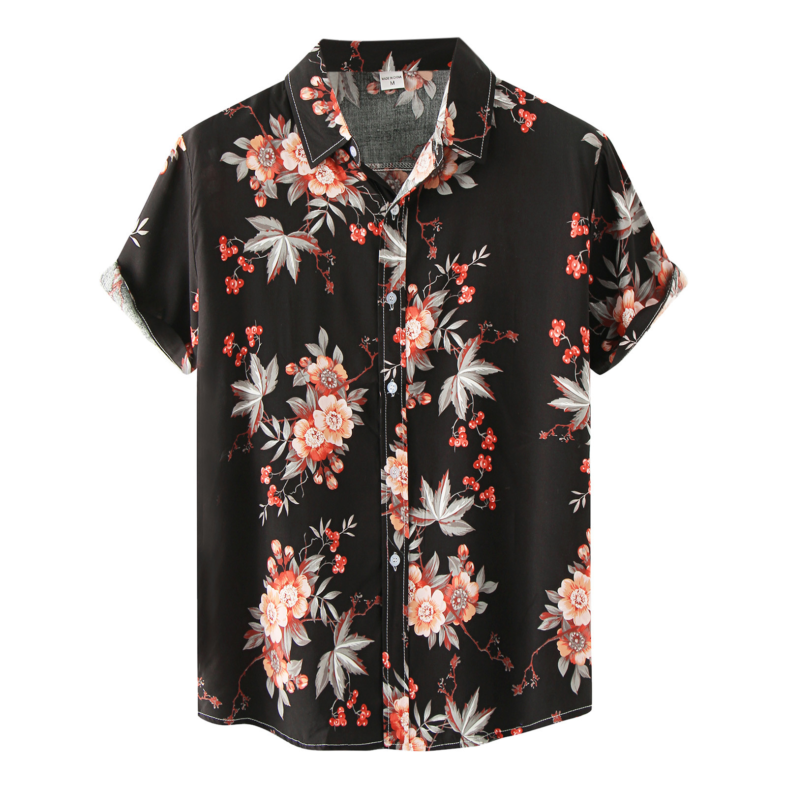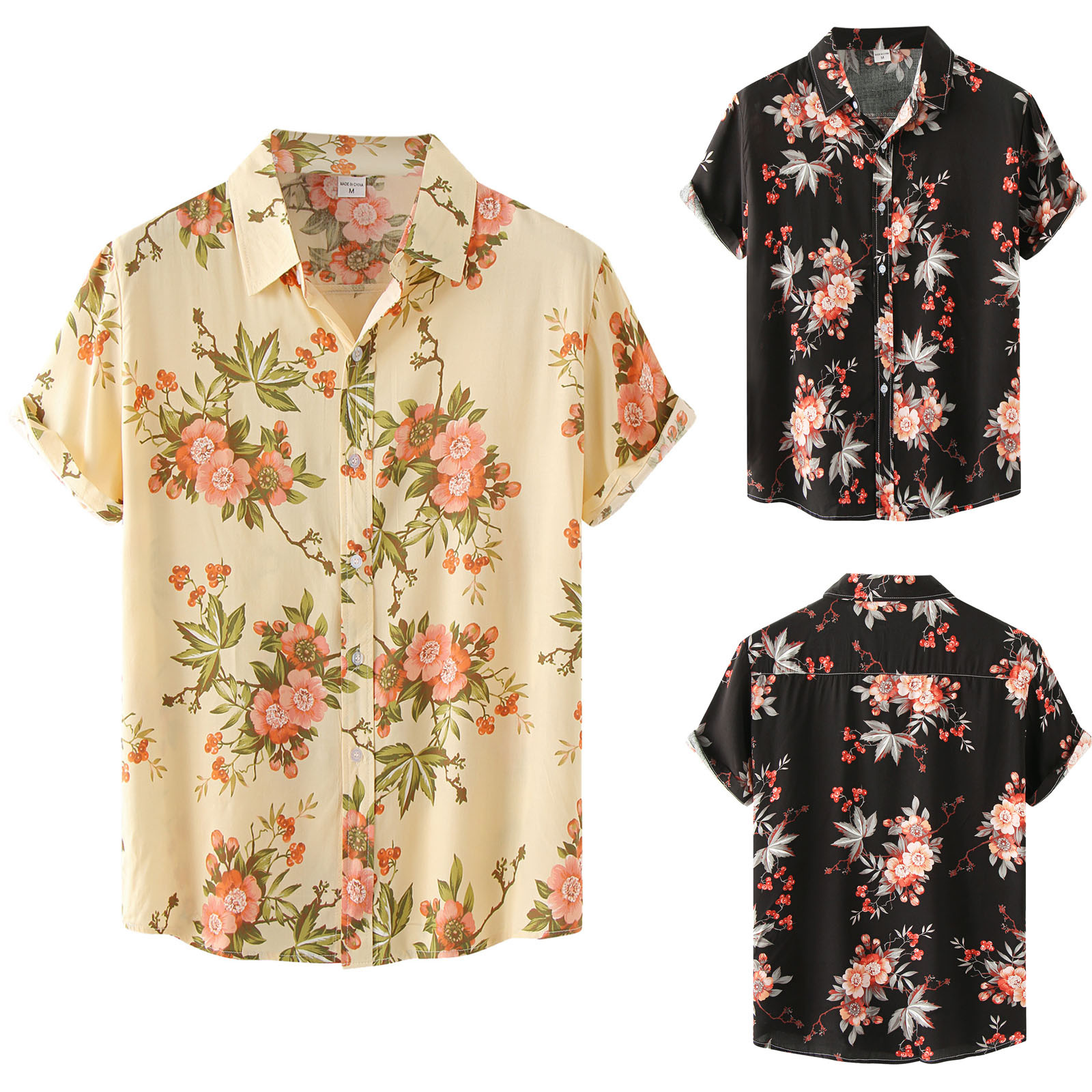 Мужская повседневная гавайская рубашка с цветочным принтом, рубашка с коротким рукавом и отложным воротником