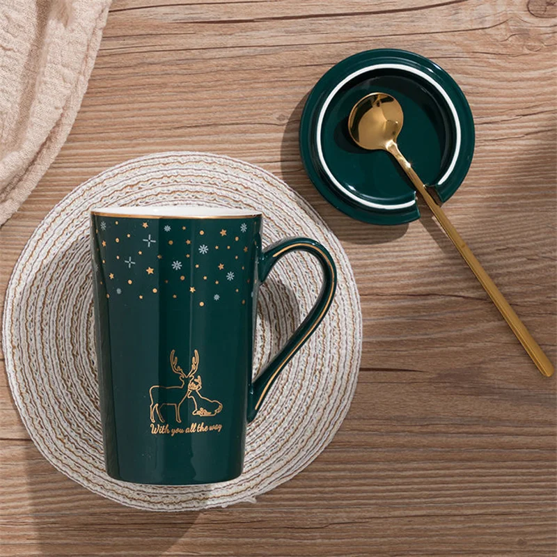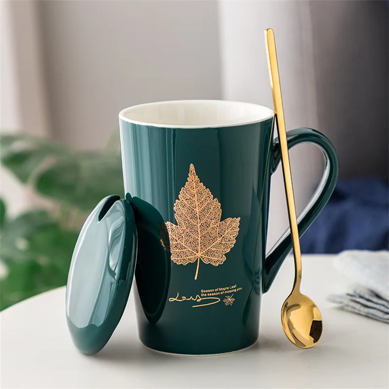 Кружка в виде кленового листа, Бесплатная ложка с крышкой, экологически чистая керамика, инструмент для питья для влюбленных мужчин и женщин, Мужская чашка для чая, молока, кофе, оптовая продажа J469