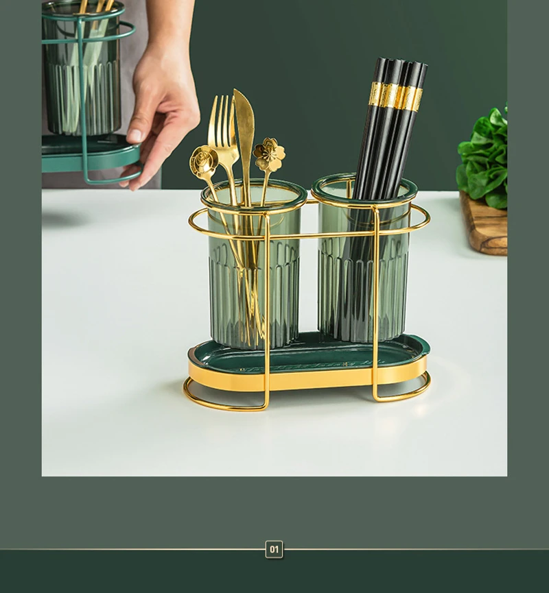 2. Европейский стиль бытовой сливной держатель для палочек, дизайн с двойными трубками, раздельное хранение более аккуратное.