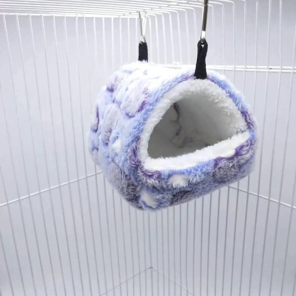 Features: 1. Comfort: The comfortable plush lining provides comfort and security. Two clips are included to secure the plush hammock to the cage. 2. Durable: durable. Will not clump. Does not shift. 3.Material: wool, warm and comfortable, suitable for small animals: hamsters, guinea pigs, squirrels, chinchillas, birds, etc. 4. Machine washable: no deformation. Easy to clean and wash. 5. An ideal place designed for your little pets, where they can sleep or play. Description: This product is a warm sleeping bag for pets, which is durable, does not agglomerate or shift. Specifications: Size: S(14*12cm), M(17*15 cm), L(22*21 cm) (optional) Color: purple, pink, coffee, sky blue (optional) Material:plush Package Included: 1 * Sleeping bag