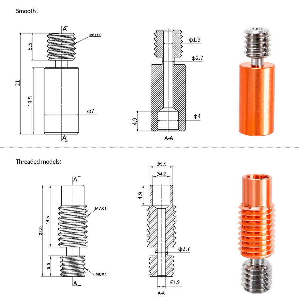 Гладкая версия:Совместим с Ender 2/Ender 3/Ender 3 PRO/Ender 5/Ender 5 PLUS/Ender 5 PRO/Ender 6Совместим с CR-10/CR-10 mini/CR-10 S4/CR-10 S5/CR-10S/CR-10S PRO/CR-20/CR-20 PROСовместимость с TronXY X5S/TronXY XY2 PRO/TEVO Tornado/Alfawise U20/Lotmaxx SC-10Резьбовая версия: