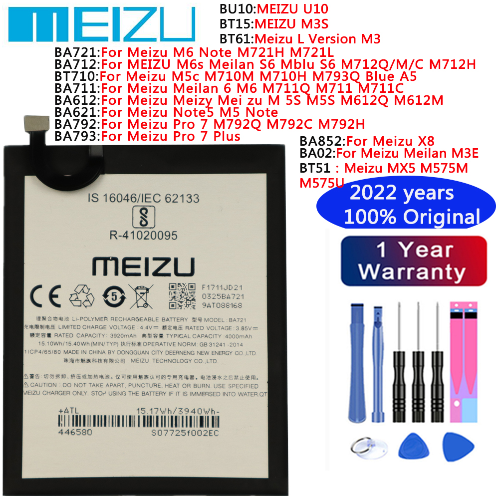 Оригинальный аккумулятор MEIZU для Meizu U10 M3S L версия M3 M6 Note M6s M5c Meilan6 M 5S Note5 Pro 7 Plus X8 Meilan M3E MX5