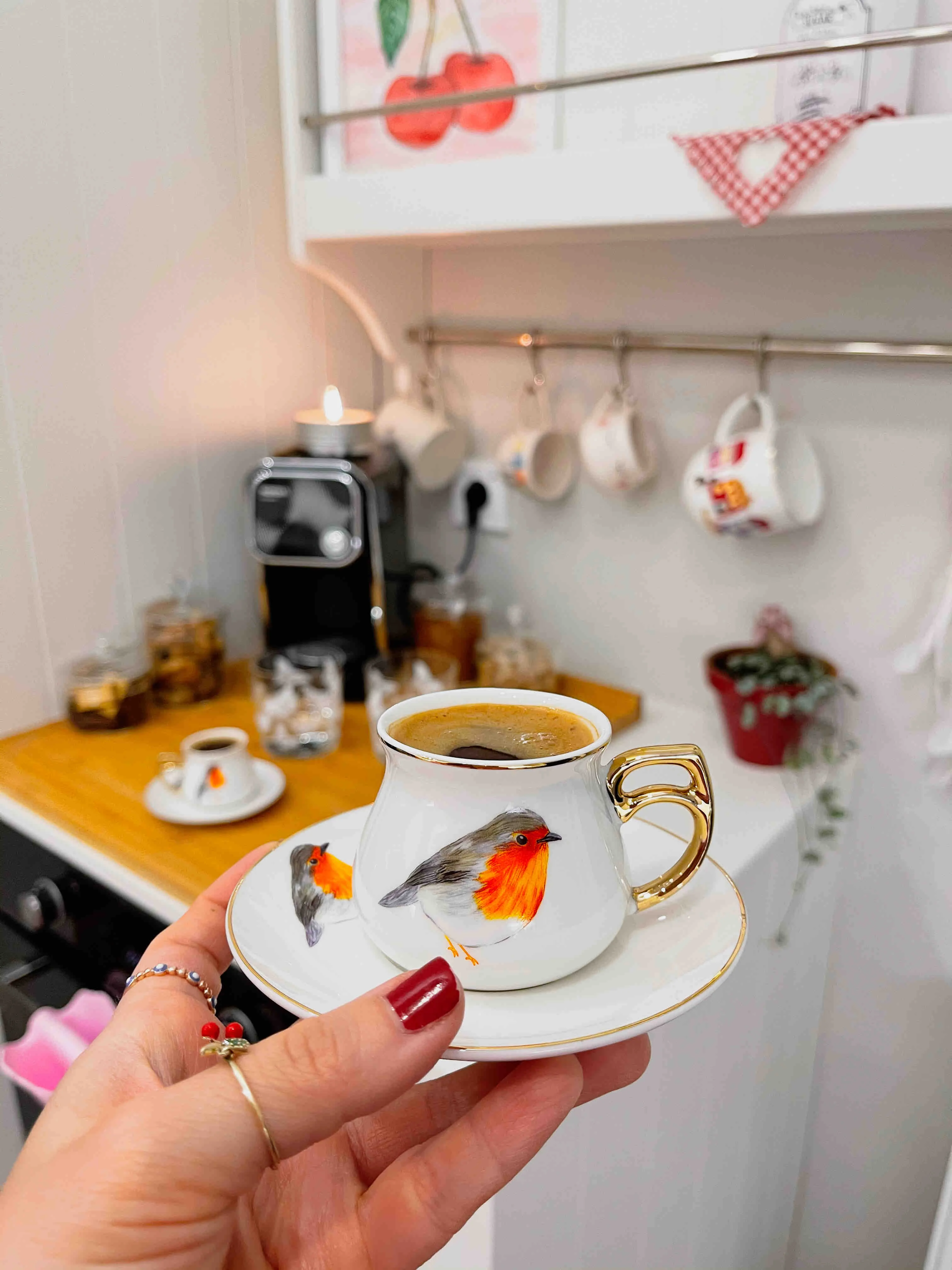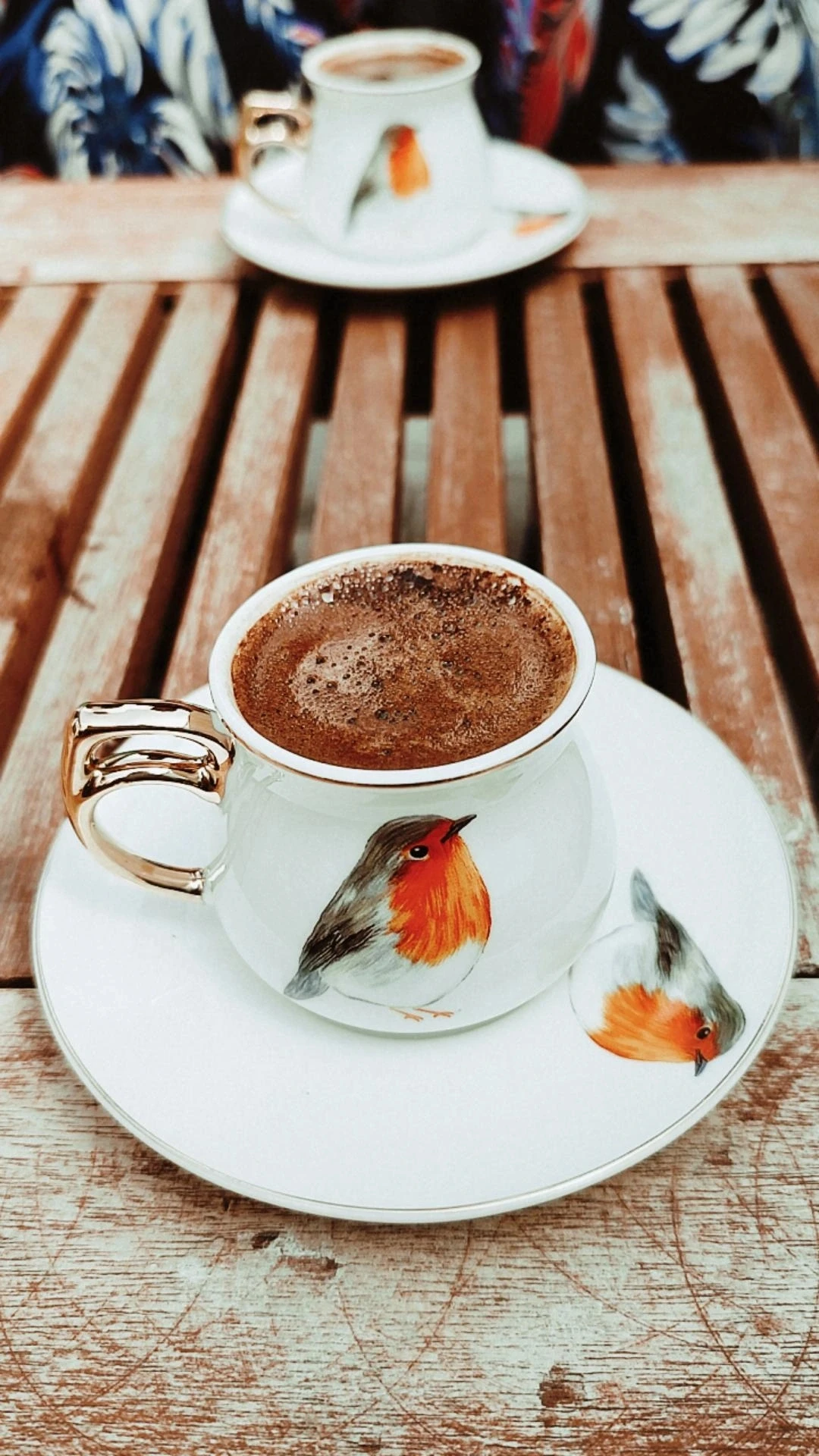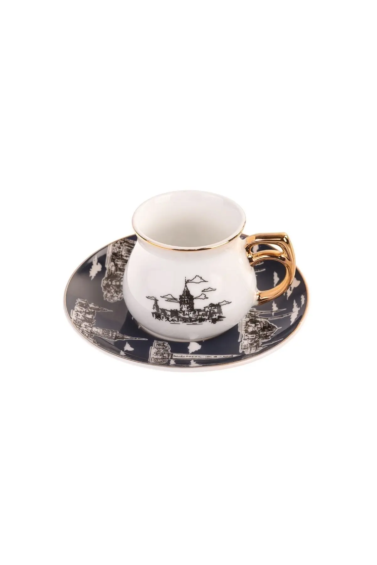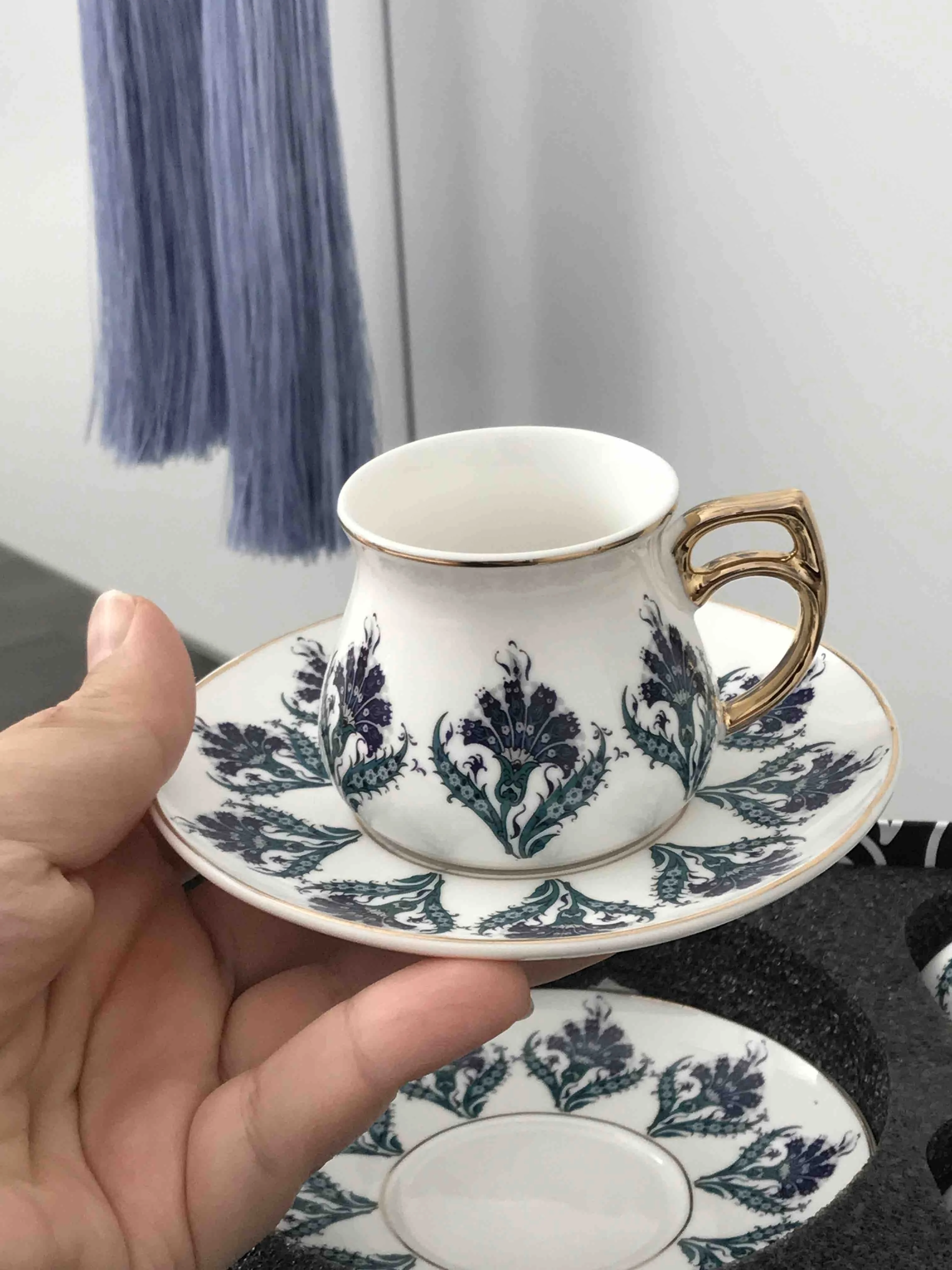 Кофейная чашка с подстаканником, изготовленная из фарфорового материала хорошего качества, легко моется и износостойкая.