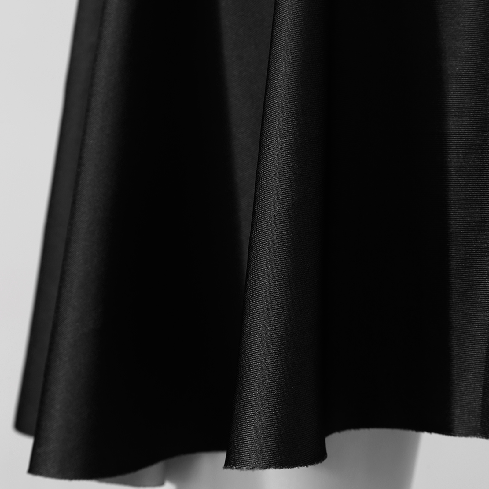 В этой юбке используется дизайн с высокой талией, эластичный пояс для удобной посадки, расклешенный силуэт трапециевидной формы.