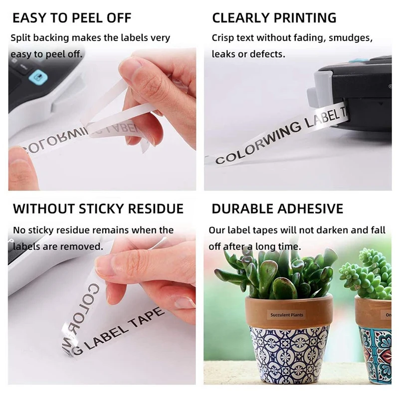 1. Черная надпись на прозрачном фоне, ширина: 1/2 дюйма (12 мм), длина: 23 футов (7 метров), характеристики: водонепроницаемые, маслостойкие, износостойкие и устойчивые к выцветанию.