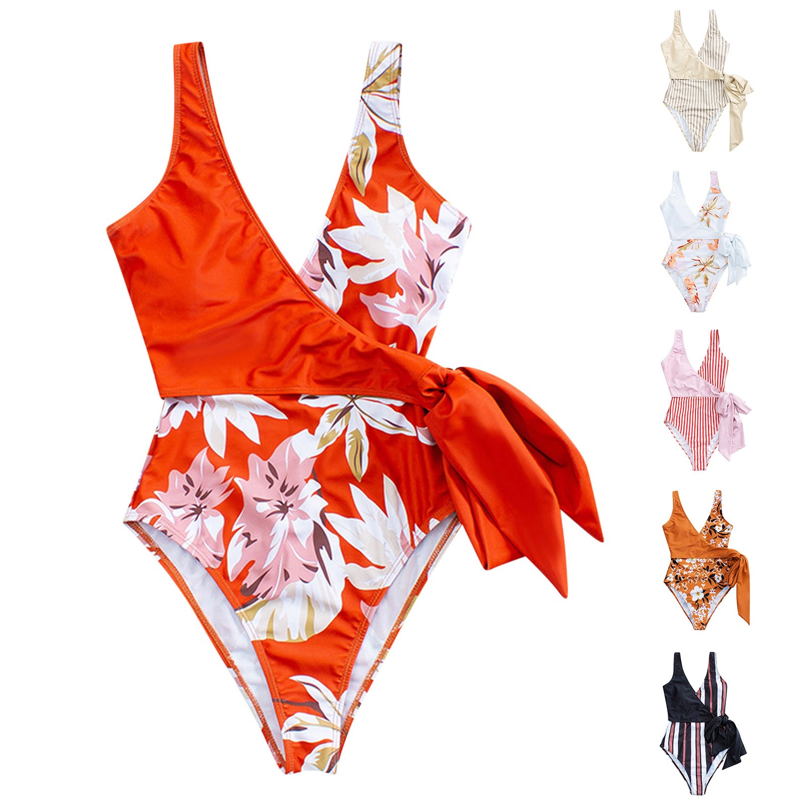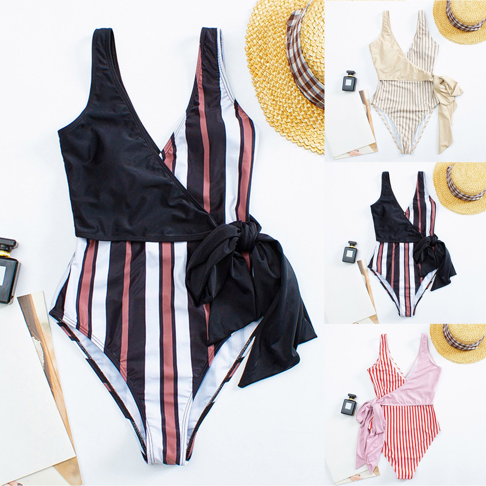 Женский сексуальный цельный купальник женский однотонный Полосатый Цветочный купальник бикини на бретелях