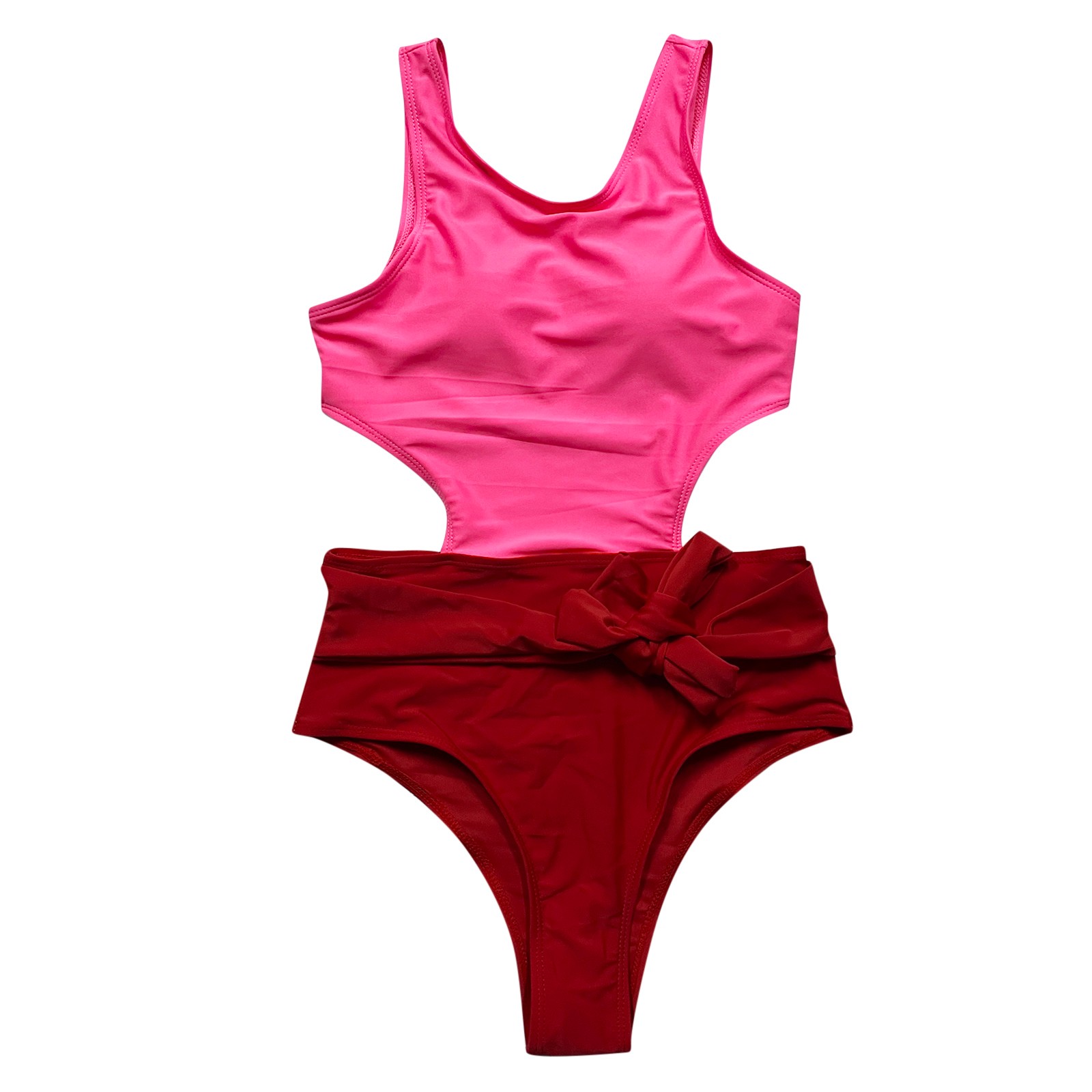 Женский модный Цельный купальник-бикини с круглым вырезом и сексуальным ремешком