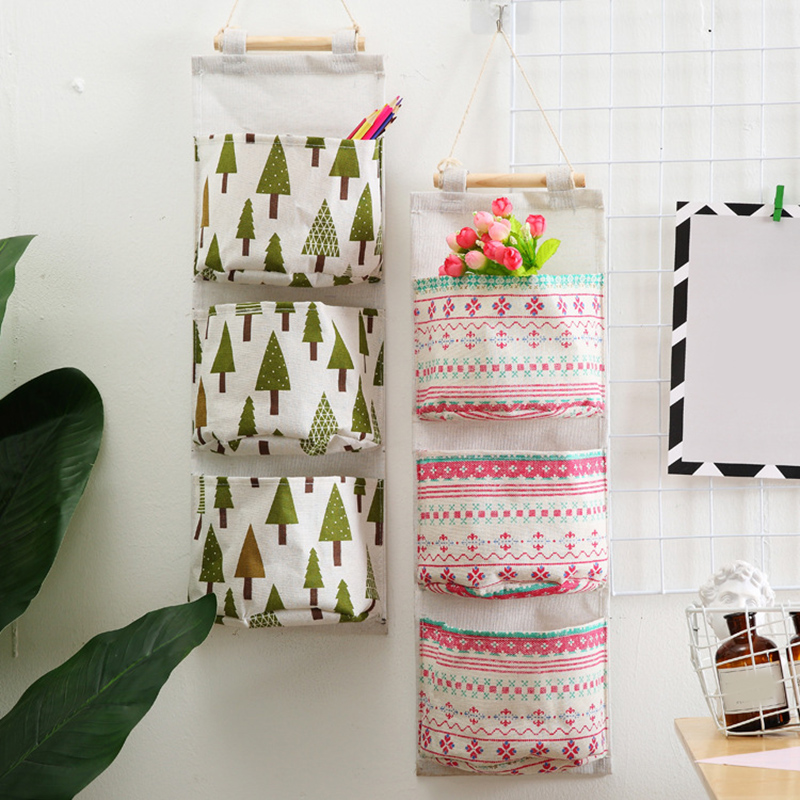 4. Foldable design and space saving: with 3 pockets. Foldable design, equipped with wooden strips and cotton rope, can be easily hung on doors, walls, closets, etc.