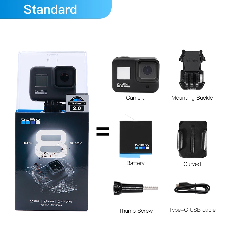 Водонепроницаемая экшн-камера GoPro HERO 8 Black, оригинальная камера 4K, Ultra HD, 12 МП, для записи видео, фотографии, 1080p, спортивная камера Go Pro Hero8 для прямой трансляции
