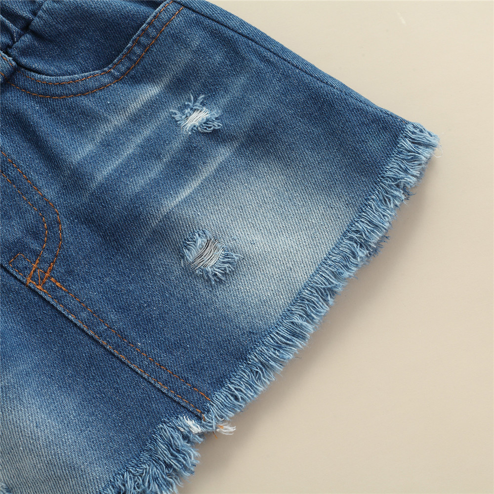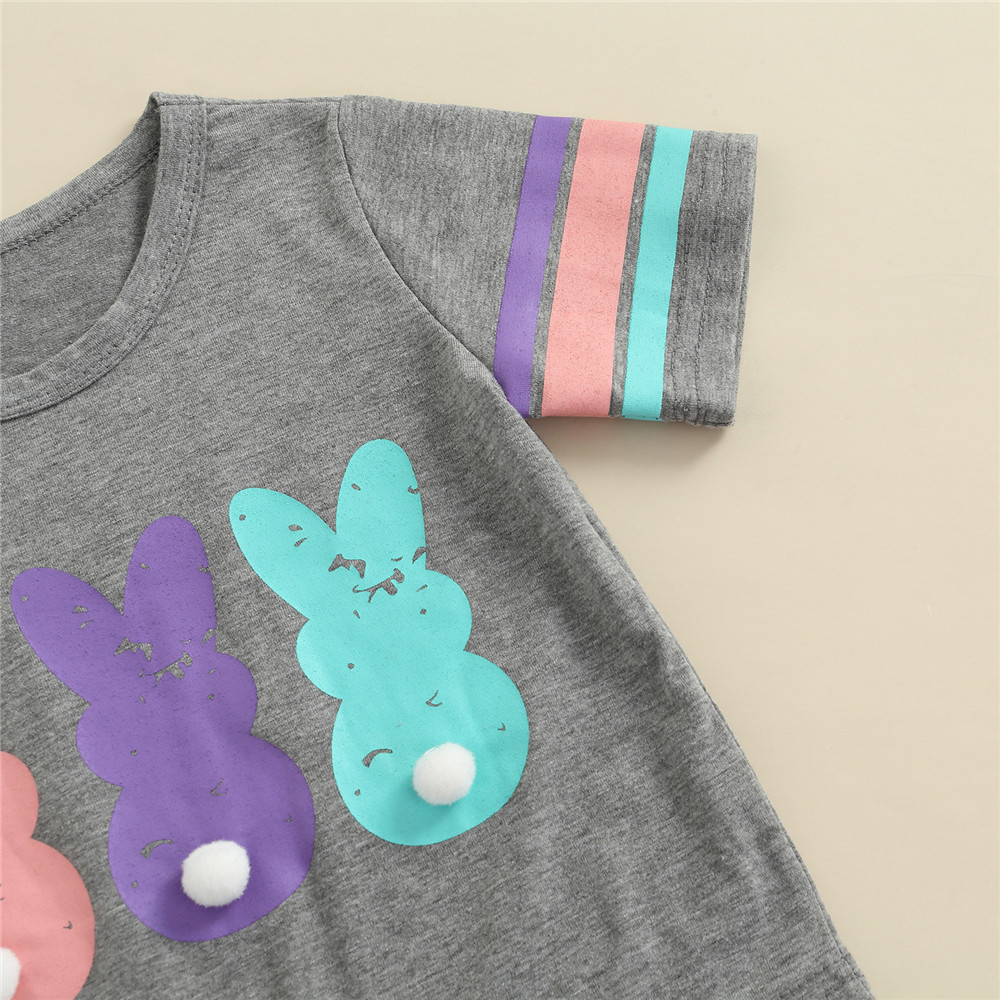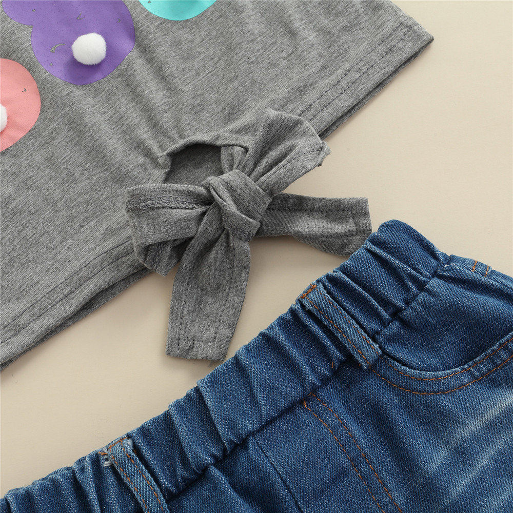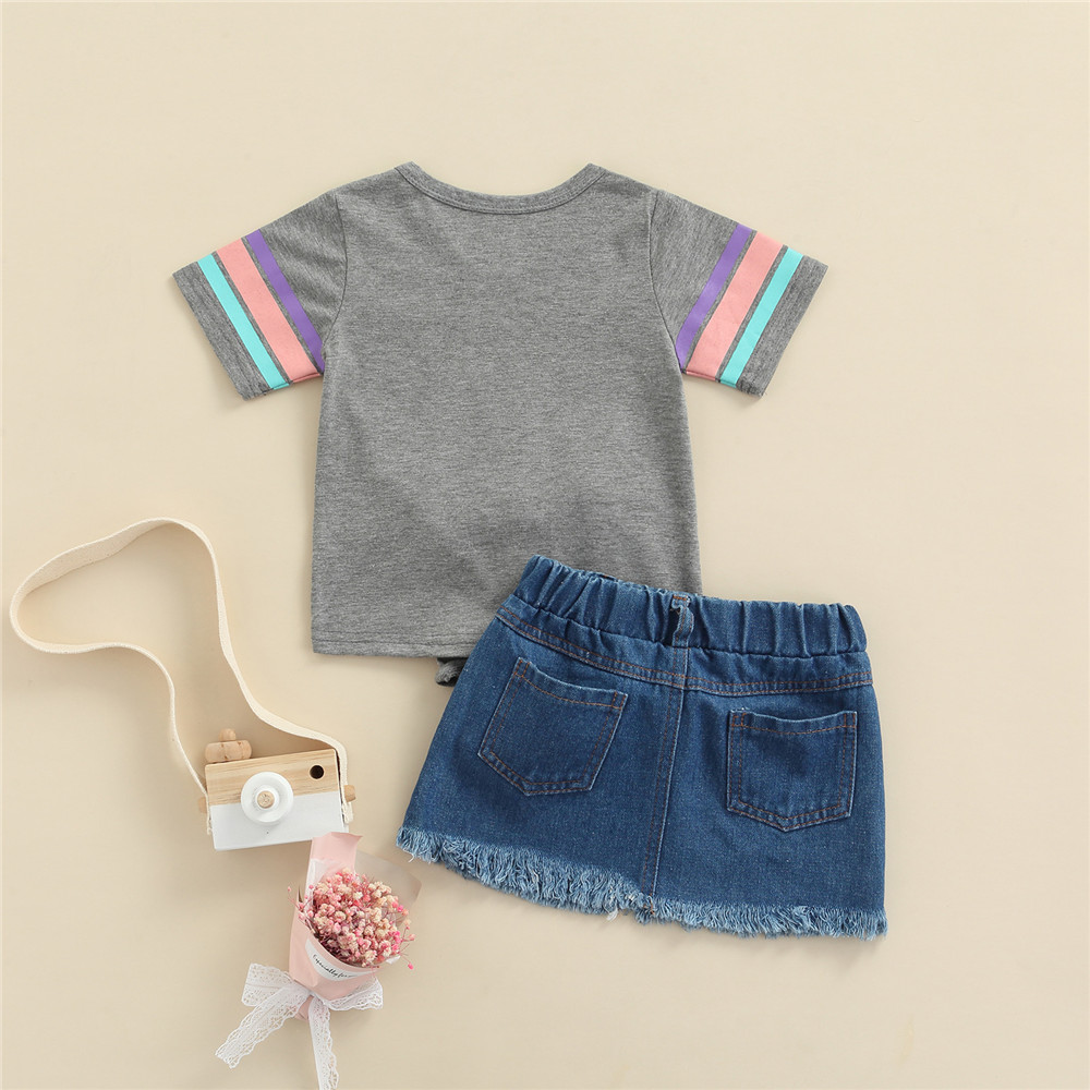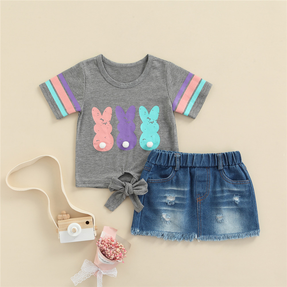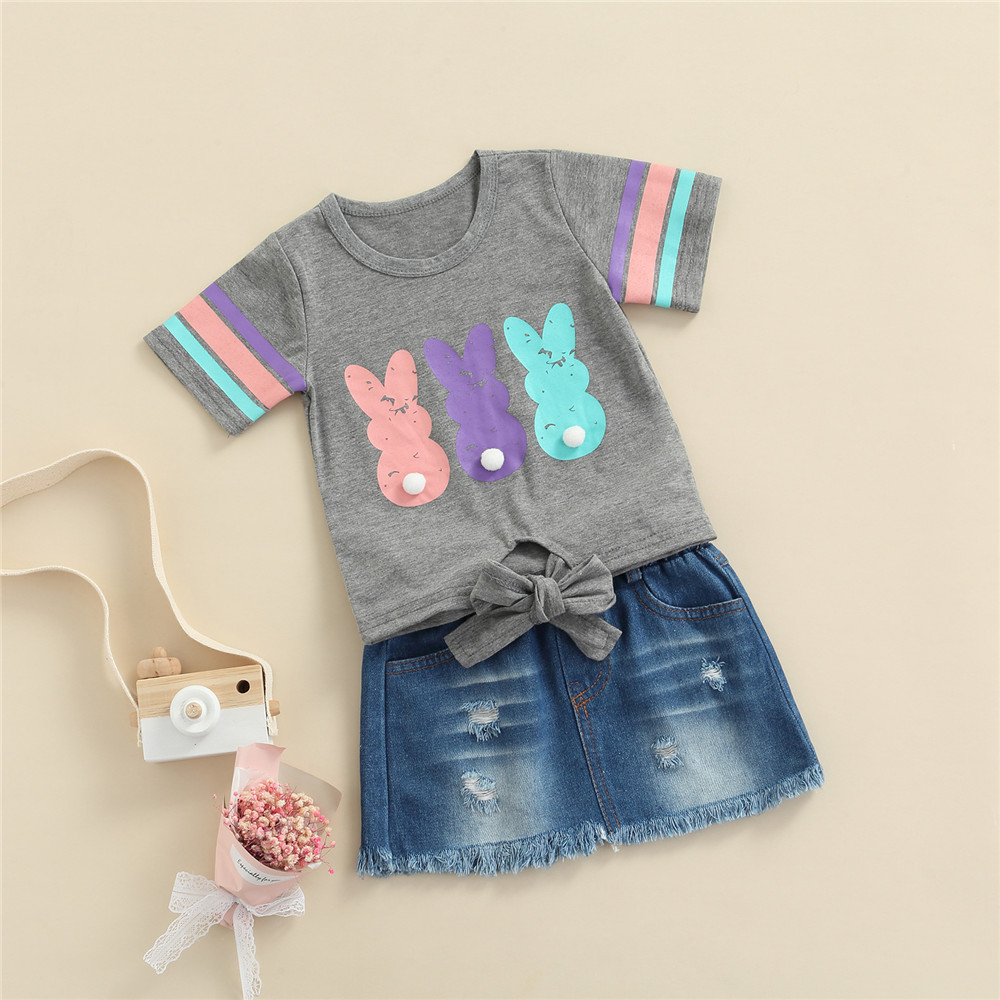 Милый комплект одежды для маленьких девочек, футболка с принтом кролика футболки, топы, синяя джинсовая юбка От 6 месяцев до 5 лет, летняя повседневная одежда для детей ясельного возраста