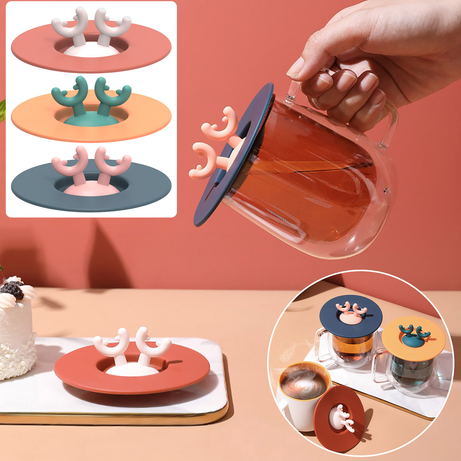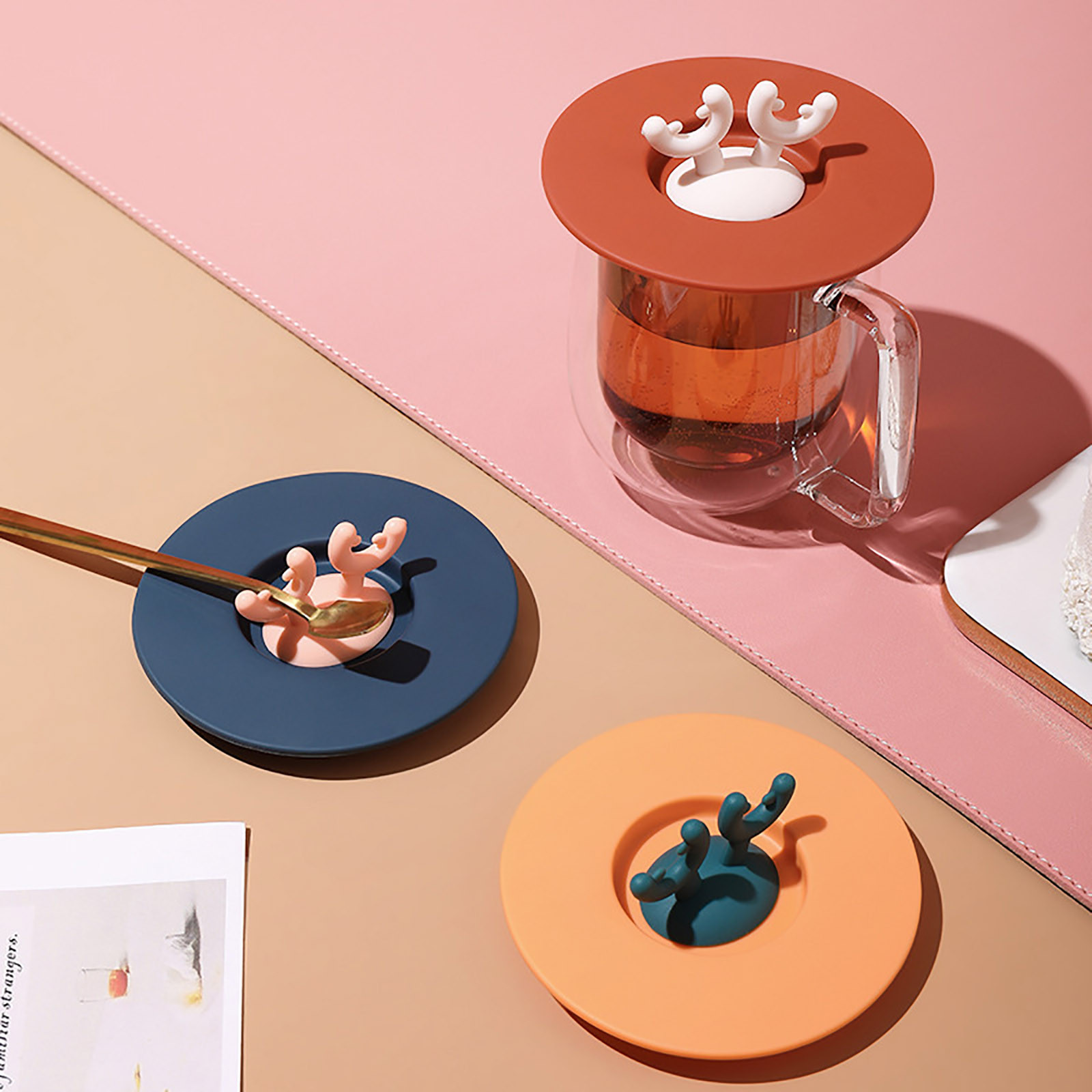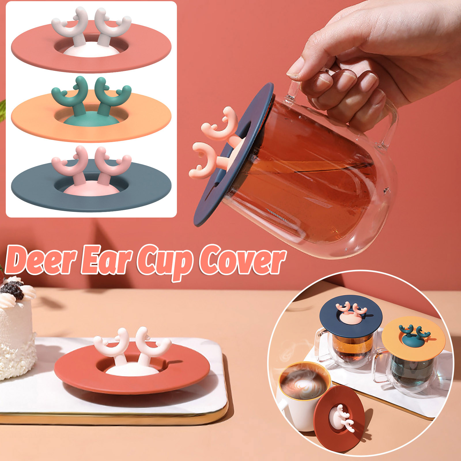 Силиконовая уплотнительная крышка с милыми ушками оленя из мультфильма, герметичная крышка для чашки, домашняя чайная кружка, чашка для чаши, уплотнительная крышка