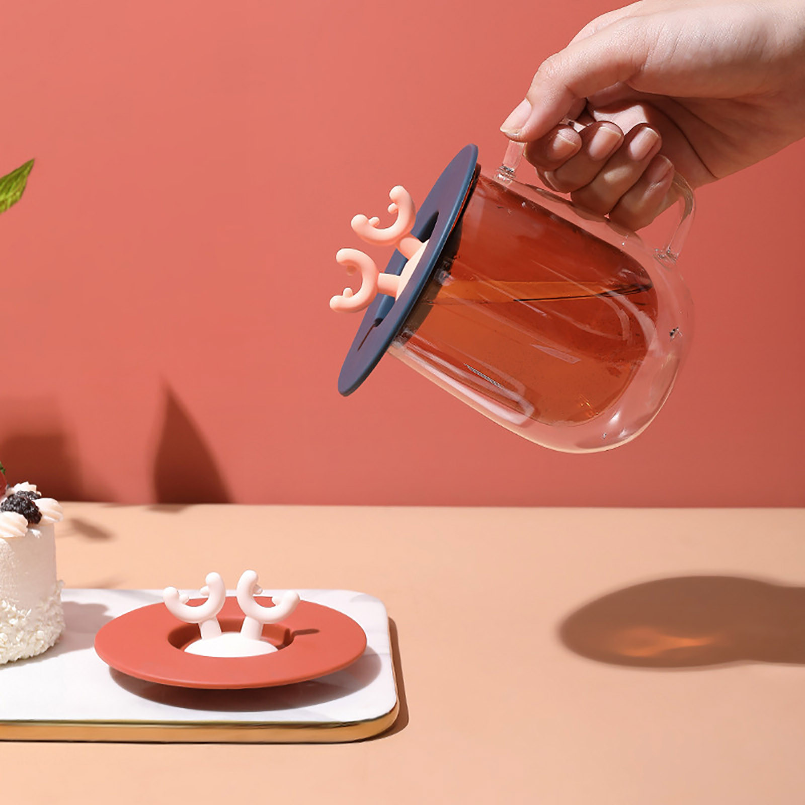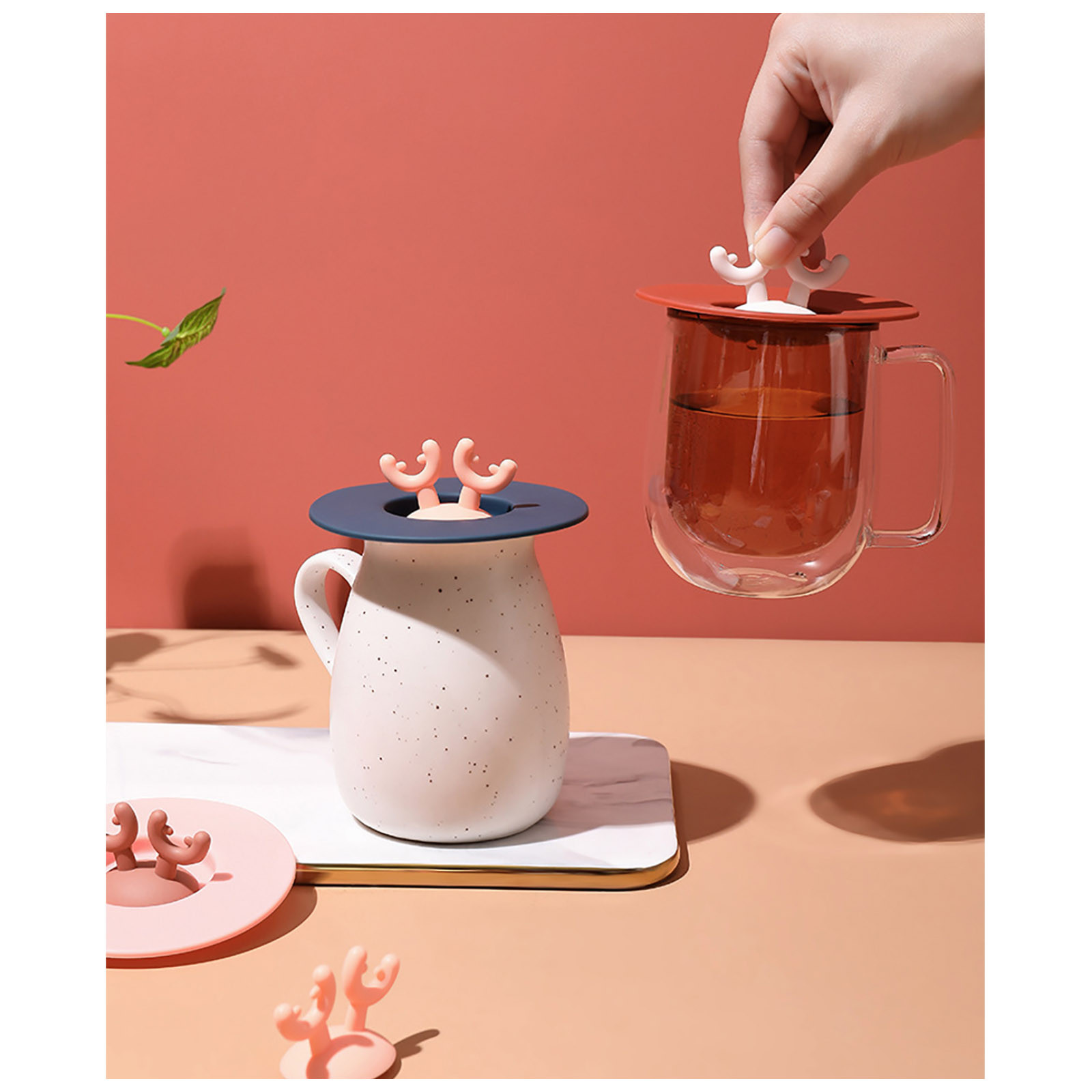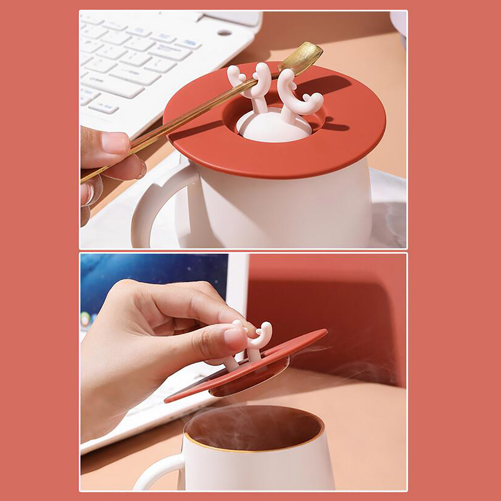 Силиконовая уплотнительная крышка с милыми ушками оленя из мультфильма, герметичная крышка для чашки, домашняя чайная кружка, чашка для чаши, уплотнительная крышка