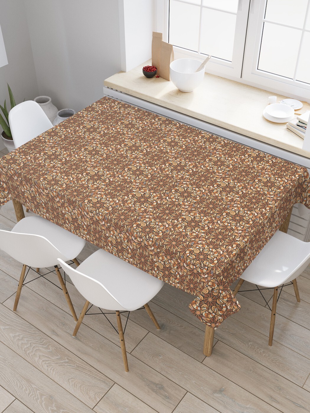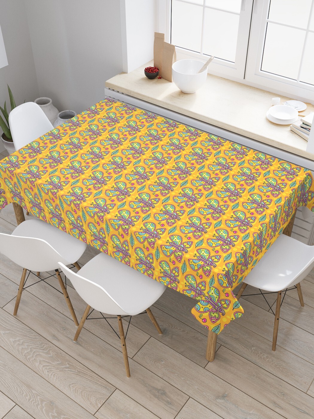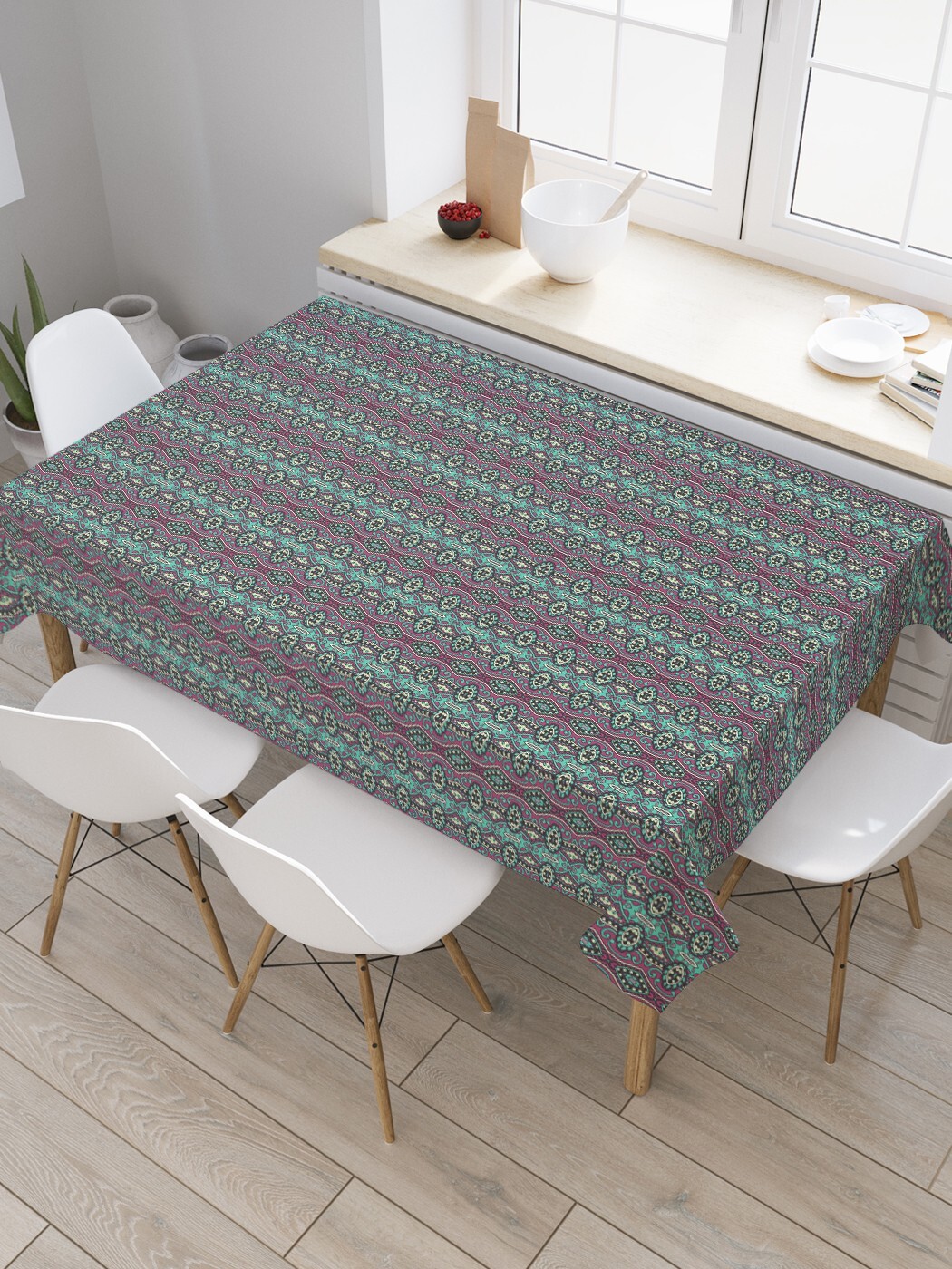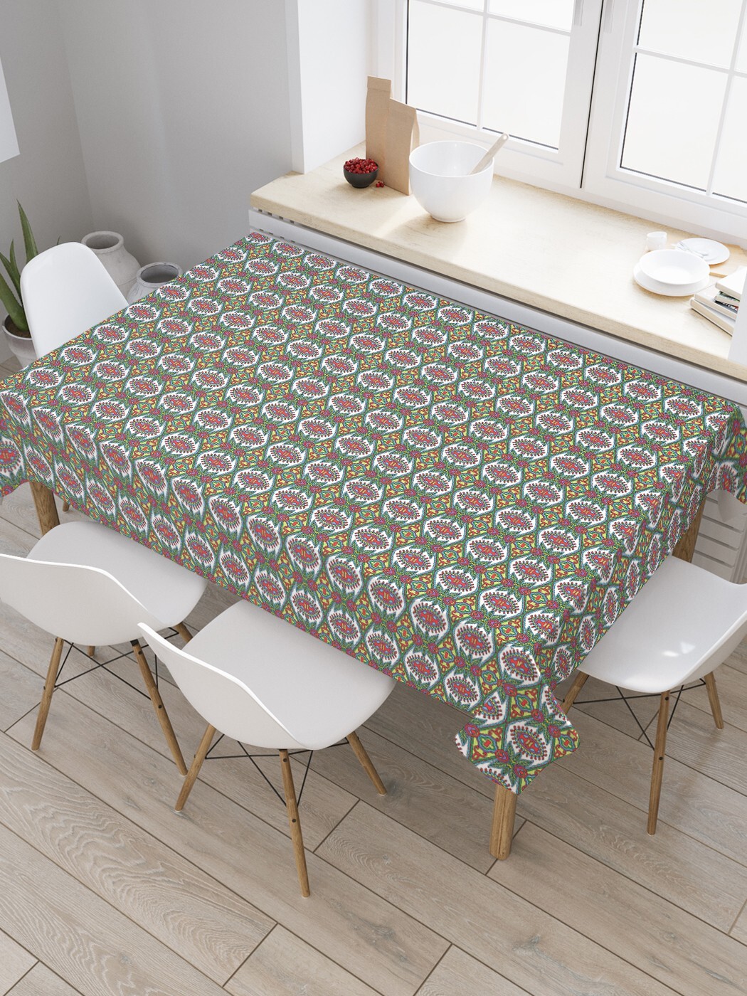 Красивая скатерть "Винтажный флористический этнос" из ткани оксфорд с водоотталкивающей пропиткой предназначена для ежедневного использования, и выпускается в размере 120x145, достаточном, чтобы полностью накрыть стандартный кухонный стол. Тканевая прямоугольная скатерть - отличная замена клеёнке и пластику. Она нарядна, практически не мнется, отличается завидной износостойкостью и без каких-либо последствий переносит многократные стирки. Яркий и четкий рисунок нанесен на полотно при помощи цифровой фотопечати, и не сотрется даже при интенсивной эксплуатации. Благодаря плотному плетению нитей рельефной тканевой основы и особой пропитке, скатерть на кухонный стол не протекает и надежно защищена от образования стойких пятен. Множество вариантов принтов позволит вам выбрать изделие в соответствии со своим вкусом и дизайном кухни.