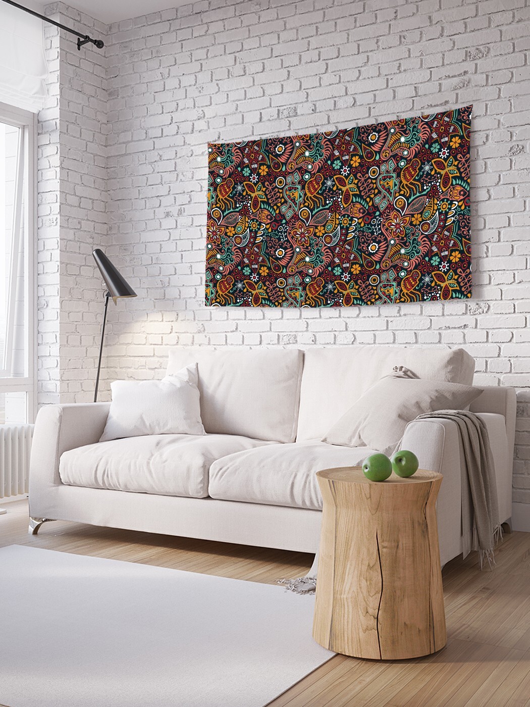 Репродукции всем известных картин давно не в моде, оригиналы дороги, но ничто не помешает вам оживить и украсить сдержанный интерьер гостиной, спальни или детской своего дома красочным матерчатым фотопанно на стену. Его основой является сатен ‒ плотная ткань из 100% полиэстера с особым плетением нитей, образующих гладкую и блестящую поверхность. Разноцветный рисунок наносится на основу способом сублимационной фотопечати. Изображение не выгорает на солнце и не смывается при стирке, поэтому красочная картина полотно на стену успешно прослужит до того момента, пока вам не захочется заменить его панно другой цветовой гаммы. Производитель побеспокоился, чтобы покупателю было из чего выбрать ‒ к заказу доступны изделия различных оттенков и сюжетов. Панно крепится к стене при помощи 4 петель.