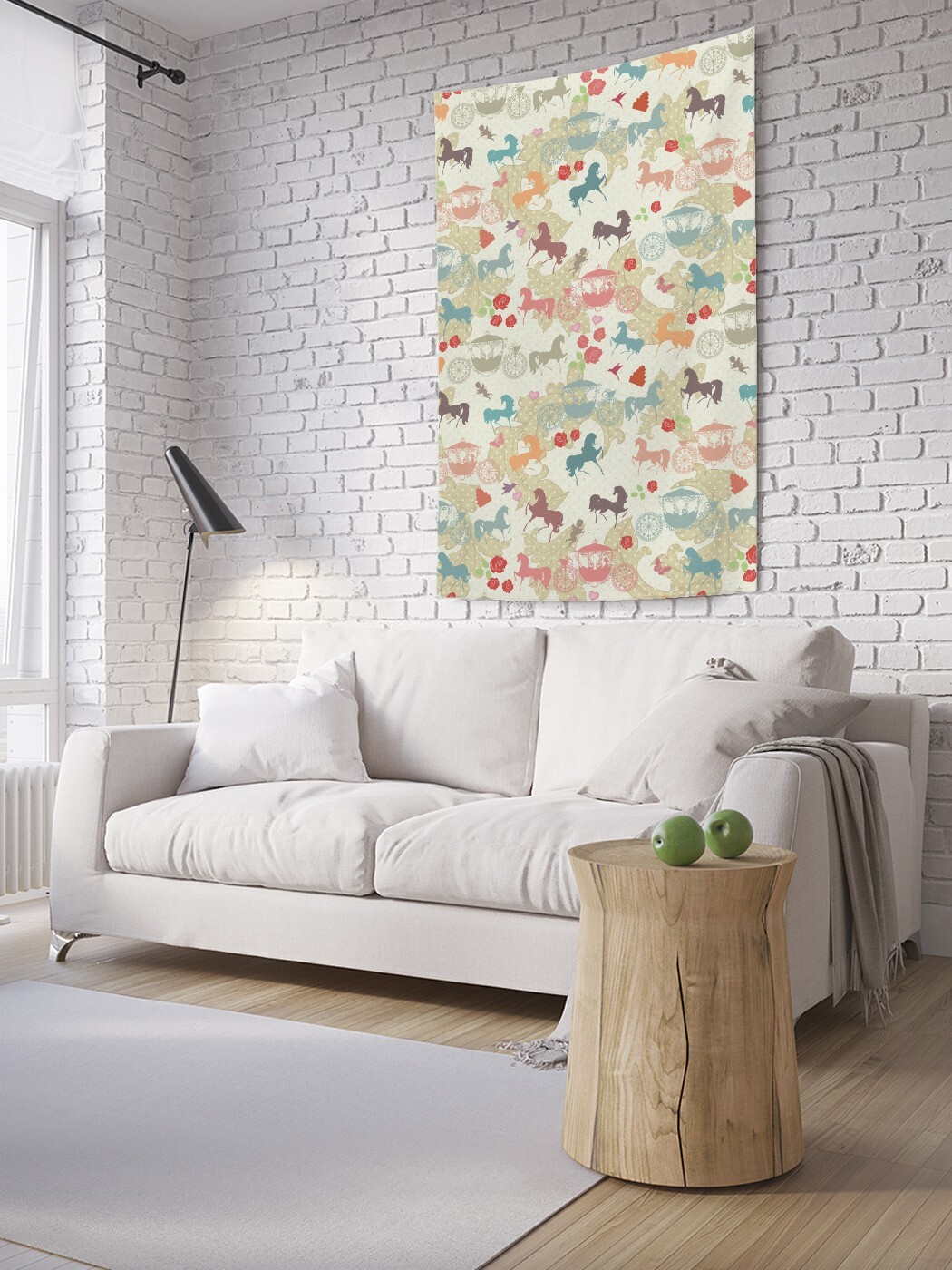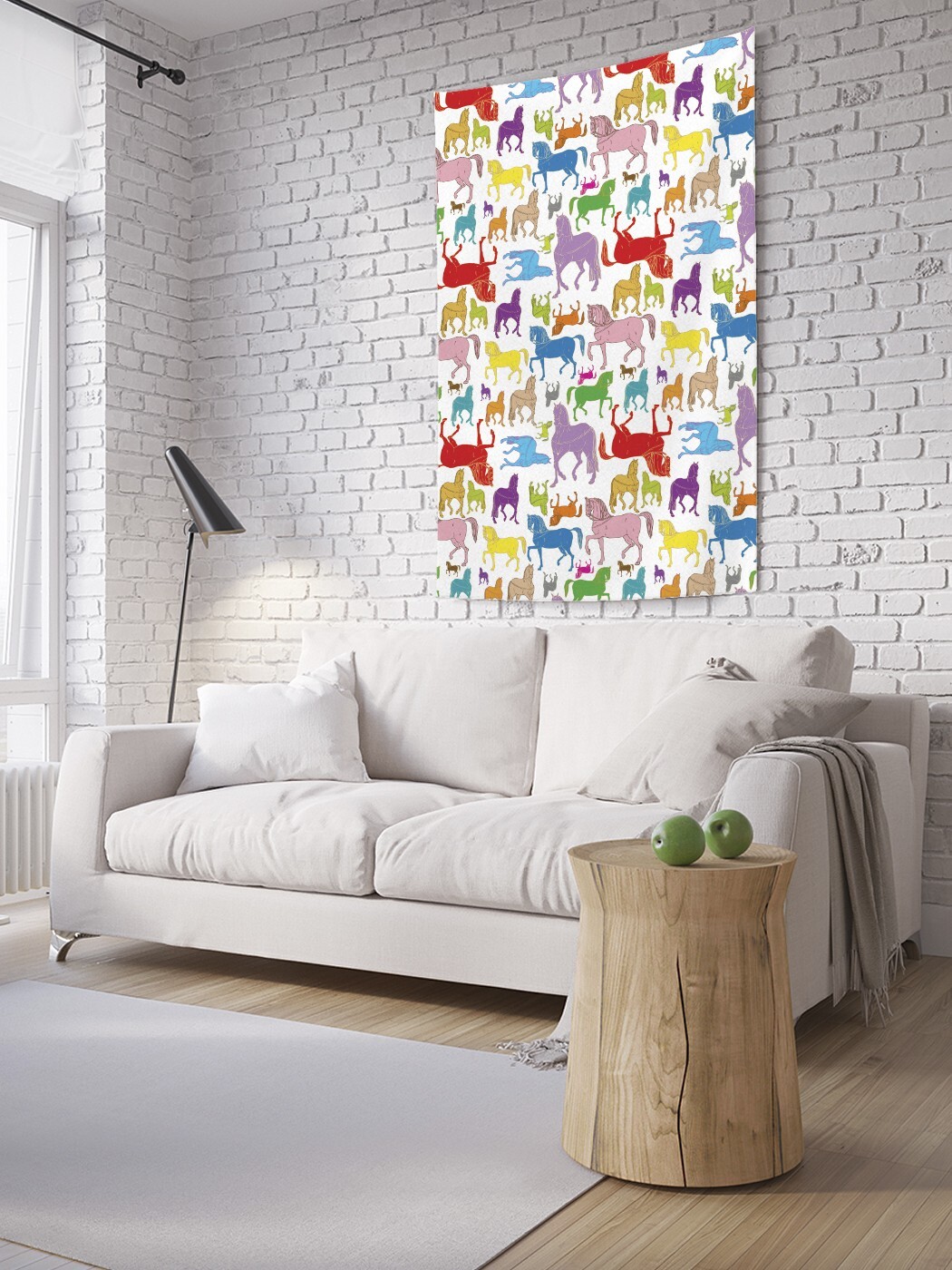 Настенные ковры давно не в почете, за матерчатыми обоями сложно ухаживать, но, если вам захочется разнообразить интерьер своего дома яркими красками, это можно сделать при помощи цветного панно из ткани. Этот художественный аксессуар изготавливается из сатена - плотного тканого материала, который не провисает и хорошо держит первоначальную форму. Изделие крепится к стене при помощи четырех петель, расположенных по его углам. Яркие цветные изображения наносятся на полотно способом сублимационной фотопечати. Специальные дисперсные красители устойчивы к воздействию окружающей среды ‒ они не смываются, не осыпаются и не выгорают на солнце. Если со временем висящий на стене постер с фотопринтом запылится, его без всяких опасений можно будет постирать и погладить.