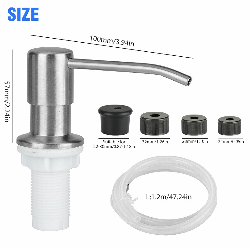 3. Отличный дизайн: металлические обратные клапаны на конце трубки позволяют трубке сидеть на дне мыльного контейнера, чтобы убедиться, что она будет распределяться на каждом насосе, И всасывание на трубке будет хорошо работать, чтобы выкачивать мыло, Длинный хвостовик идеально подходит для гранитных столешниц и глубокой установки, идеально подходит для жидкого мыла, лосьона или жидкого моющего средства.
