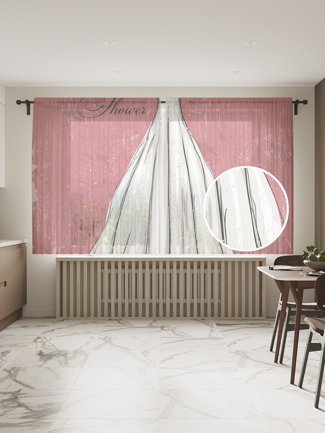 Изысканный тюль с нанесенным способом полноцветной фотопечати рисунком может украсить собой кухню любого стилевого решения. За счет множества различных вариантов принтов, можно подобрать нарядный фототюль для кухни, оформленной в классическом, этно, ретро, деревенском, и даже в стиле модерн. Воздушная сетчатая ткань, составляющая основу изделия, на 100% состоит из нитей полиэстера. Этот материал не усаживается при стирках и не «отвисает» при длительной эксплуатации. Тюль на кухню короткая продается в виде комплекта, в который входят два полотна размером 145х180 см, шторная лента и 50 крючков для навешивания. Такая комплектация позволяет оформить тюлем сразу два окна обычного размера, либо большое окно во всю ширину кухни. Особенно красиво фототюль ‒ сетка выглядит в комплекте со шторами.
