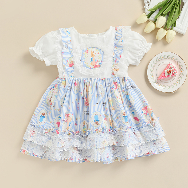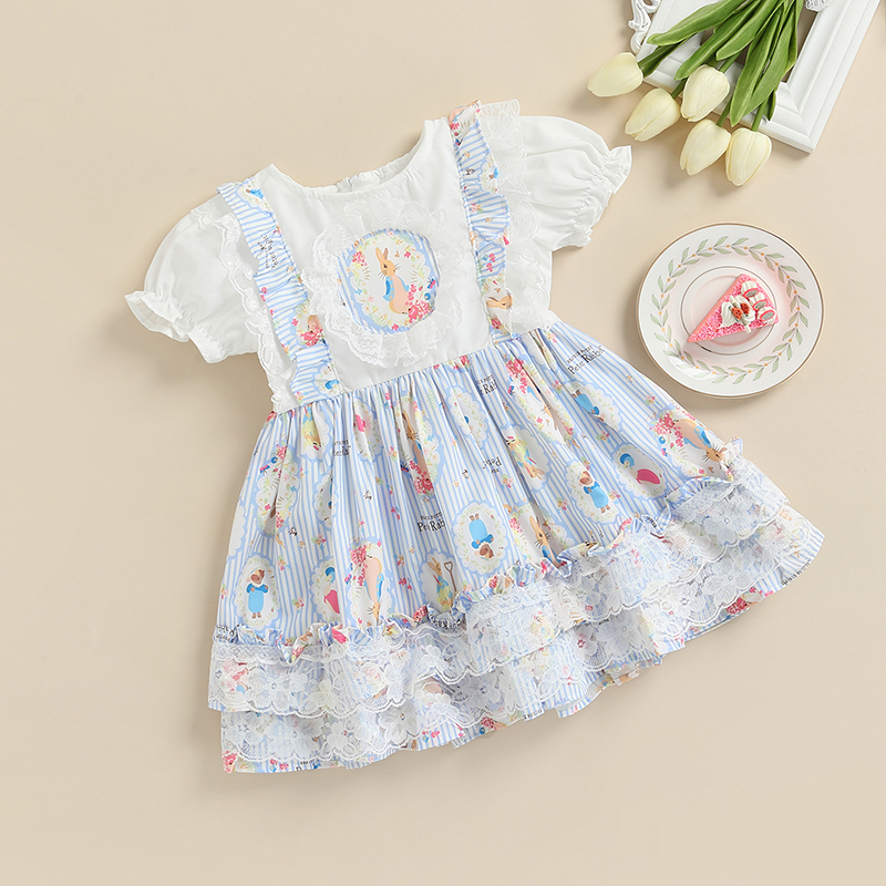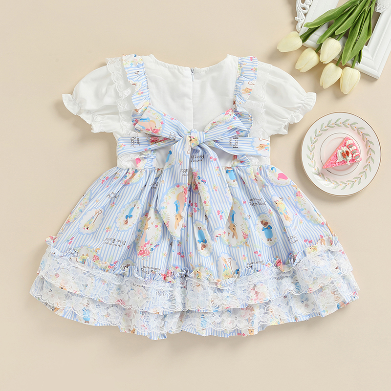 Модное платье с короткими рукавами и принтом кролика для маленьких девочек