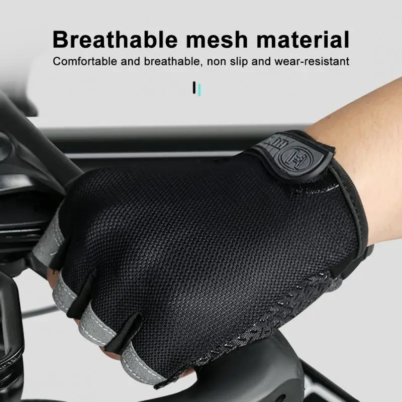 Часть ладони полностью не скользит. Не сомневаясь в использовании материалов, нескользящая Горизонтальная и вертикальная конструкция для полного пальца ладони Увеличивает трение, что может уменьшить риск потливости и скользкости во время езды, И эффективно защищает руки. Министерство безопасности