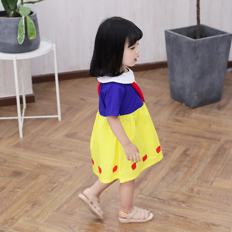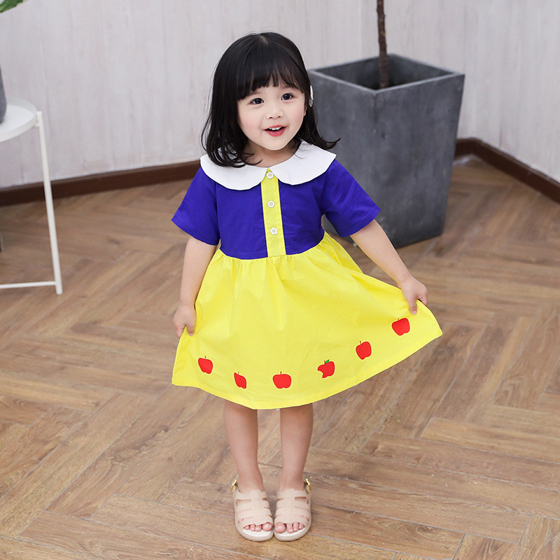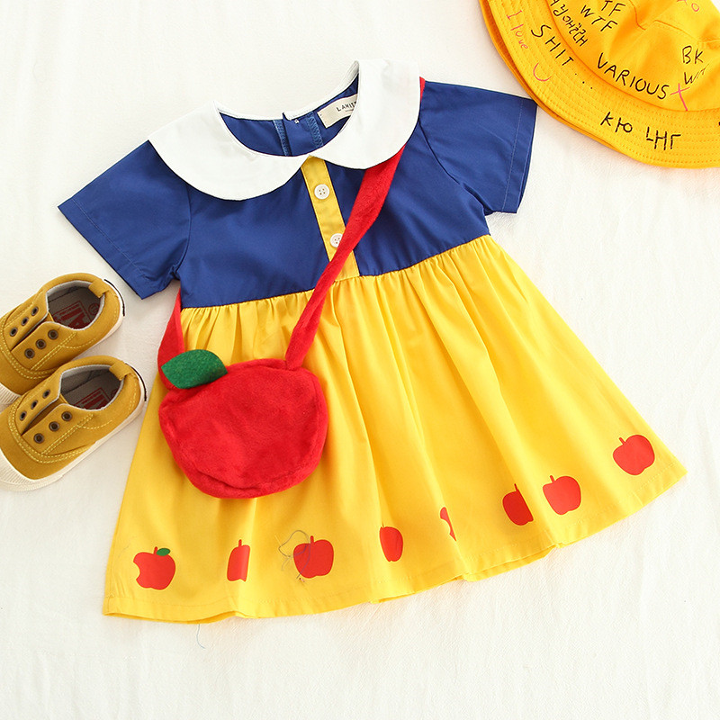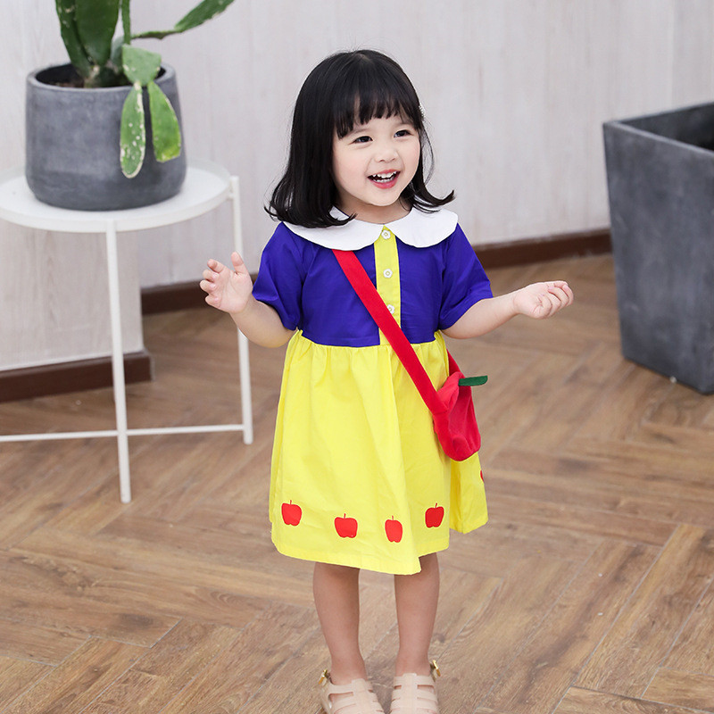 Платье Белоснежки для маленьких девочек; Платье для костюмированной вечеринки в стиле пэчворк с короткими рукавами и вырезом лодочкой; Короткая юбка с принтом яблока