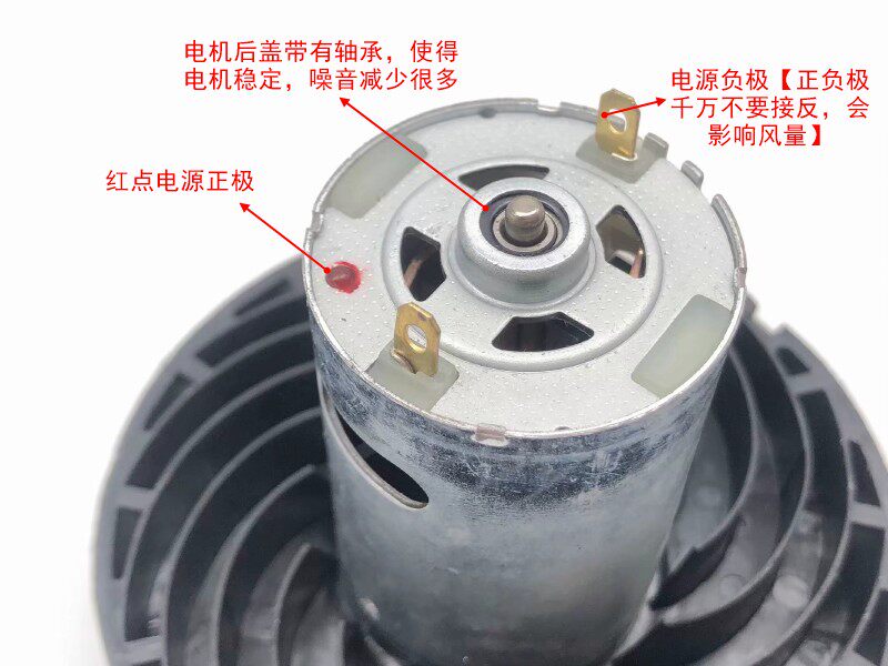 Обратите внимание: проводка двигателя должна быть положительной и отрицательной. Красная точка на задней крышке двигателя положительная, а другая ножка двигателя Отрицательная. Если положительные и отрицательные соединения будут изменены, сила всасывания значительно снизится.