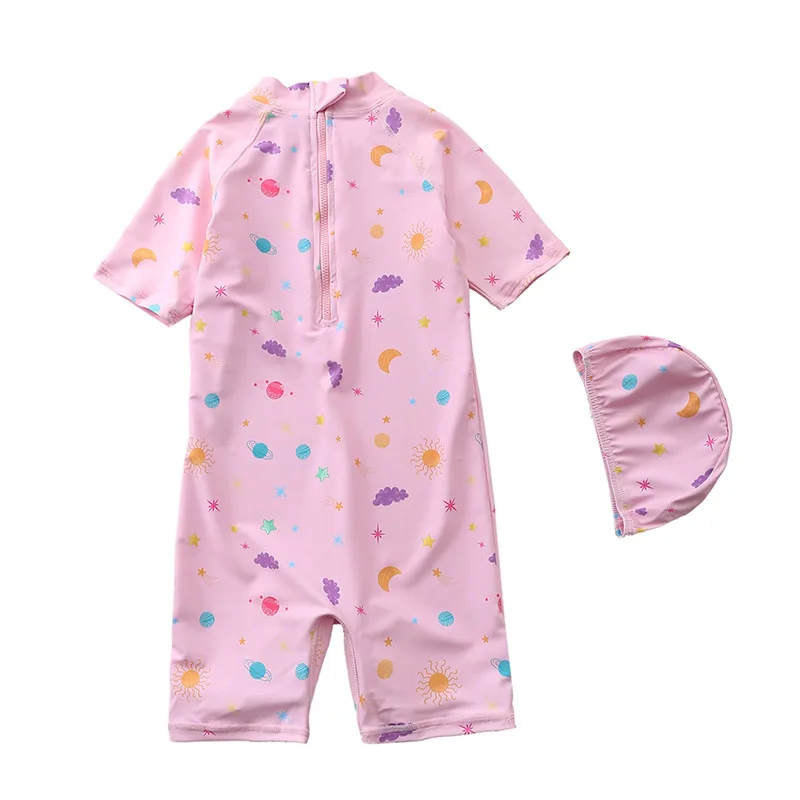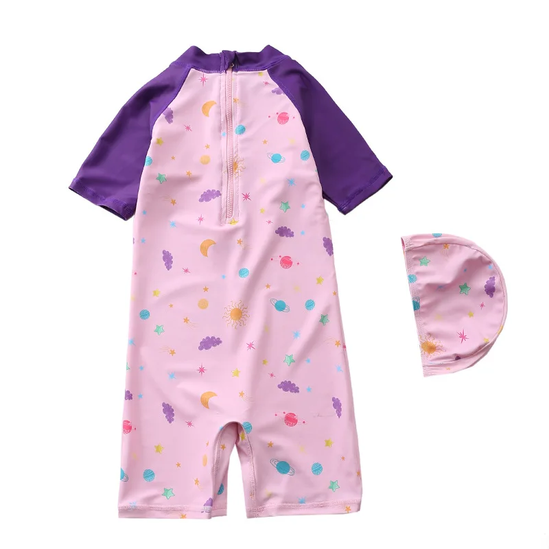 Купальный костюм для маленьких девочек с единорогом и русалочкой; Цельный купальник для девочек с коротким рукавом; Солнцезащитный детский купальный костюм; Купальные костюмы