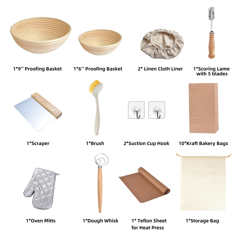 6.ВНабор корзин для броженияПредназначен для ферментации теста, широко подходит для приготовления хлеба, кухни, хлебопекарни, пекарни, приготовления пищи, семьи и так далее, что является прекрасным помощником на вашей кухне.