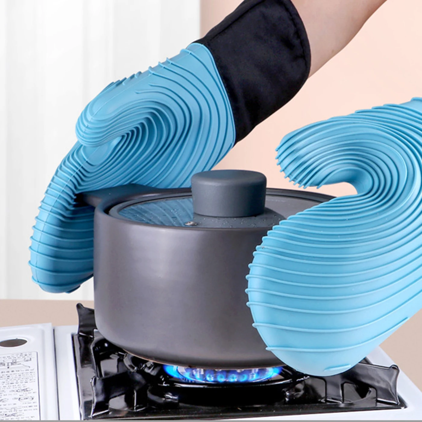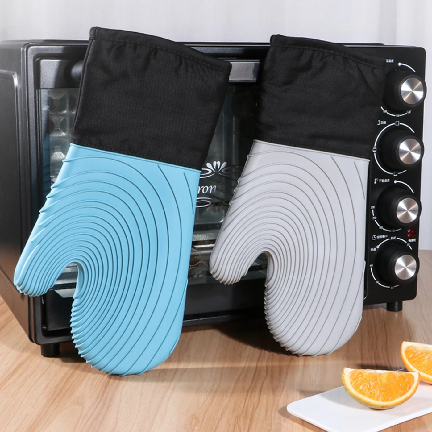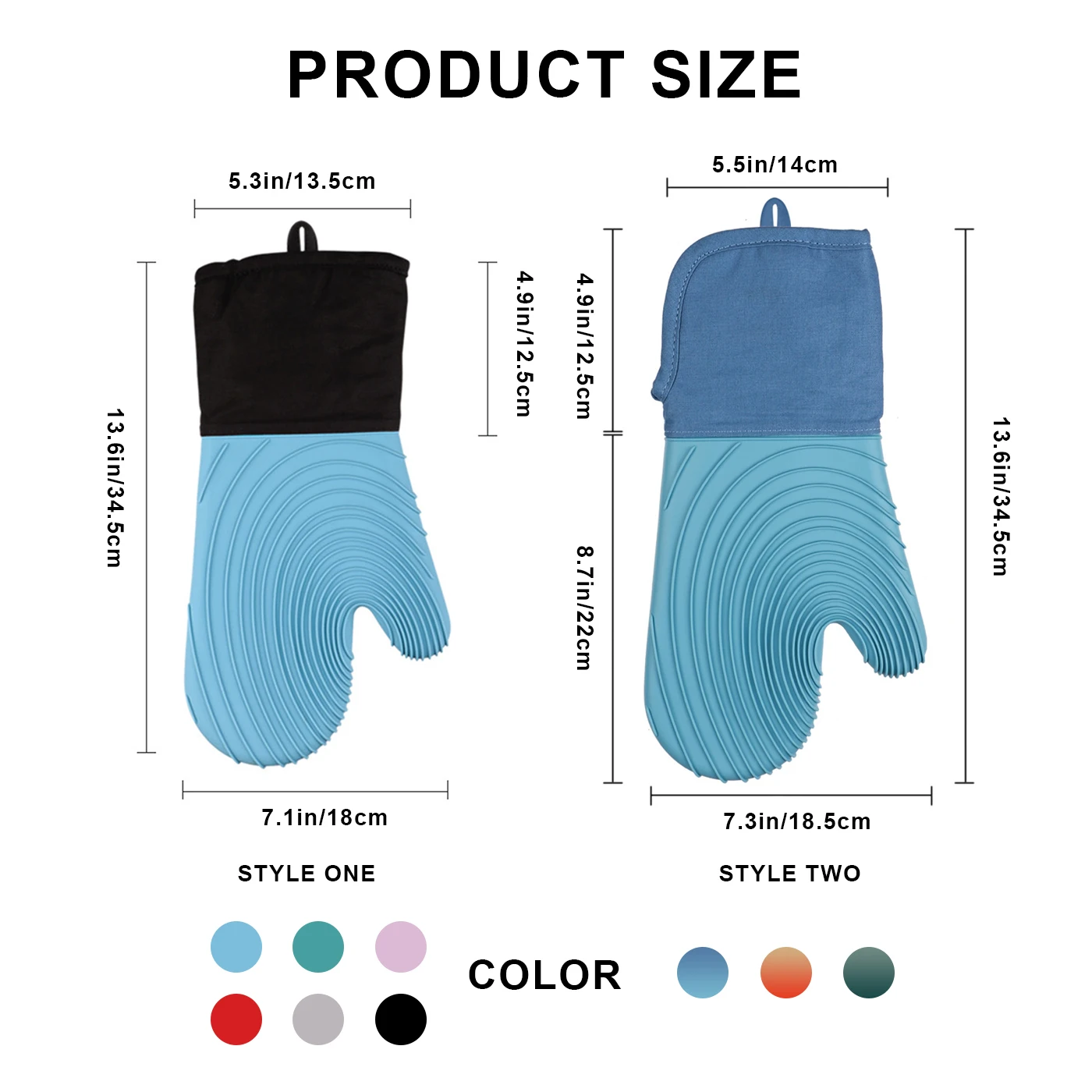 Нескользящая рукоятка с резиновой подошвой: волнистая текстура силиконовых перчаток для духовки улучшит трение, сопротивление скольжению и стабильность для кухонного использования. Кроме того, глубокая мягкая текстура будет соответствовать форме ваших рук, поможет вам легко держать и сжимать кастрюлю, кастрюли и листы для выпечки.