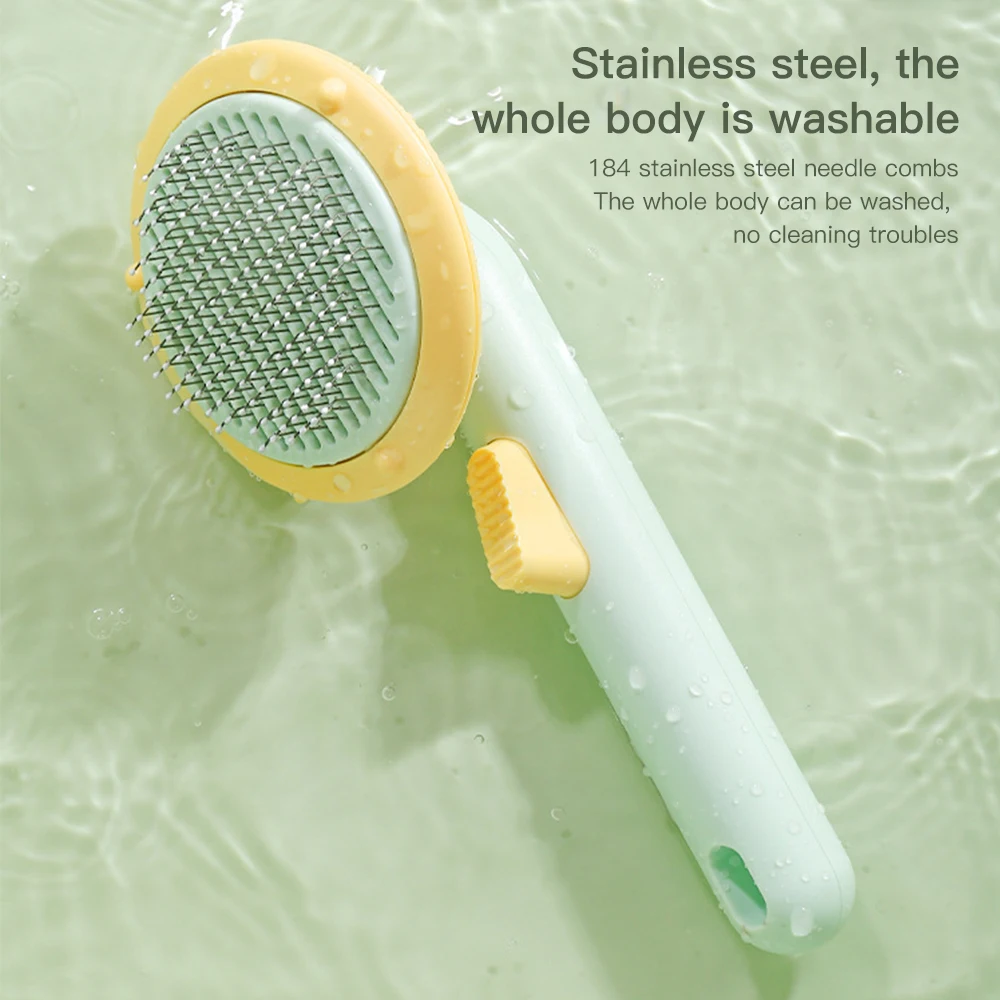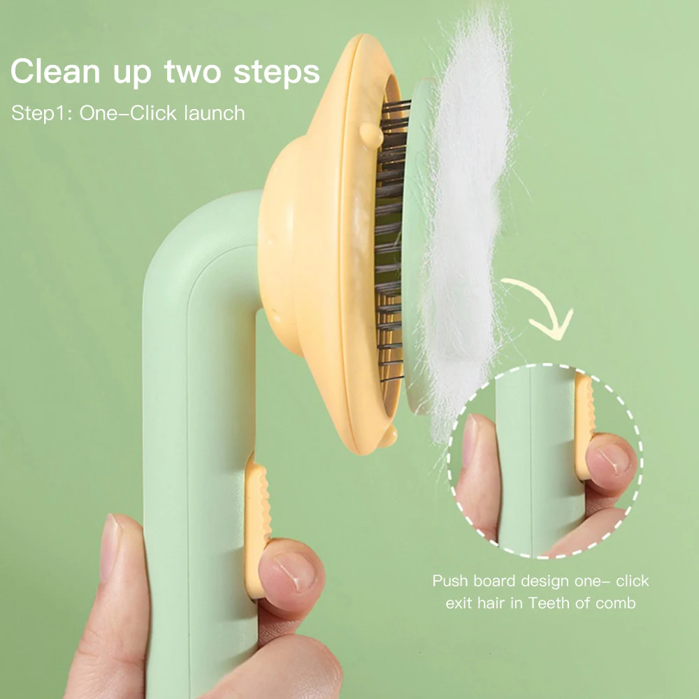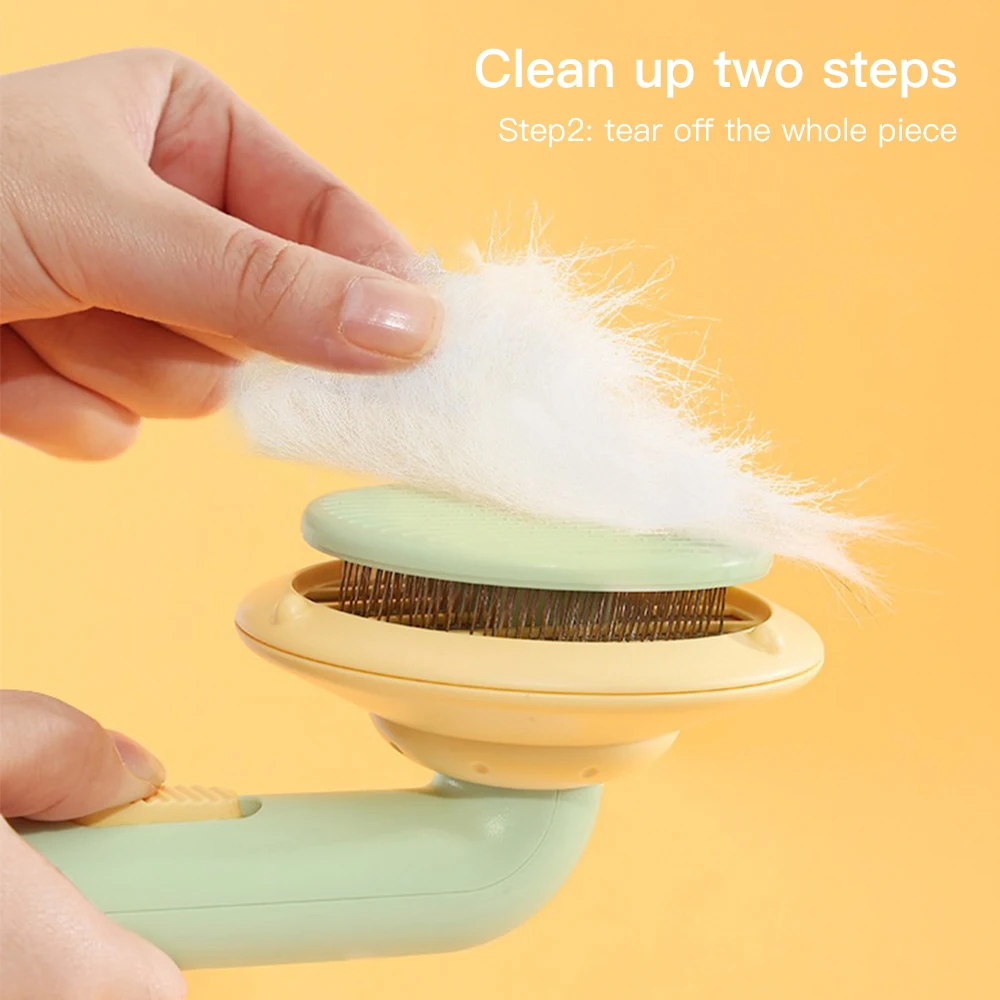 После чистки волос щеткой для домашних животных, нажмите кнопку очистки, чтобы удалить остаточные волосы на кисти. Очистка занимает всего около 5 секунд из-за умной функции самоочистки щёток. Это значительно экономит время и энергию для ухода и очистки.
