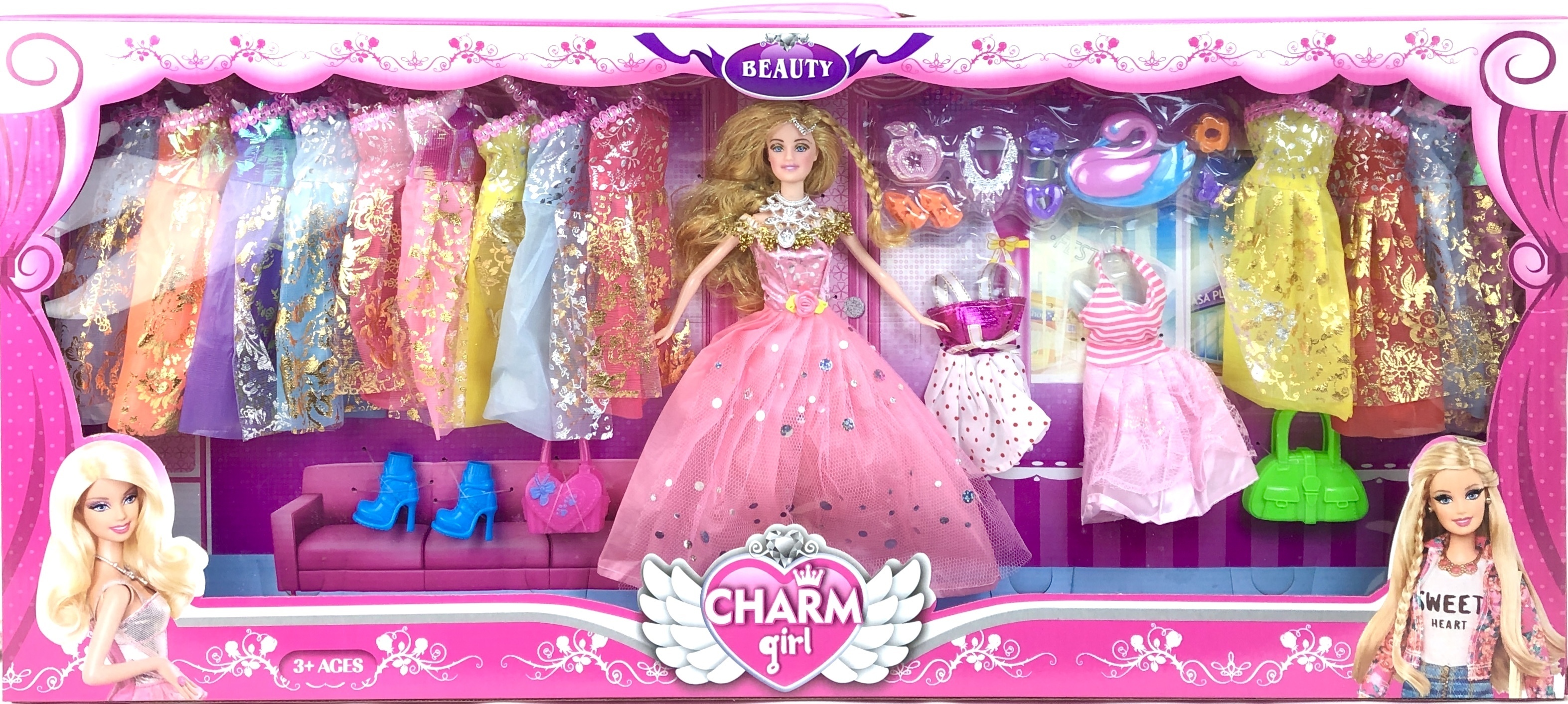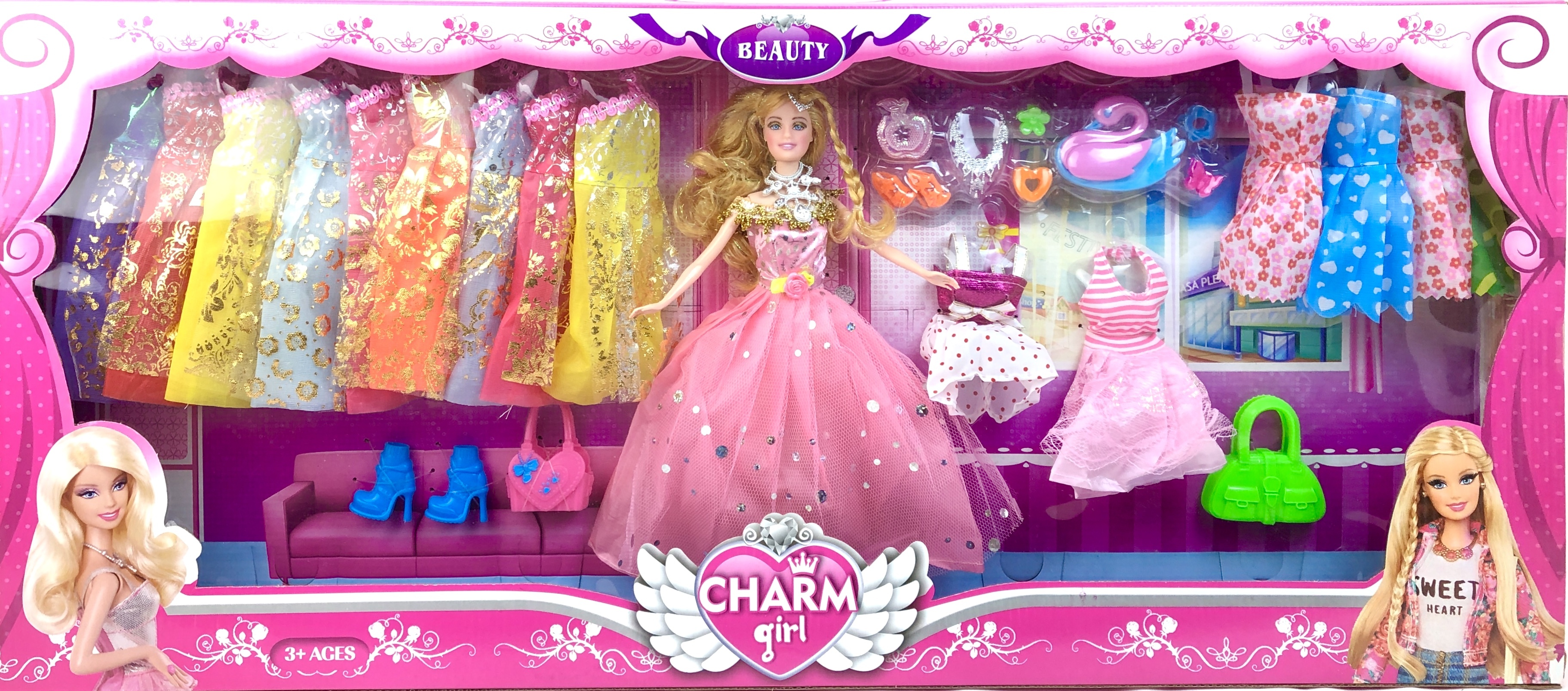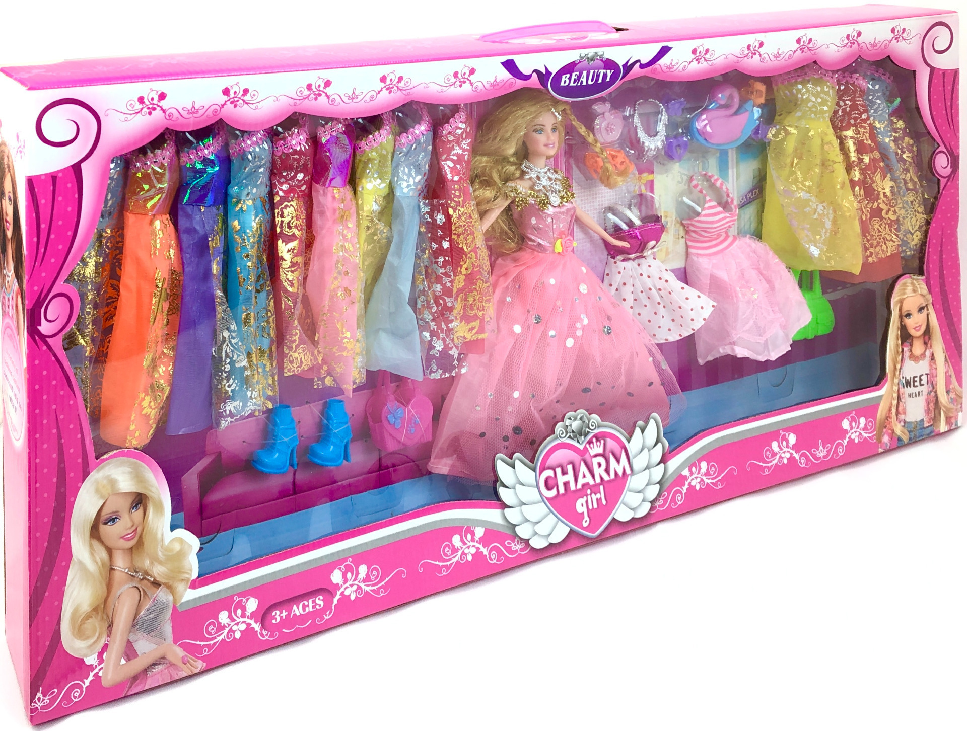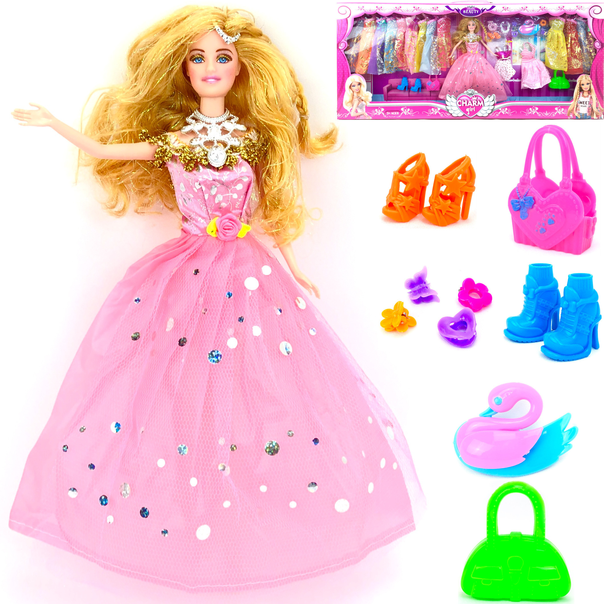 Кукла с аксессуарами: 3 пары обуви, заколки, 2 сумочки, ожерелье.