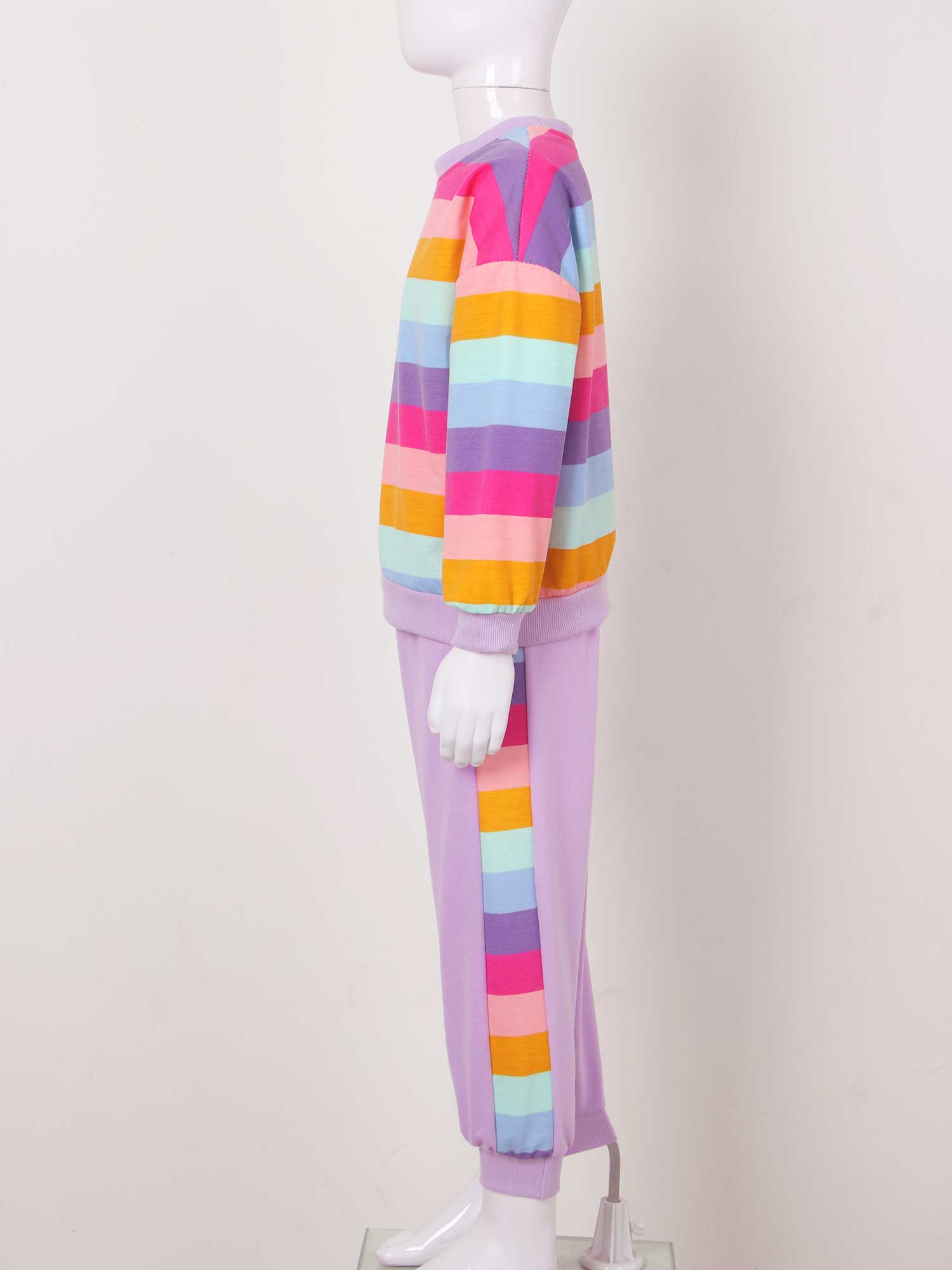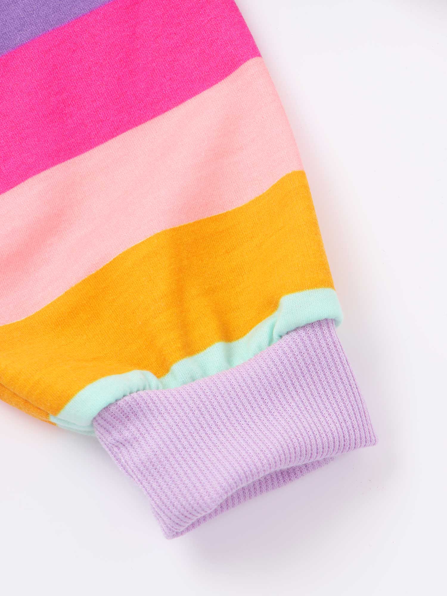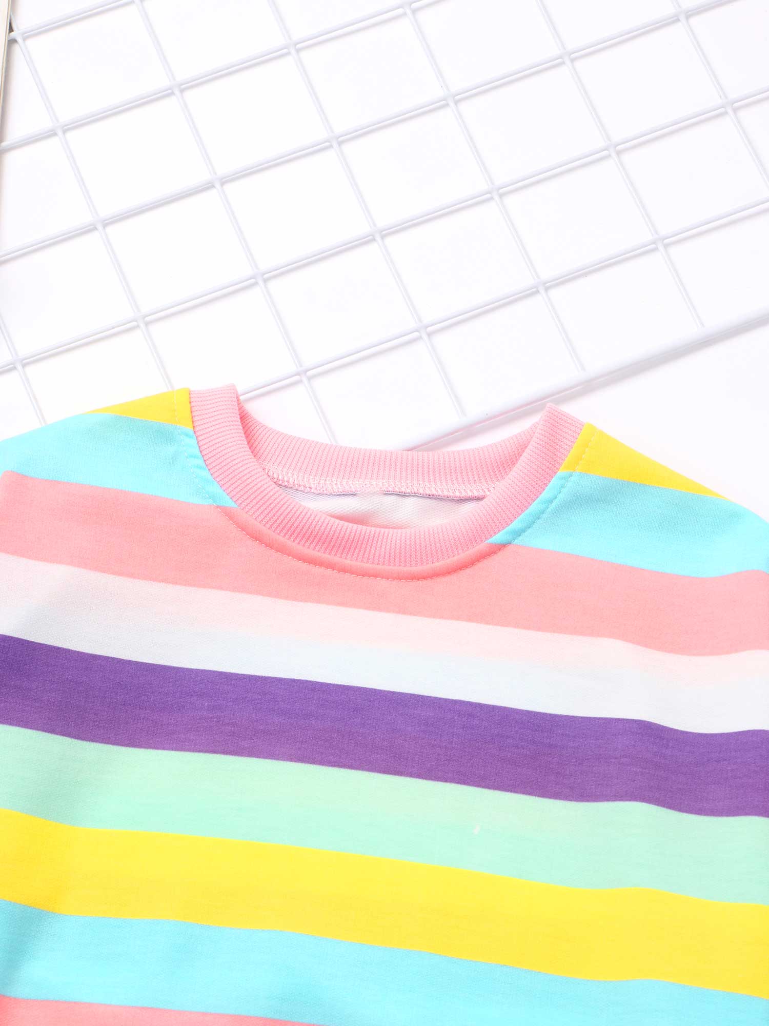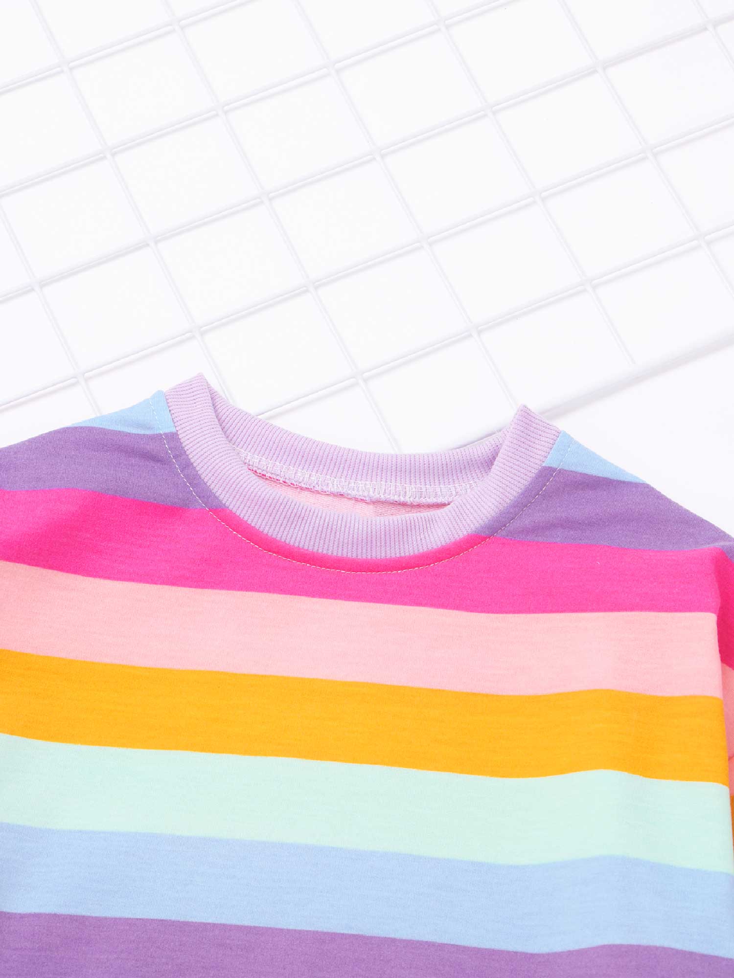 Топ с длинными рукавами, круглым вырезом и принтом в радужную полоску.
