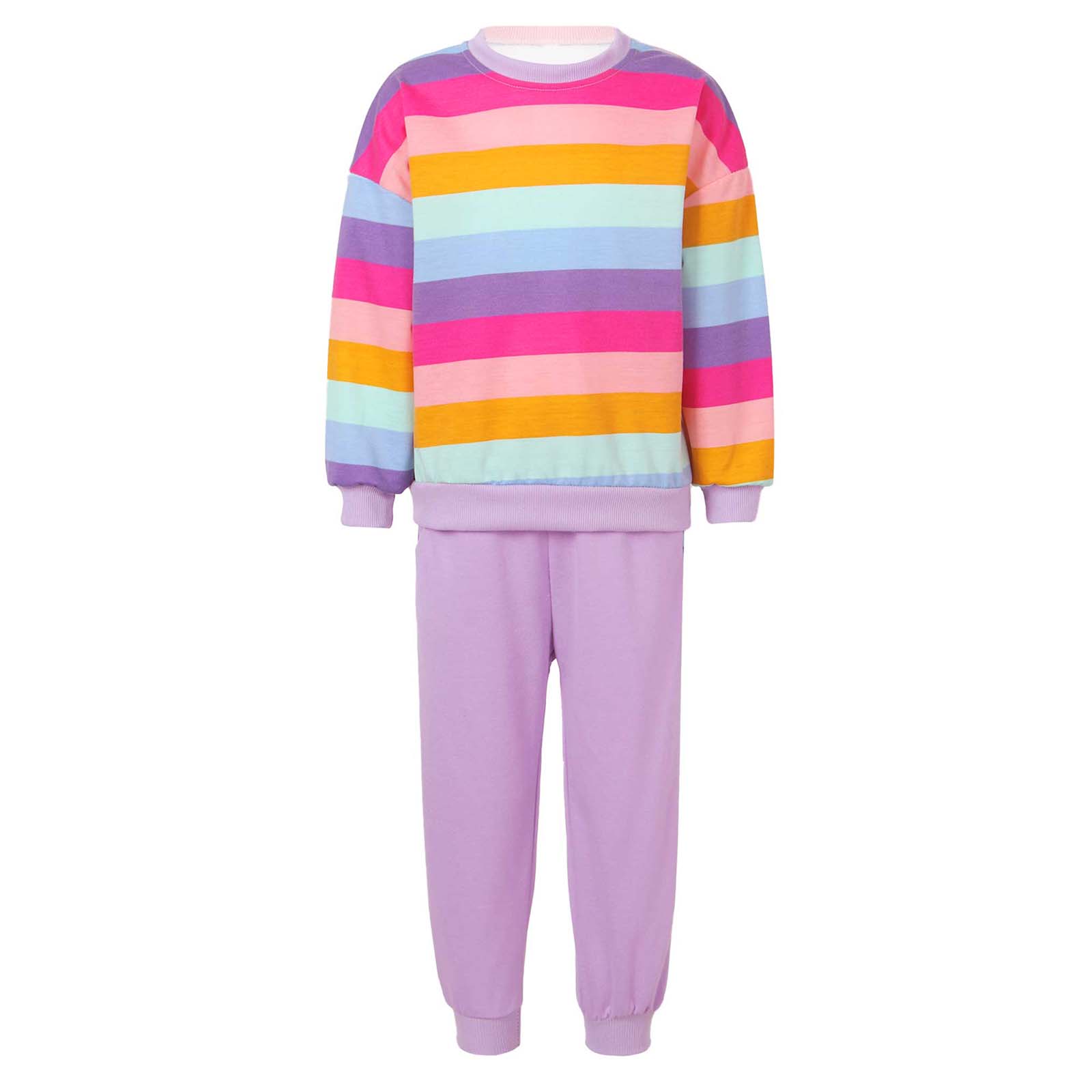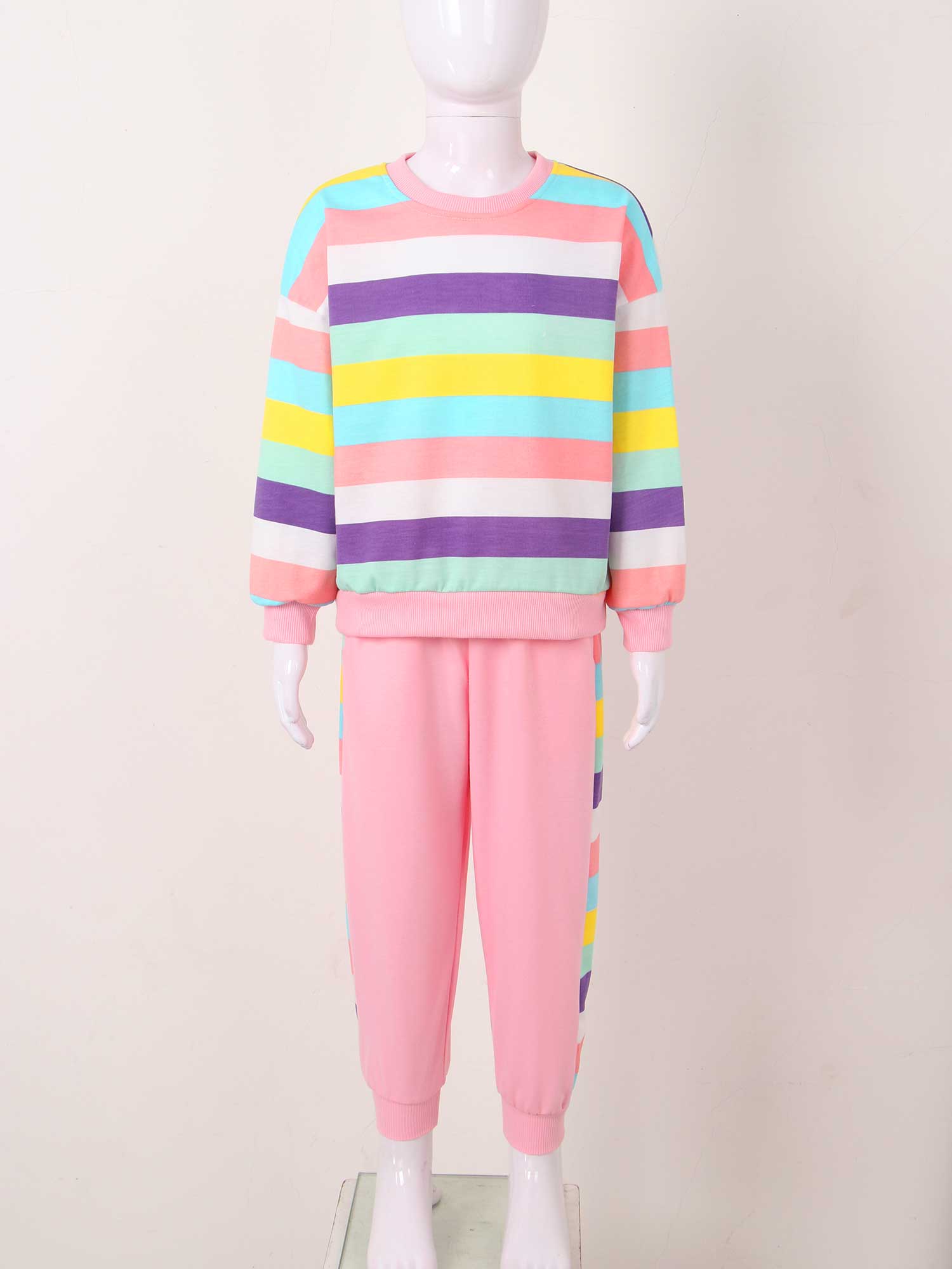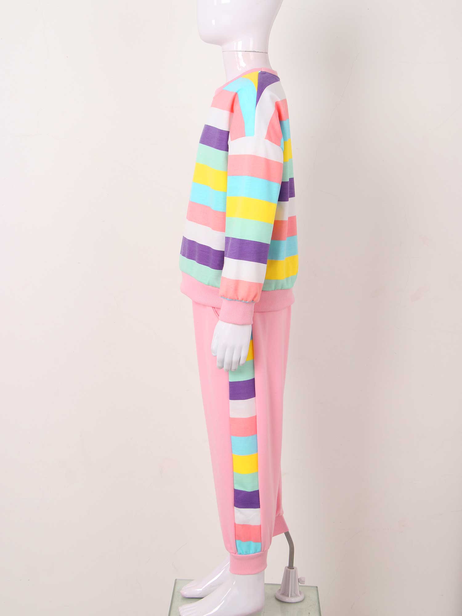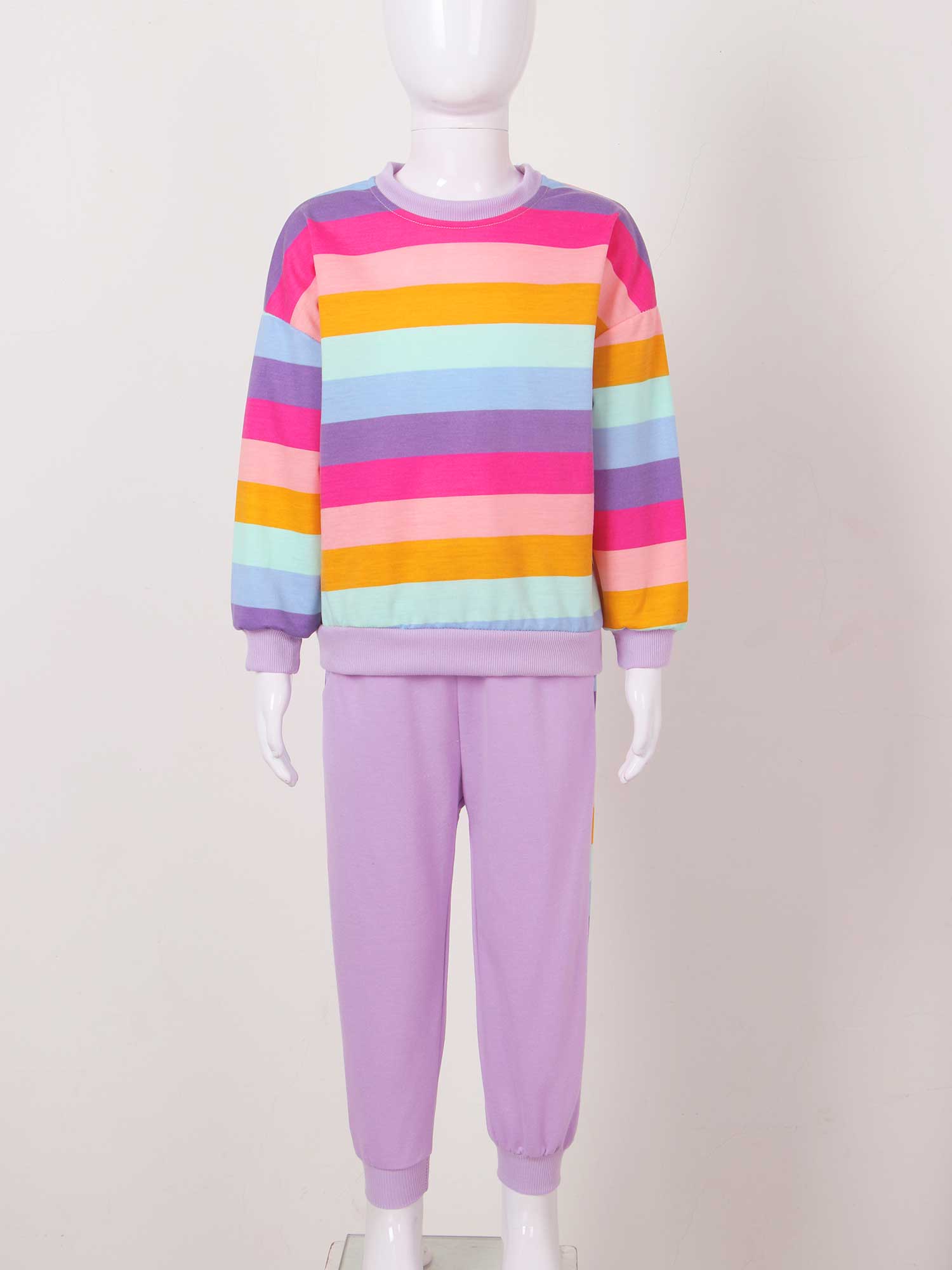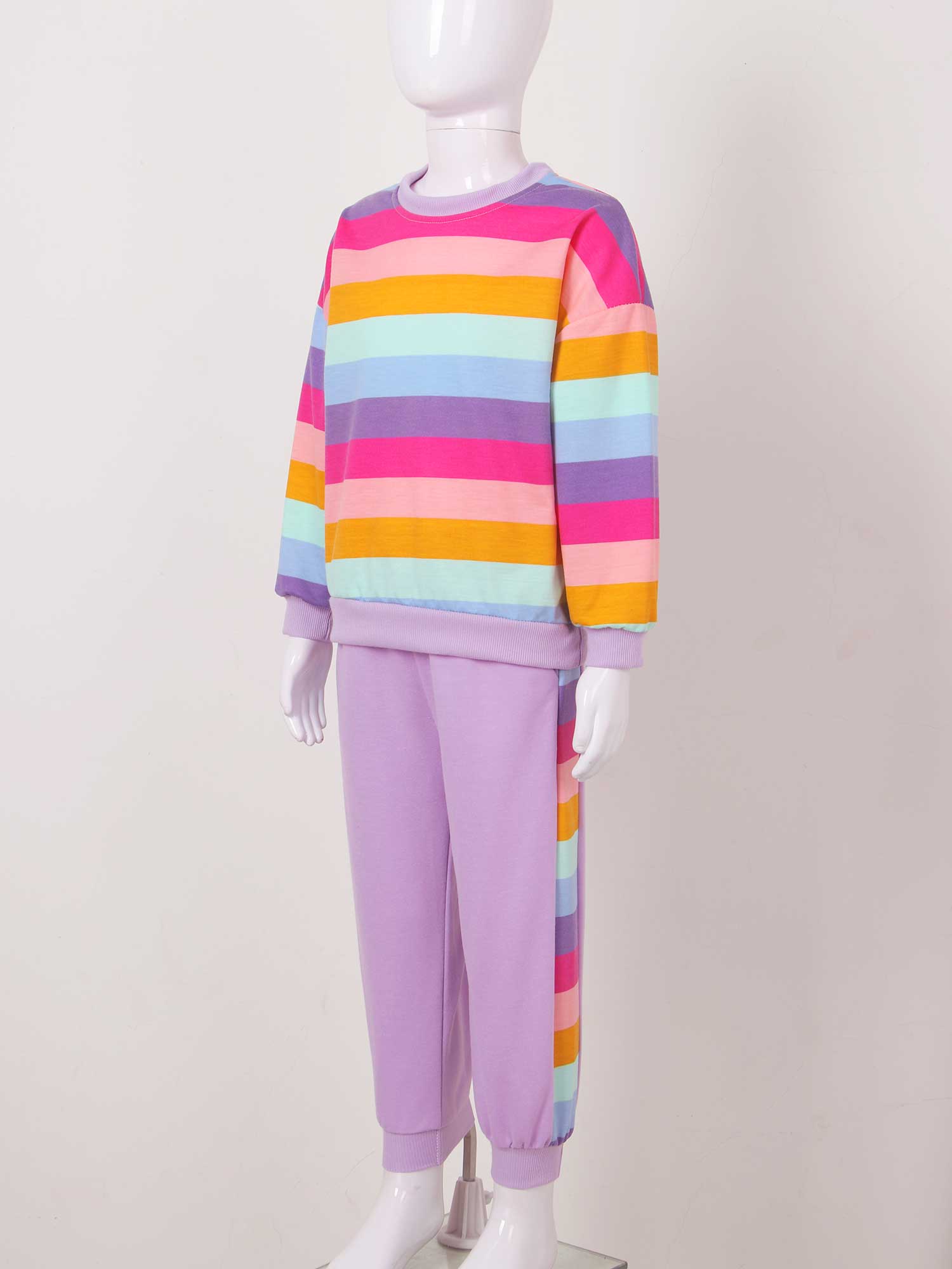 Топ с длинными рукавами, круглым вырезом и принтом в радужную полоску.