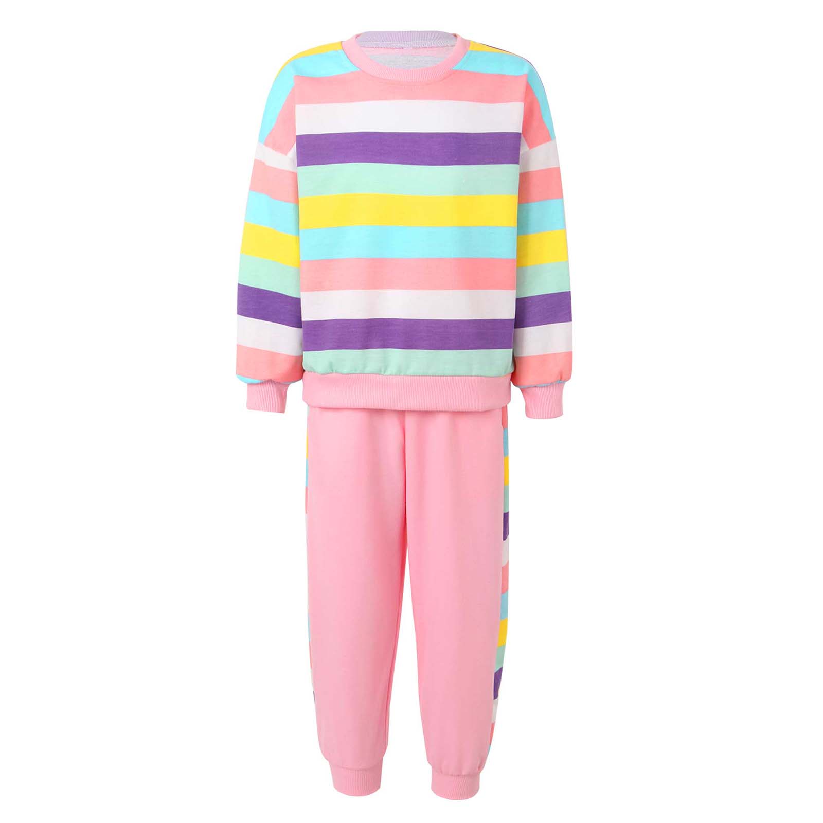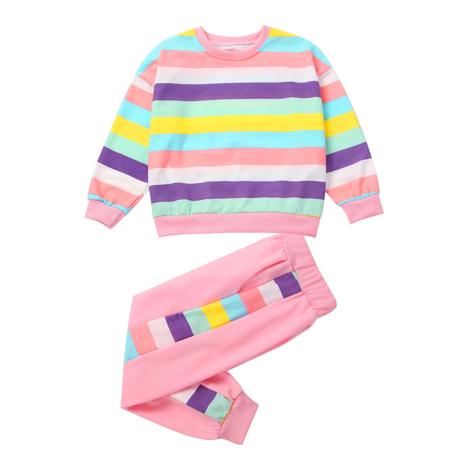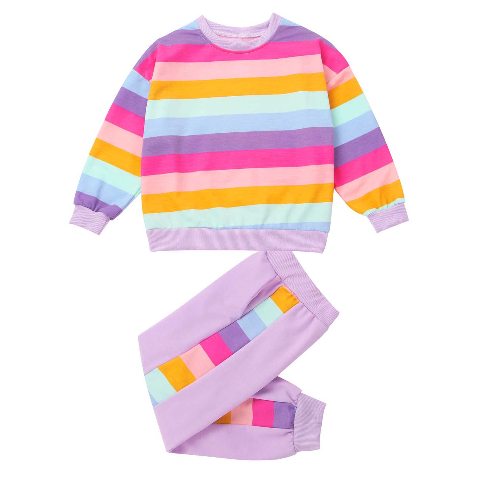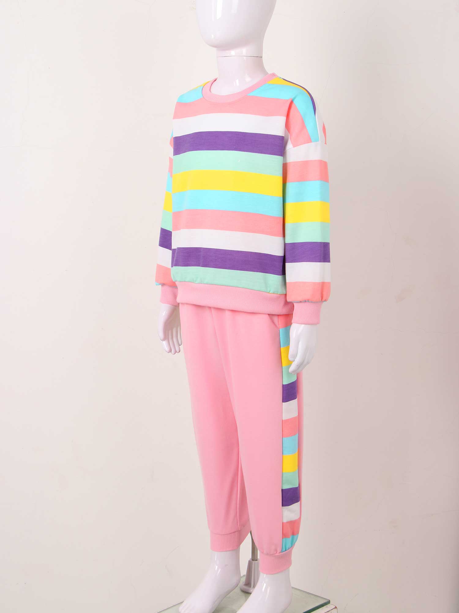 Топ с длинными рукавами, круглым вырезом и принтом в радужную полоску.