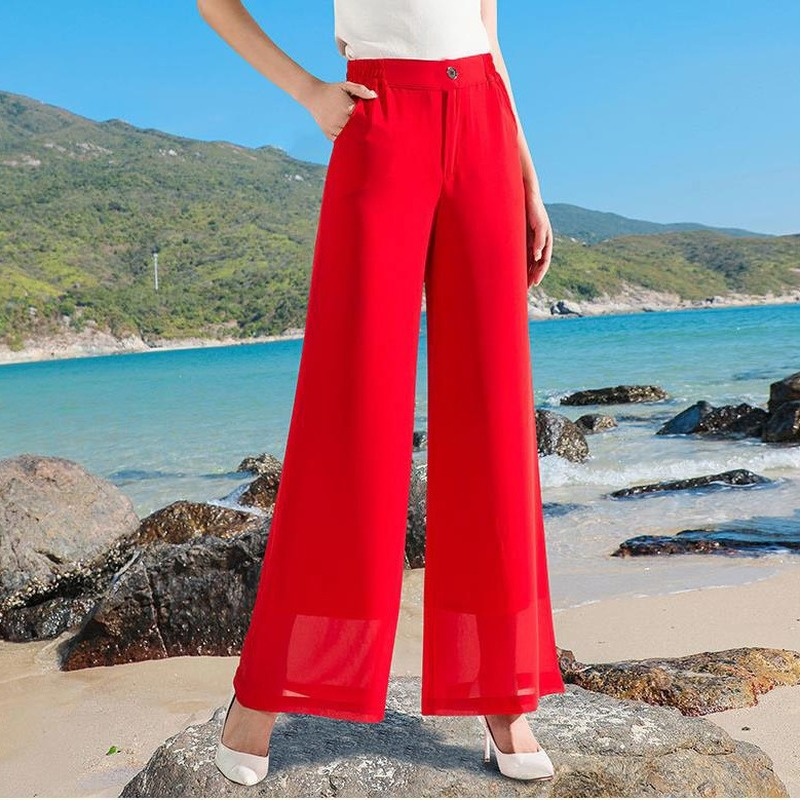 Новые модные женские широкие шифоновые брюки с высокой талией, Длинные свободные брюки размера плюс, однотонные широкие брюки для лета X99