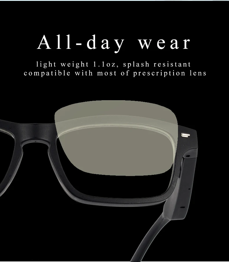 1. Bluetooth очки динамик: Динамический драйвер, уникальный звук полости дизайн Избегайте слуховых препятствий. Дизайн с открытыми ушами поможет вам всегда обратить внимание на ваше окружение, избежать опасности и наслаждаться музыкой.