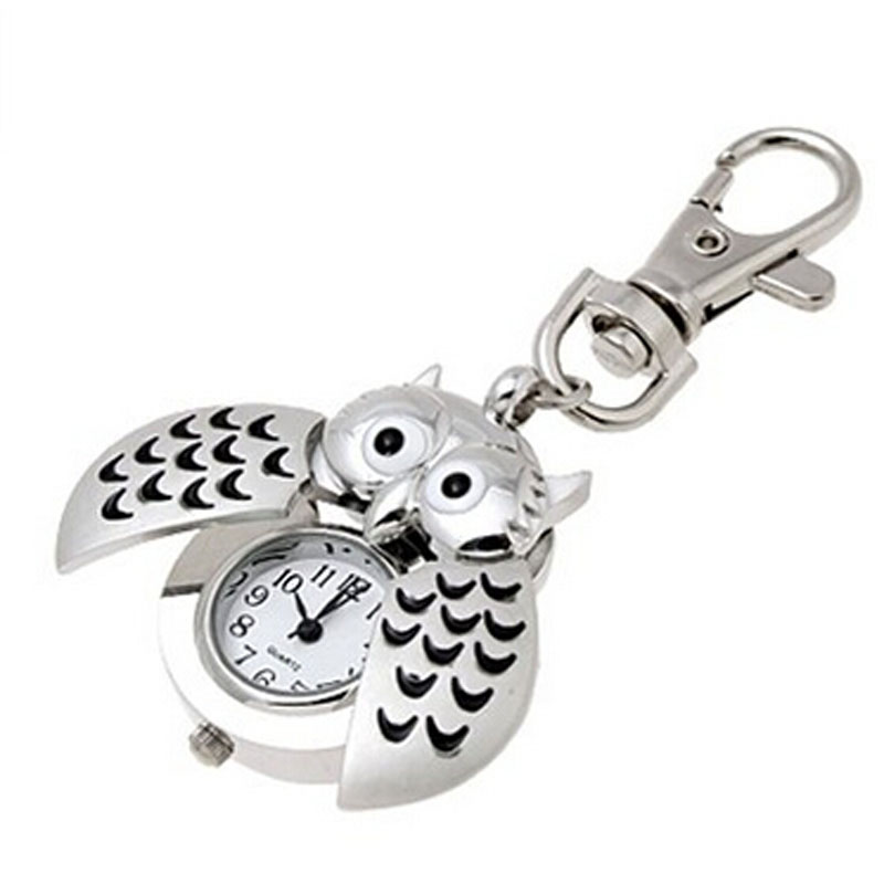 Мини металлическое кольцо для ключей Сова с двойным открытием Кварцевые часы-серебро