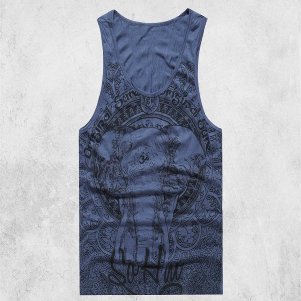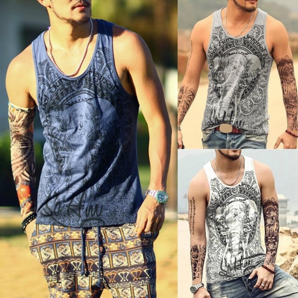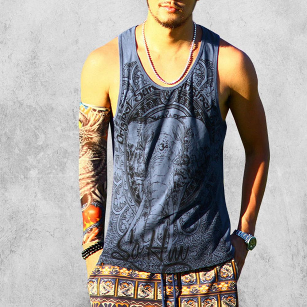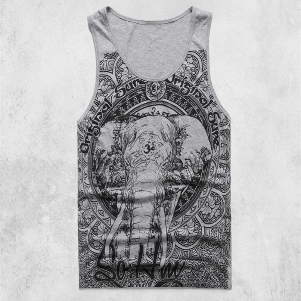 Винтажный Мужской летний жилет без рукавов с принтом слона для бодибилдинга