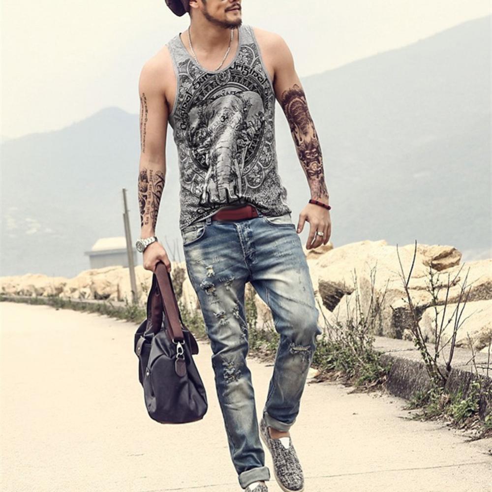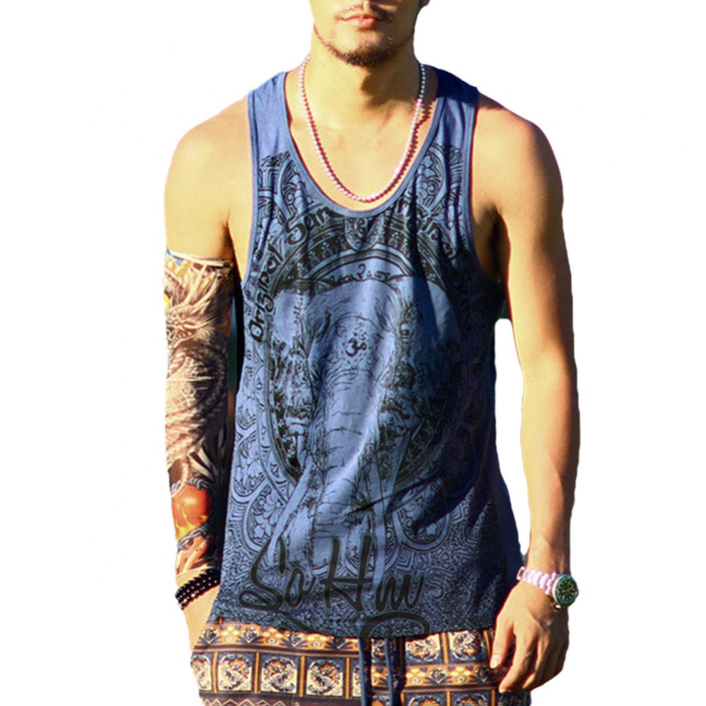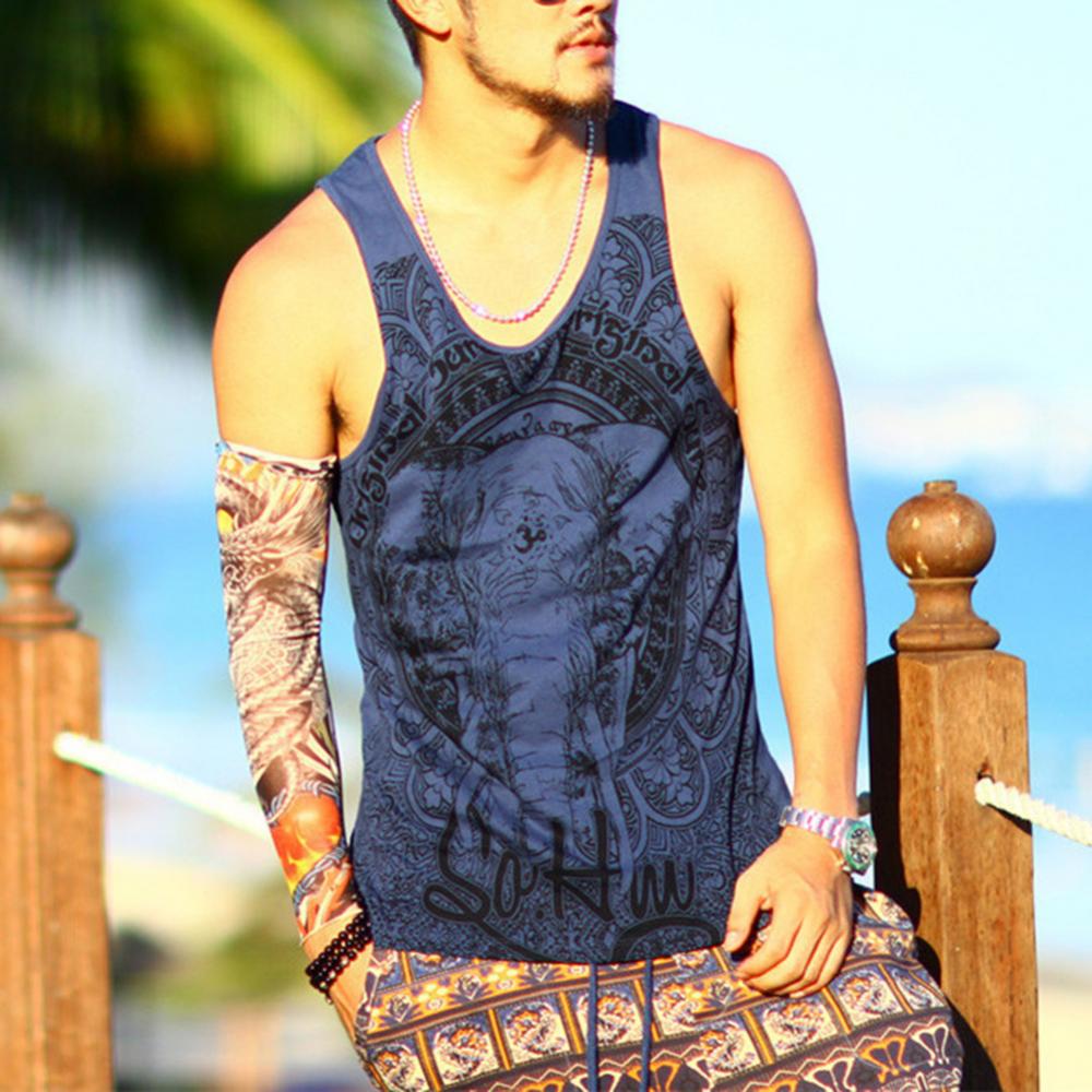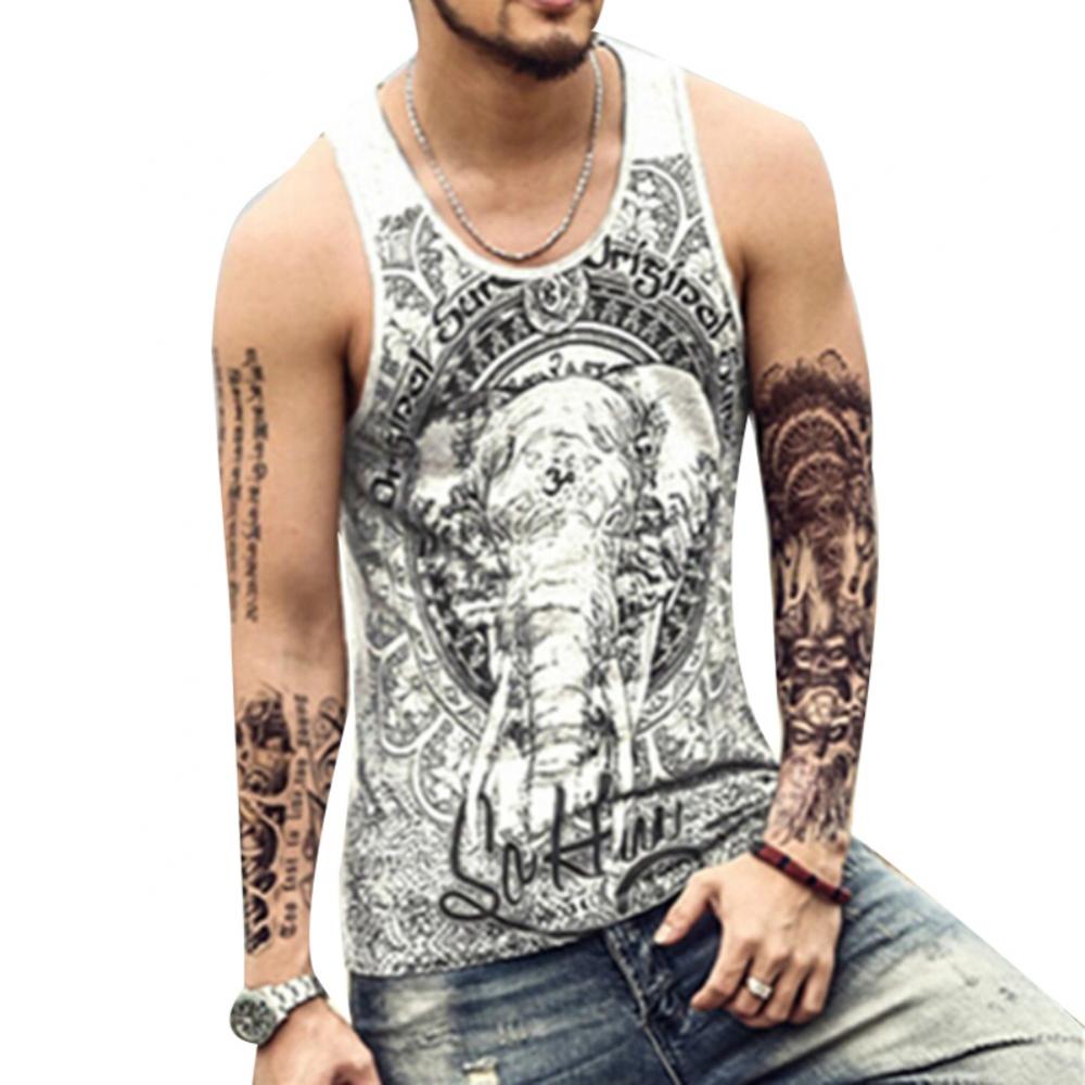 Винтажный Мужской летний жилет без рукавов с принтом слона для бодибилдинга