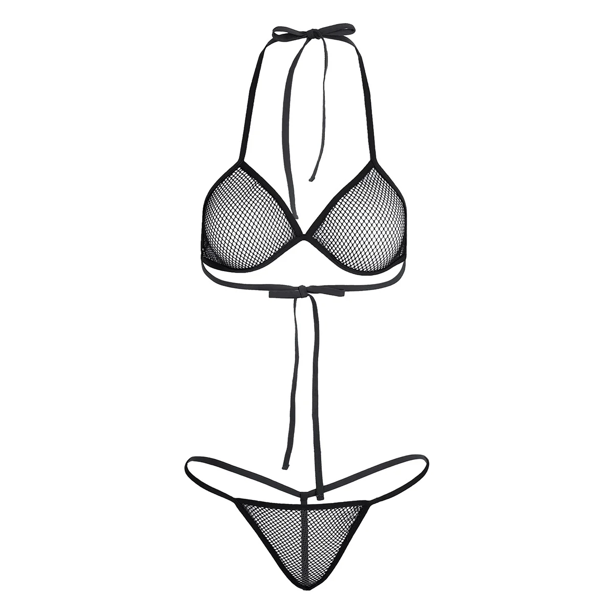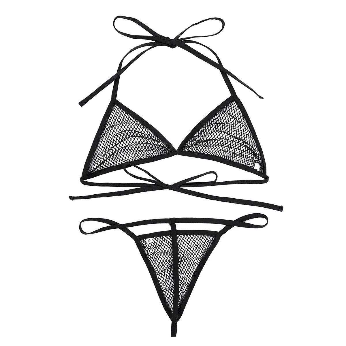 Верх треугольного бикини имеет длинные лямки на шее и задние лямки для регулировки размера.
