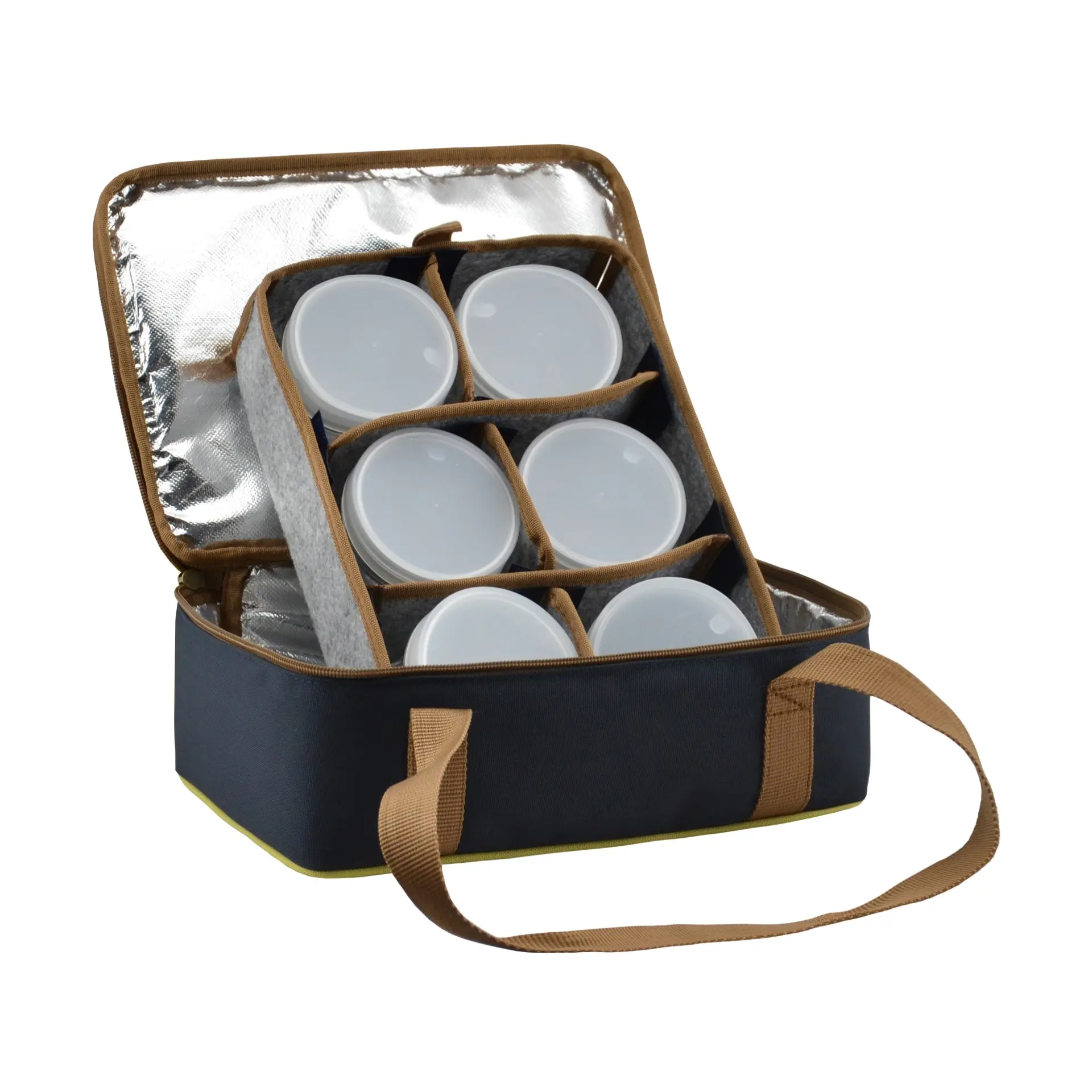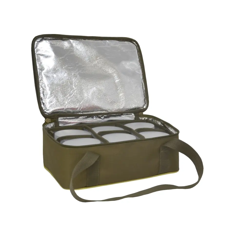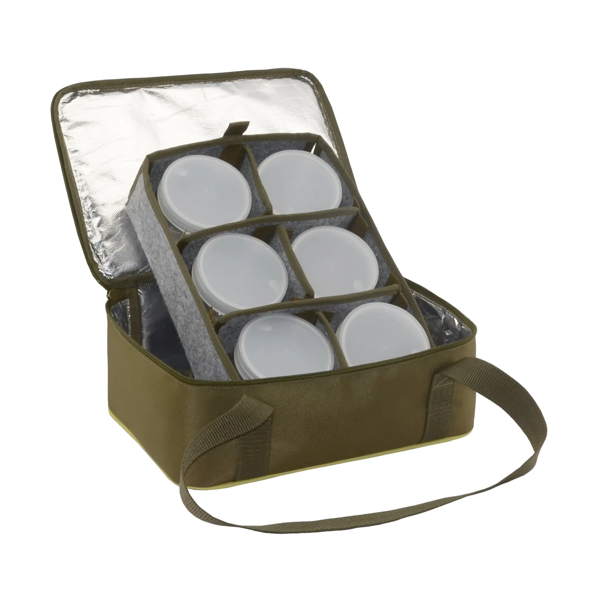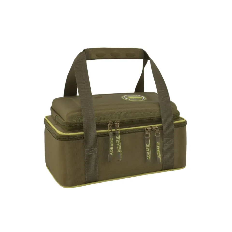 Термо-сумка Aquatic С-42 с банками для хранения дипов и насадок. Термо-сумка полностью выполнена из высококачественного износостойкого нейлона и имеет прорезиненное дно, благодаря чему практически не промокает и легко отмывается от загрязнений. Для максимально длительного хранения ваших дипов и насадок весь внутренний объем термо-сумки покрыт технологичным термоизоляционным материалом. Термо-сумка укомплектована 6-ю банками диаметром 89 мм и высотой 80 мм, размещенными в специальном съемном отделении с мягкими перегородками на липучках, которые позволяют подгонять размеры ячеек для банок другого объема. Верхняя крышка на молнии имеет вместительный формованный карман, в котором можно хранить рыболовную коробку, или другие полезные аксессуары. Для удобства транспортировки термо-сумка имеет две ручки из прочной стропы с мягкой накладкой на липучке.