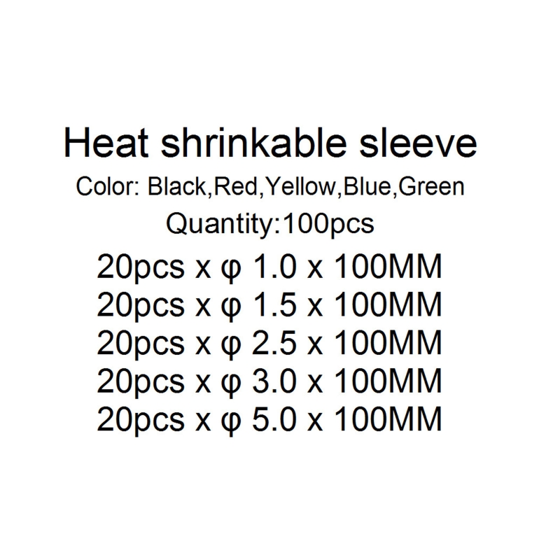 Оснащен 100 термоусадочными трубами, 5 цветов (желтый, синий, черный, зеленый, красный), 5 спецификаций для удовлетворения ваших различных потребностей.