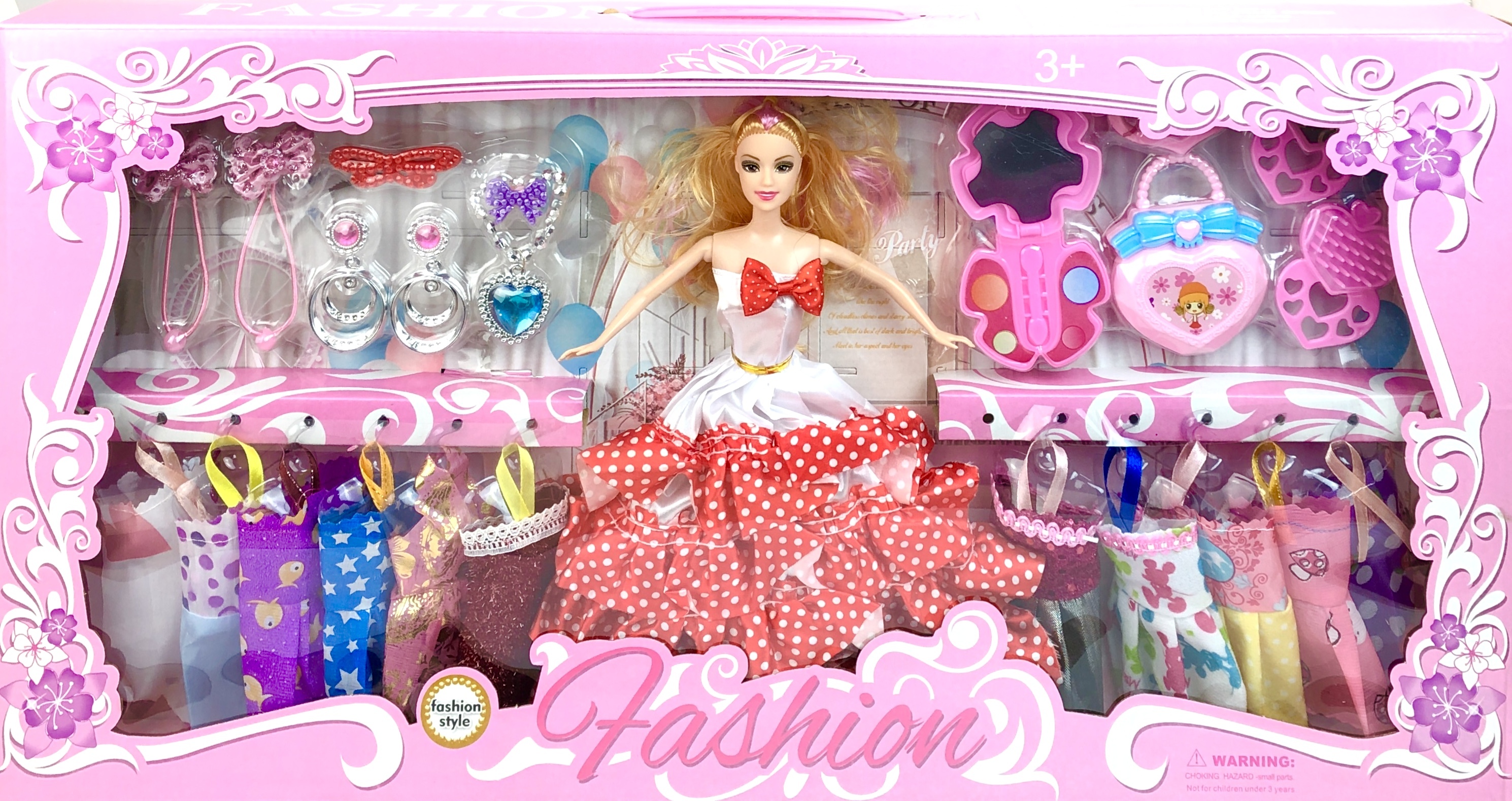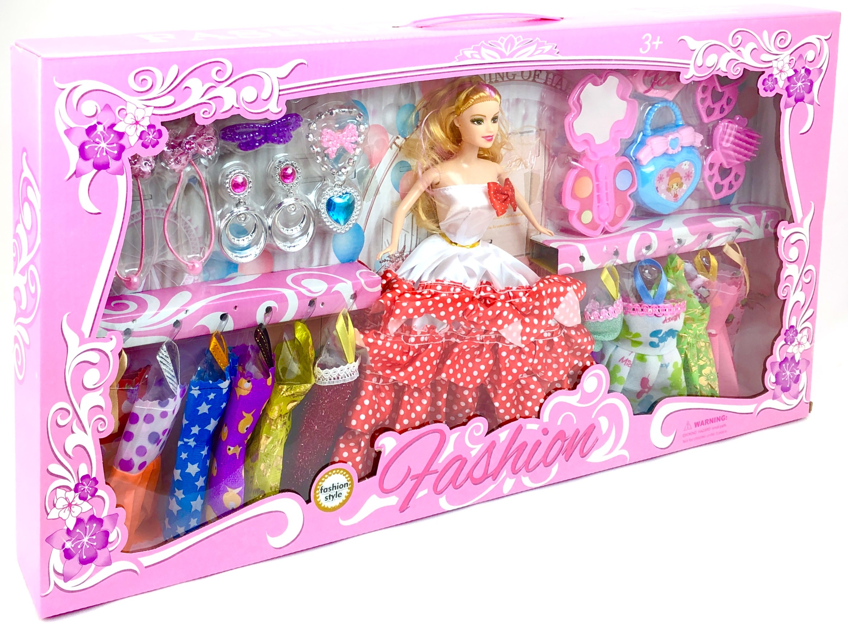 Кукла с аксессуарами: сумочка, расческа, резинки, заколки, зеркальце, ожерелье.