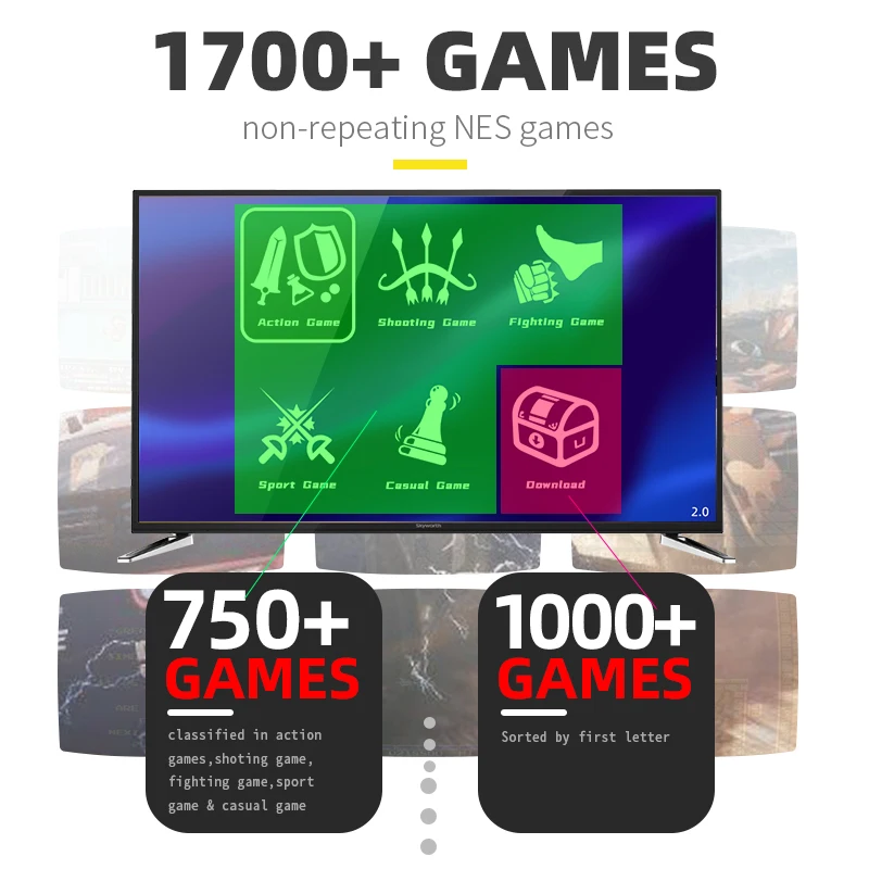 Мы добавили более 800 игр NES. Если вам не нравятся наши встроенные игры NES, вы можете скачать свои любимые игры NES самостоятельно! Самое главное, мы приносим больше преимуществ российским друзьям. Мы добавили вам еще одну tf-карту и добавили для вас более 500 русских игр!